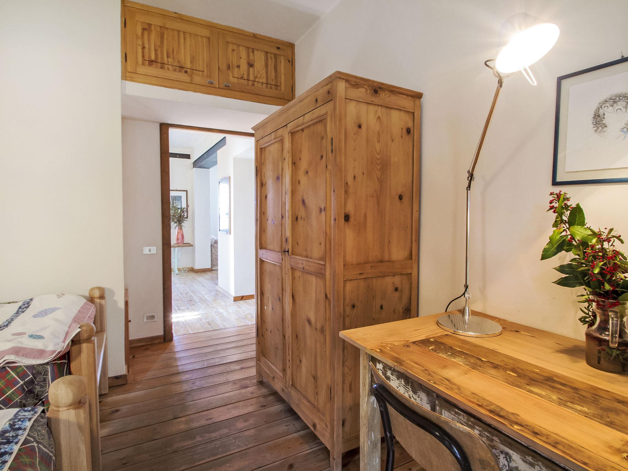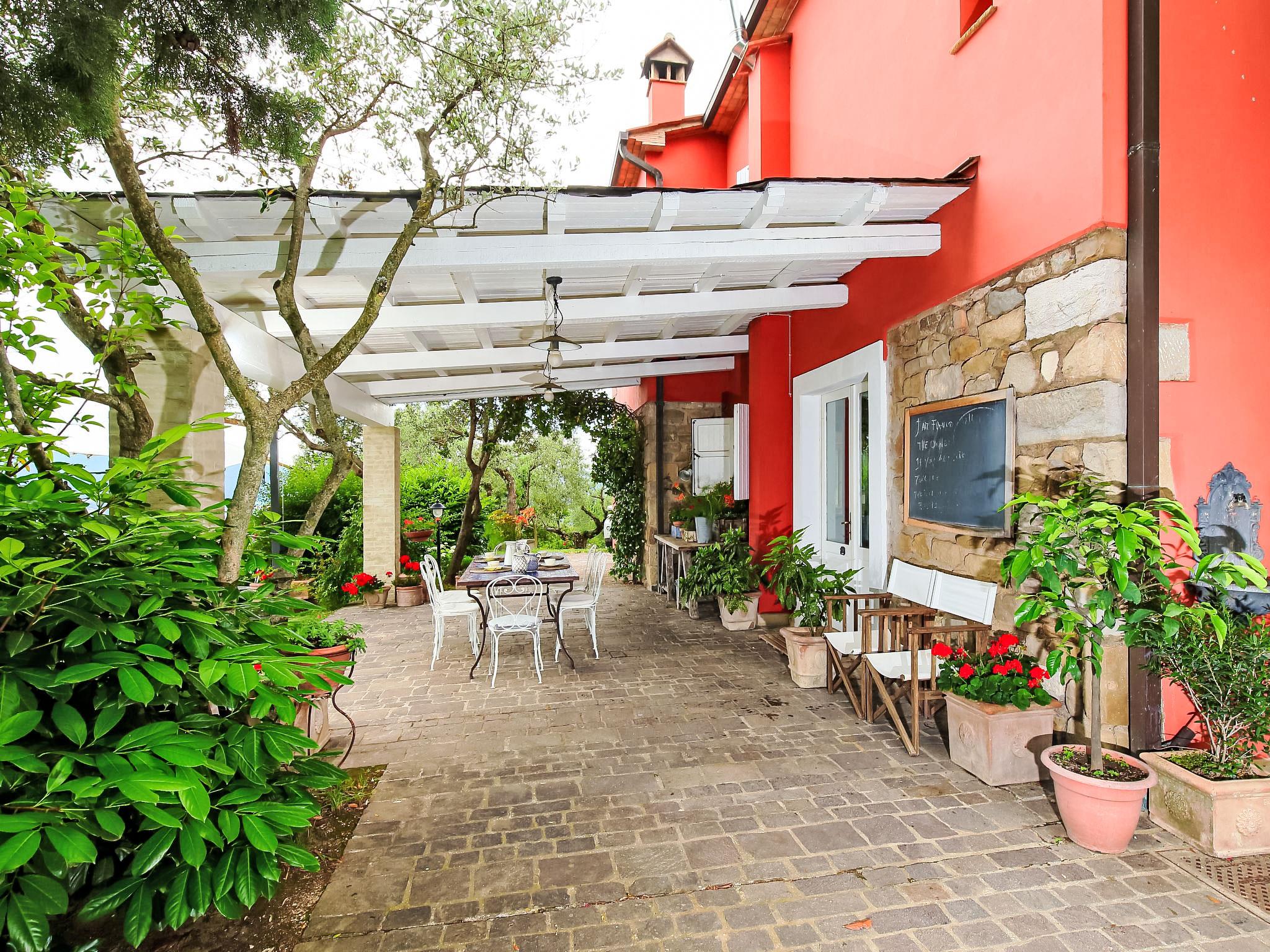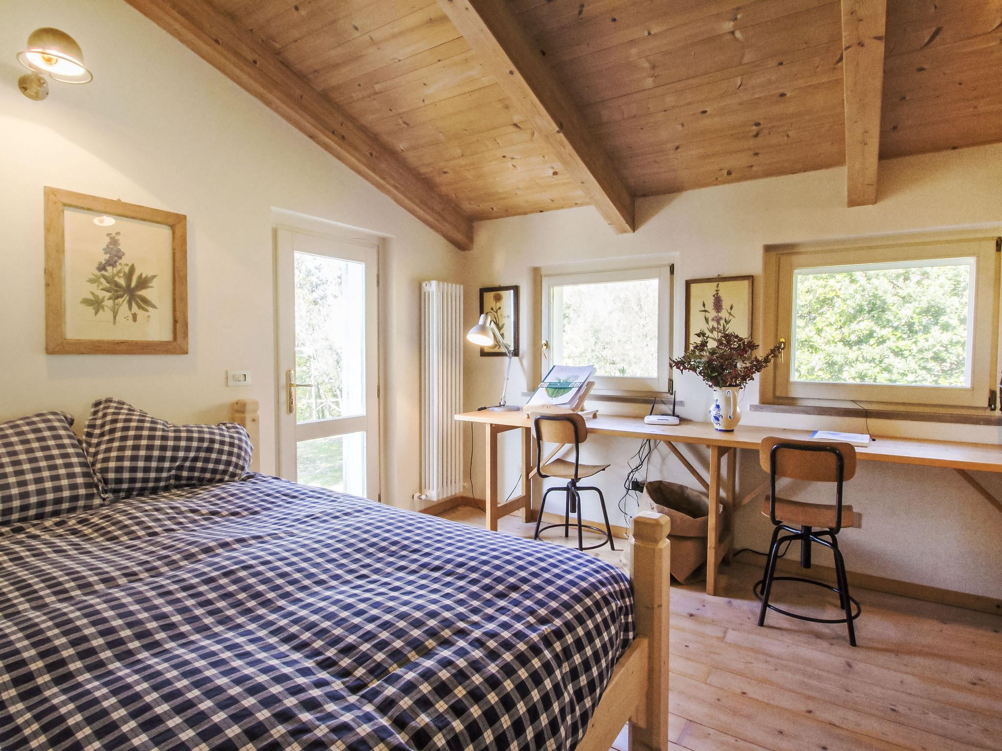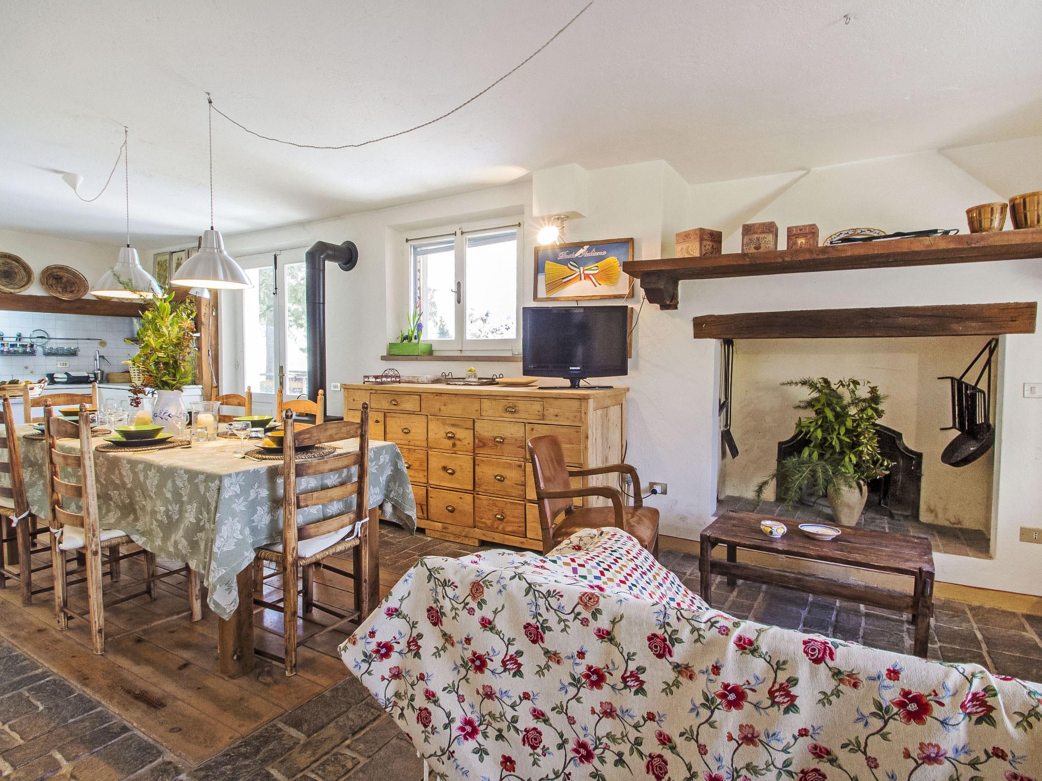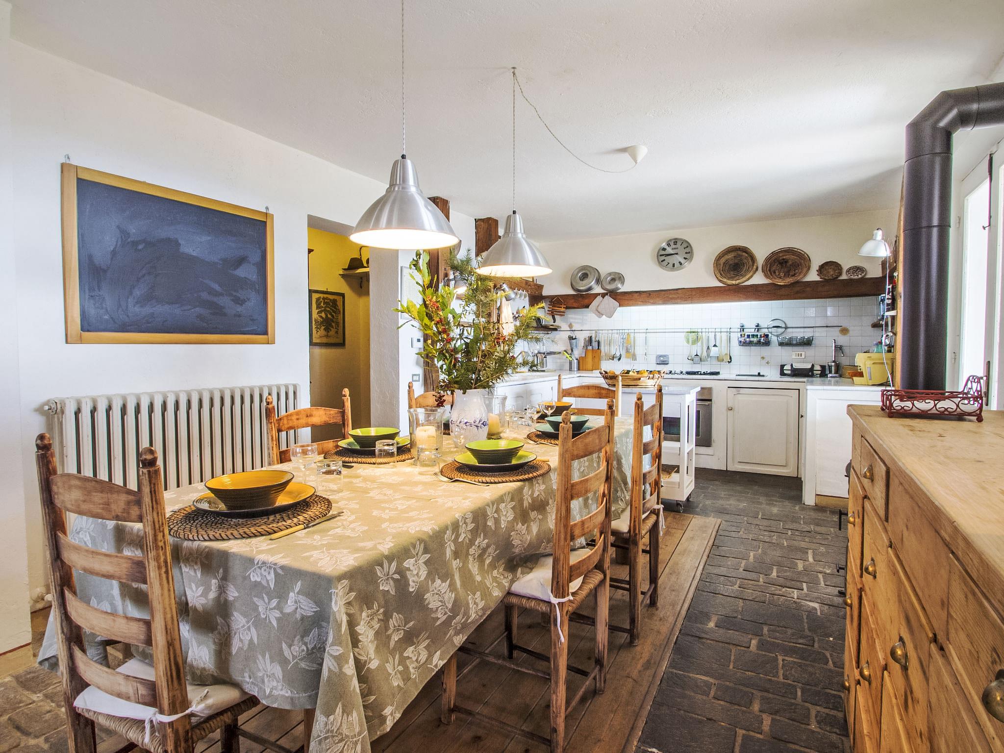 " Paradiso", 7-room villa 300 m2 on 2 levels, on the ground floor. Very beautiful and tasteful furnishings: entrance hall with tiled stove. Exit to the garden. Large living/dining room with open-hearth fireplace, TV, flat screen and heating stove. Exit to the garden. Living/sleeping room with 1 x 2 bunk beds, 1 double bed, kitchen corner, bath/bidet/WC, heating stove and air conditioning. Exit to the garden. Kitchen-/living room (5 hot plates, oven, dishwasher, microwave, freezer) with open-hearth fireplace, dining table and TV (flat screen), wood-burning stove. Exit to the loggia. Shower/bidet/WC. Upper floor: large living/dining room with open-hearth fireplace, TV and flat screen. 1 double bedroom with shower/bidet/WC, TV, flat screen and air conditioning. Exit to the garden. 1 double bedroom with Dressing room. 1 room with 2 beds, TV, flat screen and air conditioning. Exit to the garden. Bath/bidet/WC, hydro massage bath. Wood heating, solar energy heating. Wooden floors, natural stone floors. Panoramic view of the valley. Facilities: washing machine, mosquito net, hair dryer. Internet (WiFi). E-charging station. 1 small pet/ dog allowed. The living room with double bed on the mezzanine, bunk beds, kitchenette and bathroom, is located in the beautiful and welcoming annex situated in the garden just a few metres from the swimming pool. In case the house is booked for six people, the annex will be excluded from the rent. Smart TV available in the main House. When there are less than the maximum number of guests staying at the property, the annex will not be available for use. IT054039C204033329
