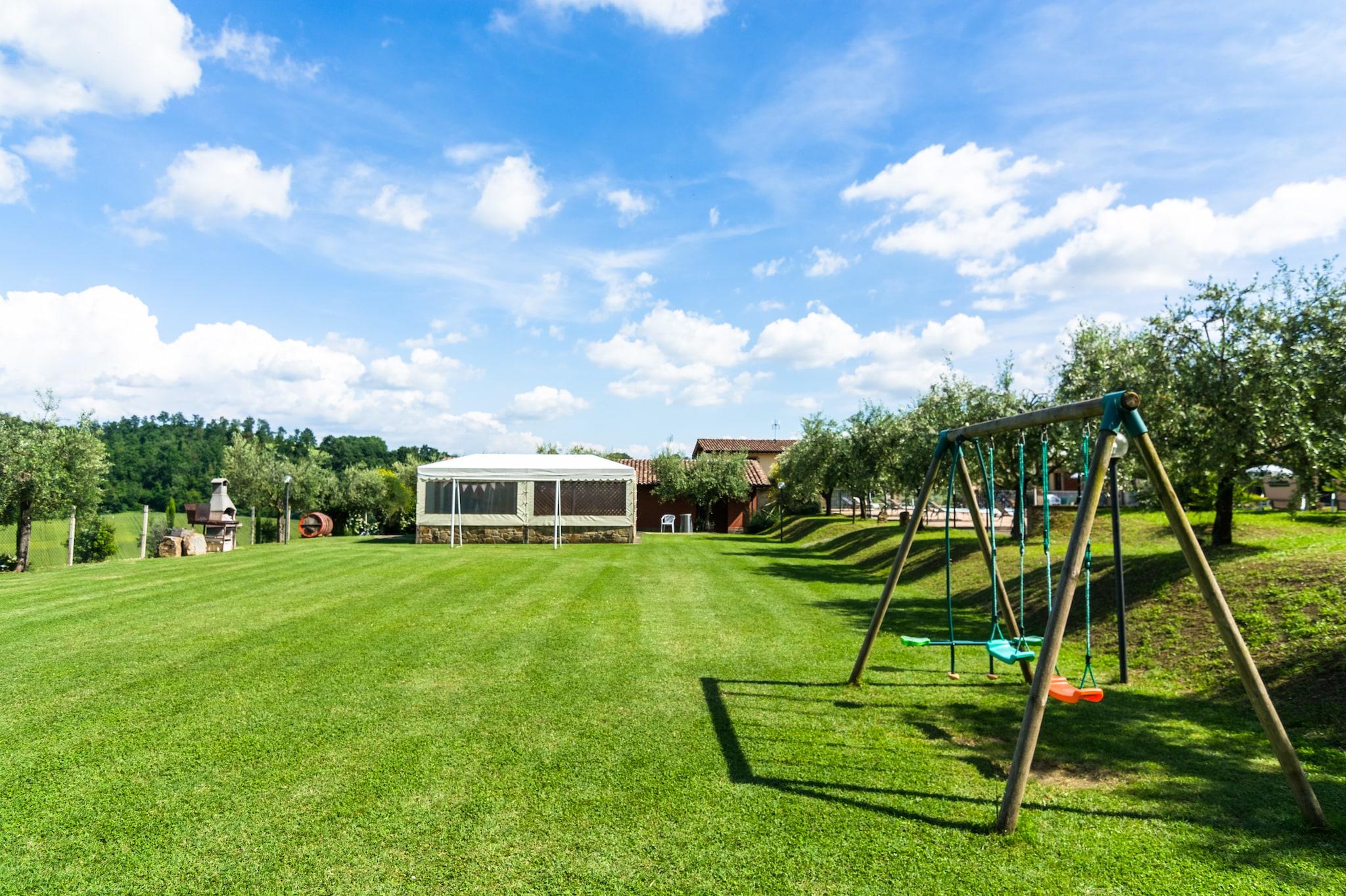 Denne bondegård bestående af 5 lejligheder med aircondition er nedsænket i de grønne umbriske bakker, omgivet af en storslået natur, og tilbyder dem, der vælger det, muligheden for en fredelig ferie, væk fra byens larm og hektiske tempo. i et gammelt stenbondehus fra det 19. århundrede, fuldstændig renoveret med respekt for kanonerne fra den gamle umbriske landlige tradition, med særlig omhu for møblerne, der tilbyder et traditionelt varmt og indbydende miljø. "En ideel mulighed for at spise ude eller nyde et glas vin på behageligt sommeraftener. Ved siden af stuehuset er swimmingpoolen med jacuzzi-hjørne for at finde forfriskning på sommerdagene, for helt at opgive bylivets stress, et wellness-rum med jacuzzi. Dens strategiske placering tillader, hvem ønskede at forene et behageligt afslappende ophold på landet med besøg i de vigtigste og suggestive umbriske kunstbyer: Perugia, Gubbio, Assisi, Spello, Spoleto. I mere end fyrre år har virksomheden været involveret i dyrkning af korn, avl af kvæg og svin, vindyrkning og olivendyrkning, med egen produktion af ekstra jomfru olivenolie, vin og speget kød. Alt dette har for nyligt fået selskab af agriturisme-aktiviteten. Brugen af wellness-området er mod betaling, efter anmodning baseret på tilgængelighed og aftales på stedet (rabatter for børn under 12 år).