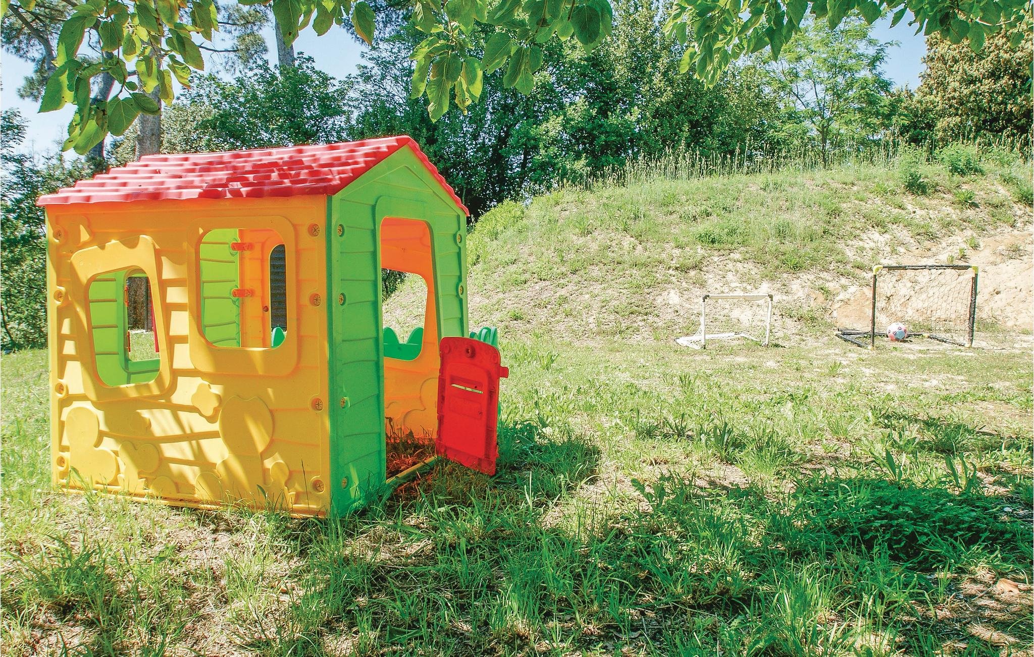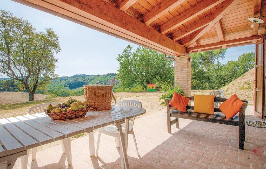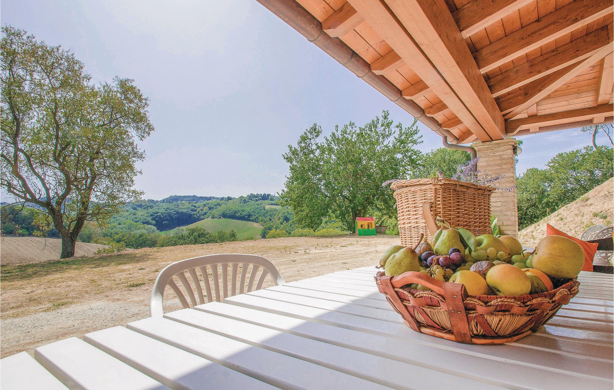 Her bor I i udkanten af Pesaro, i et smukt og velholdt dobbelthus. Fra huset er der udsigt over dalen og de grønne bakker. Udenfor er der en stor veranda med bord og stole, hvorfra man har udsigt over den store gård og en legeplads omgivet af træer. På husets bagside er der en parkeringsplads i skovbrynet. Pesaro er en kendt ferieby med udsigt over Adriaterhavet og mange shows og events i sommersæsonen. En flot historisk bykerne og 7 km strand gør Pesaro til det ideelle sted for hav- og naturelskere, der kan nyde naturen i parken i Mpnte San Bartolo. Jeres husdel har to separate indgange og er fordelt på flere etager.