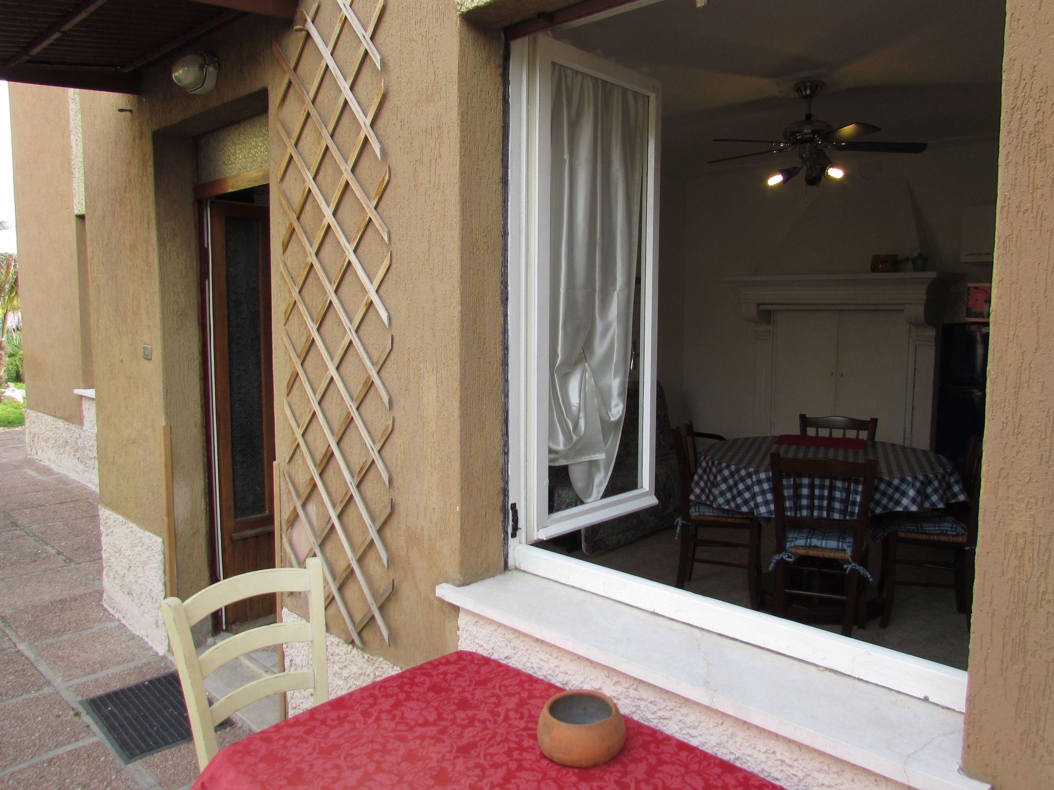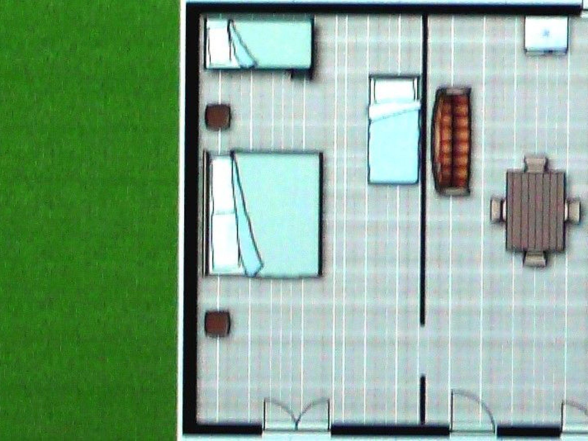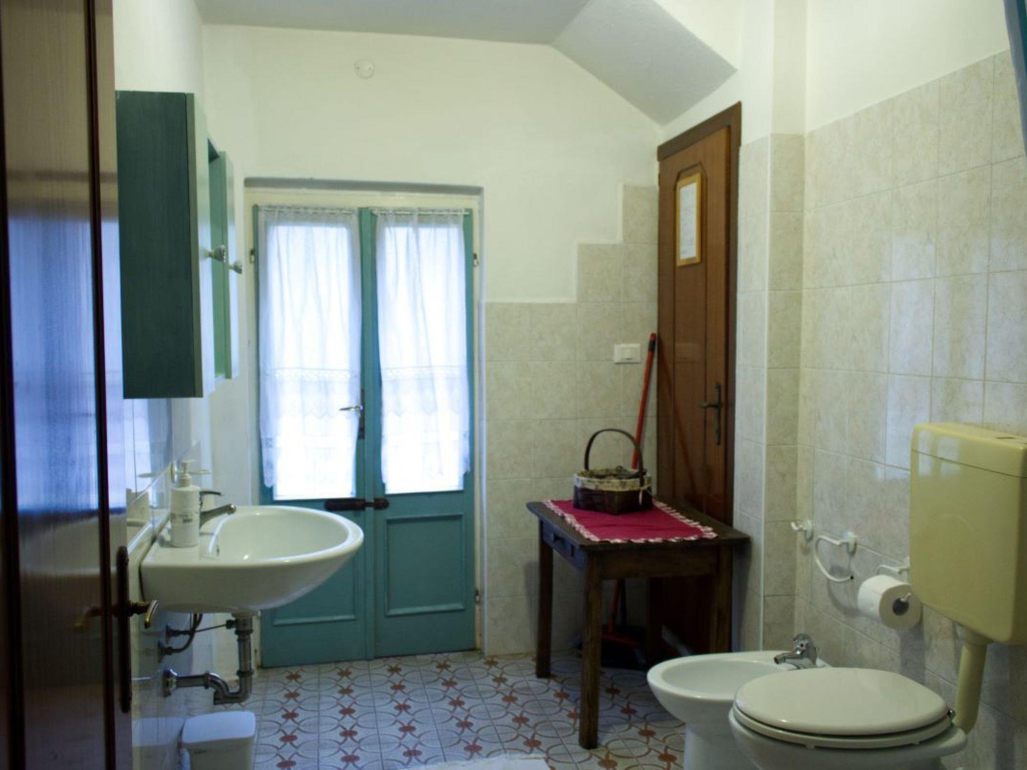 - Two-room apartment (blue) on the ground floor, about 55 sq m, consisting of bedroom with double bed and bunk bed, ceiling fan and wardrobe; living room with table and chairs, sofa bed (190x120), ceiling fan, bathroom with shower, washbasin, bidet and toilet (accessible for the disabled), TV. Heating/air conditioning on request with electric meter. The following equipment and services are included in the price: Kitchenette equipped with gas cooker, sink, crockery, dishes, cutlery, microwave, fridge and freezer, tablecloth, tea towels. Tourist tax, gas, electricity, bath towel, weekly change of linen, final cleaning. Free Internet wi-fi (max.speed 128 Kbsp).