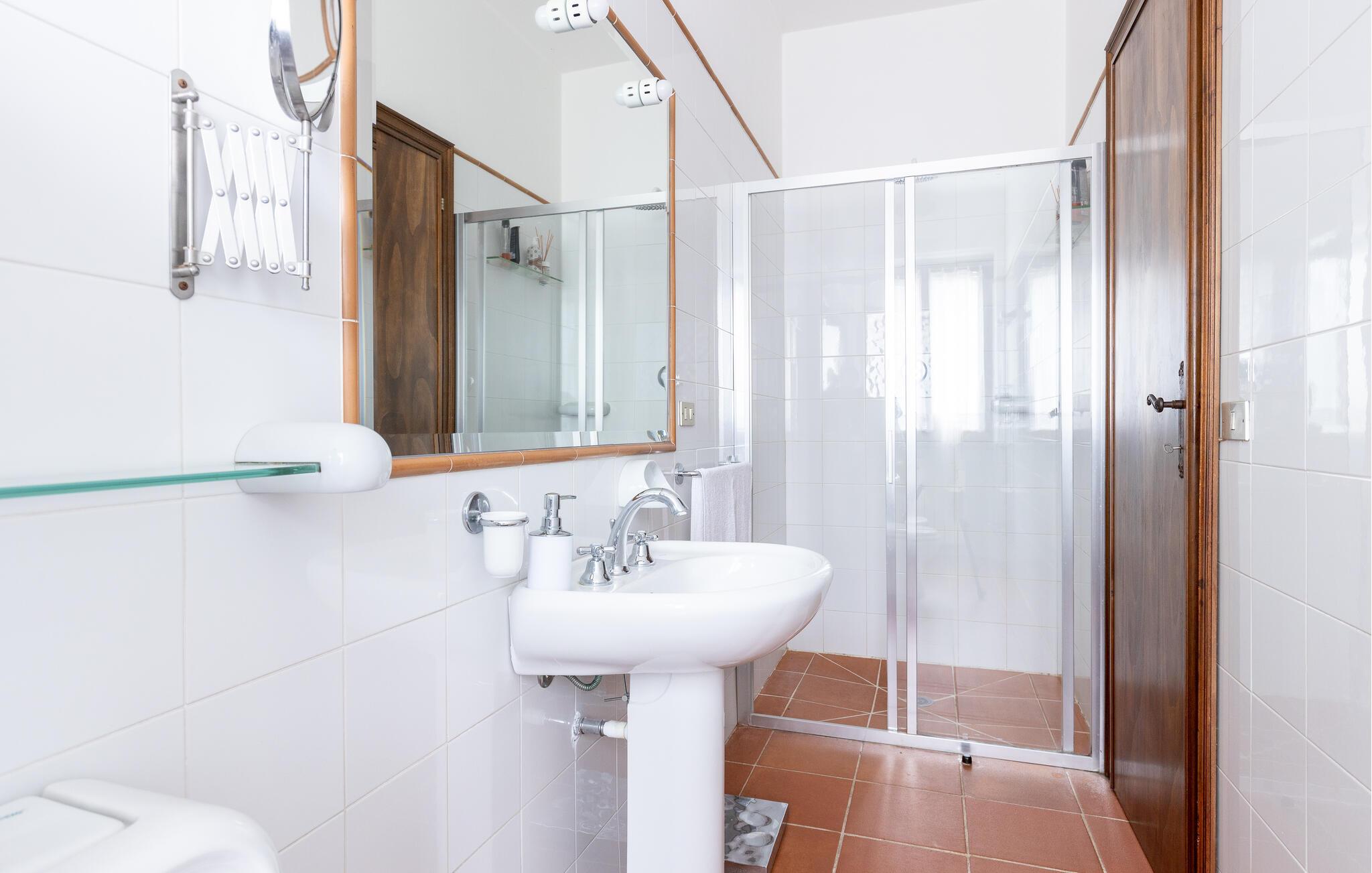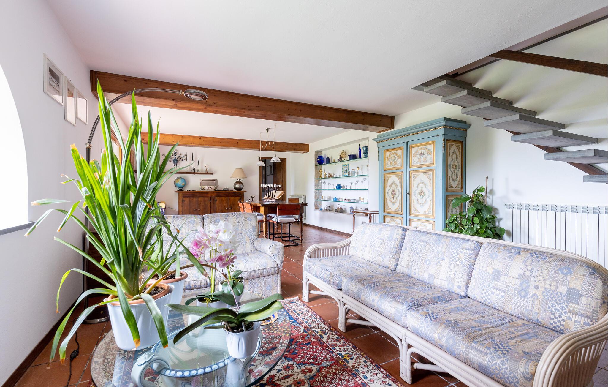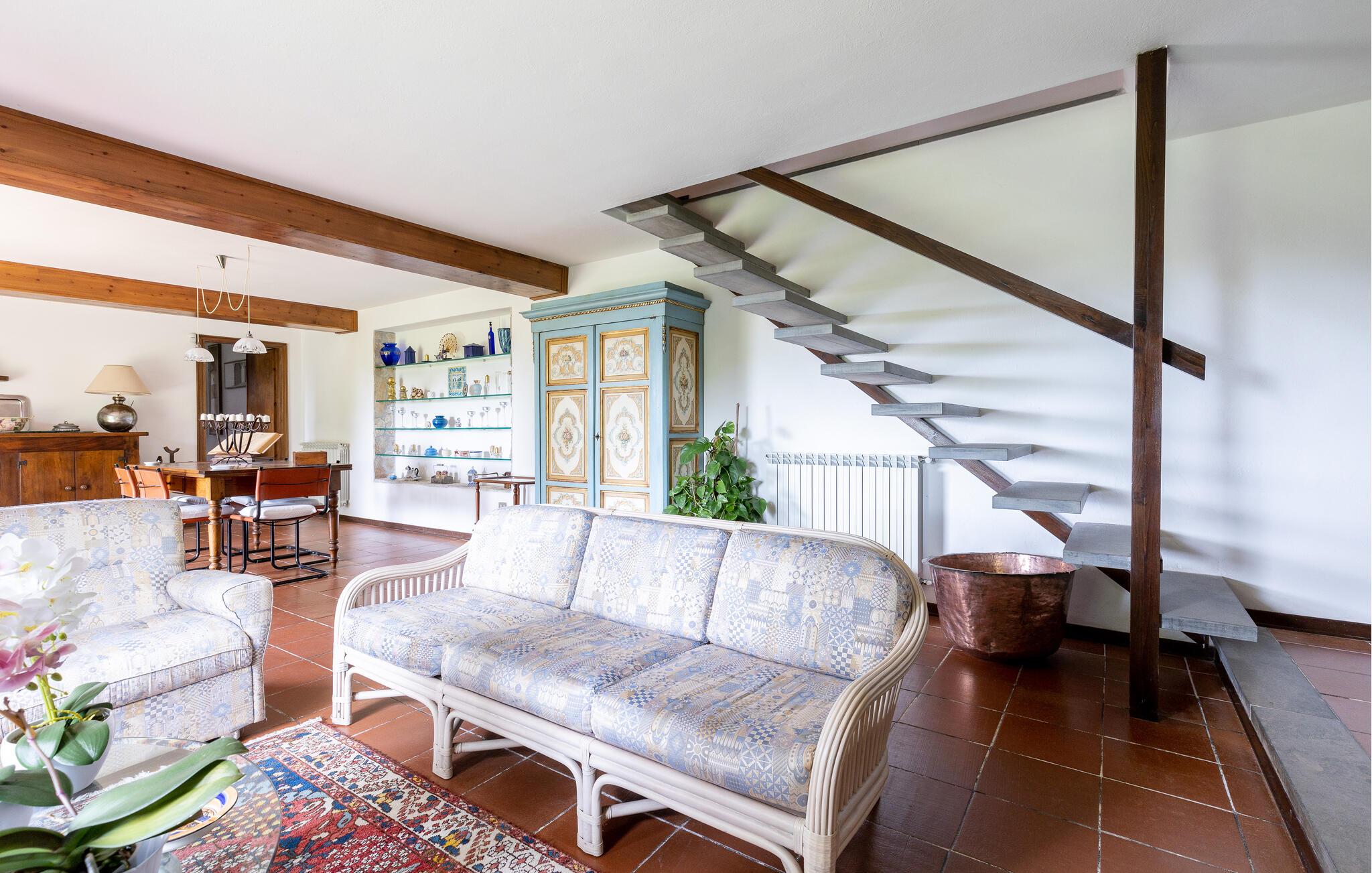 Fritliggende hus med pool, der ligger i Versilias skønne bakker i Piano di Mommio. Det ligger på en terrasseformet anlagt grund i en smuk have. Her kan I lege sammen i det fri, lave mad udendørs, hoppe en tur i husets private pool lige når I har lyst, slappe af på den store veranda og holde formen på den overdækkede terrasse med fitnessapparater. Der er kun syv km til Lido di Camaiore med mulighed for at bade og sin markante pier, der strækker sig hele 285 m ud i havet. Pietrasanta (7 km) er byen der er kendt for sin forarbejdelse af marmor og bronze og for sit historiske centrum med kunstgallerier, Viareggio ( 9 km) med sine færgeforbindelser til det betagende smukke Cinque Terre. Der er adgang til villaen direkte fra parkeringspladsen ad en trappe med 20 trin.