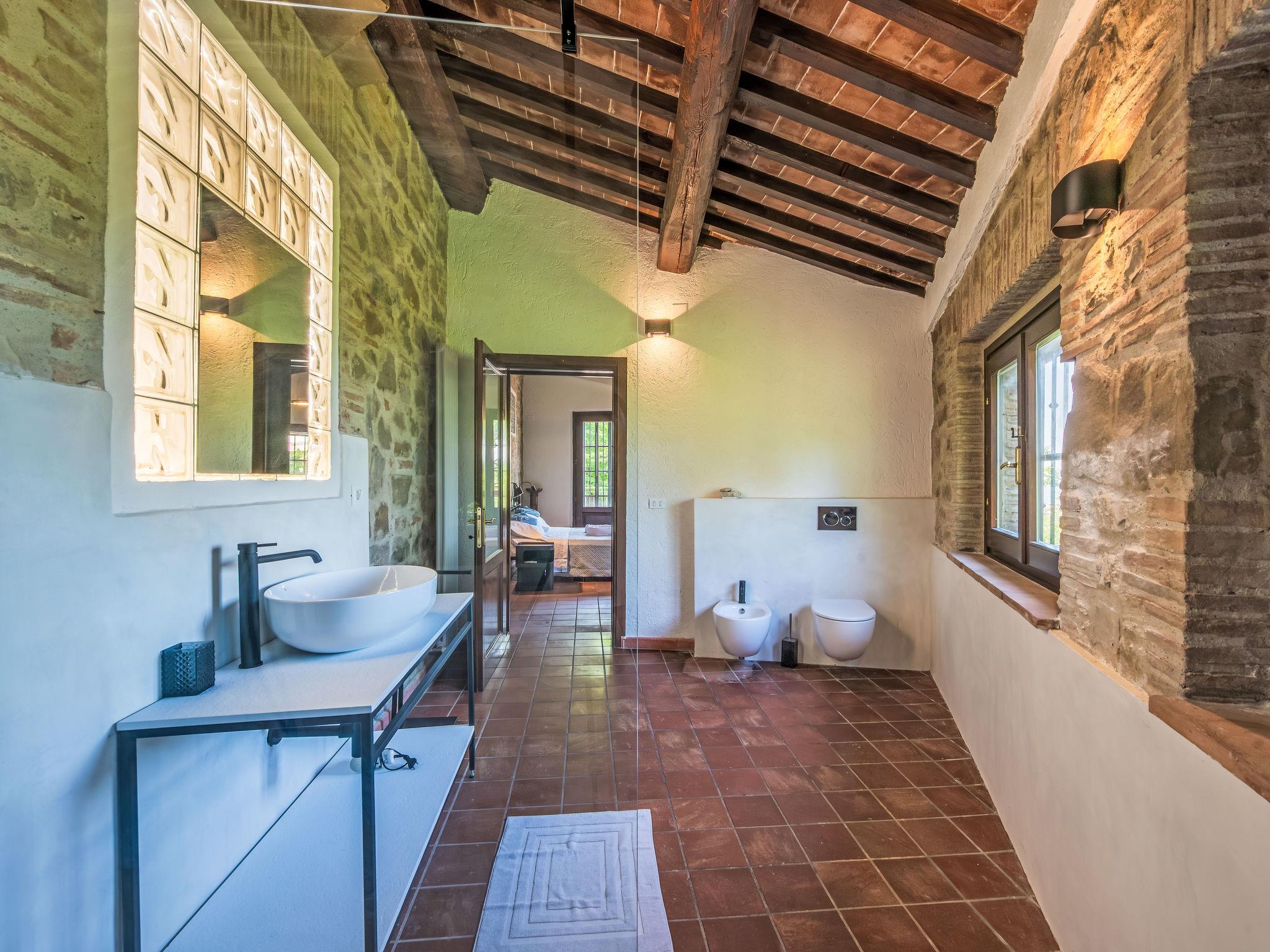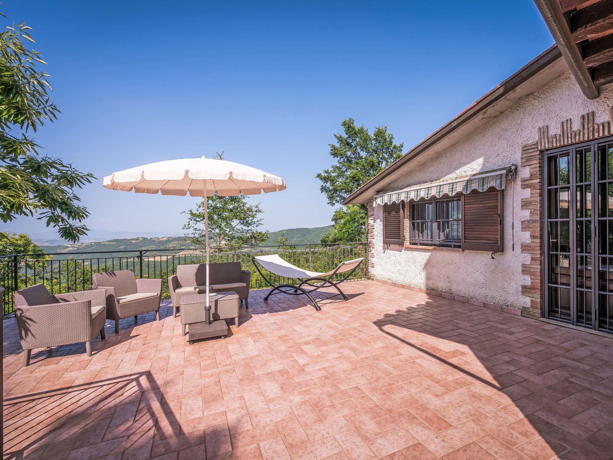Cosy, comfortable country house "I Tre Castagni", detached, renovated in 2025, surrounded by trees. Private: park 2'000 m2 (fenced), swimming pool (4 x 10 m, depth 120 - 200 cm, seasonal availability: 19.May. - 30.Sep.). Outdoor shower, garden furniture, barbecue, parking on the premises. Supermarket 9 km, restaurant 5 km, thermal baths "Trasimeno" 26 km. Nearby attractions: Piegaro 4 km, Città Della Pieve 14 km, Panicale 15 km, Perugia 36 km, Montepulciano 40 km, Pienza 50 km. Please note: car recommended. The owner does not accept any youth groups.