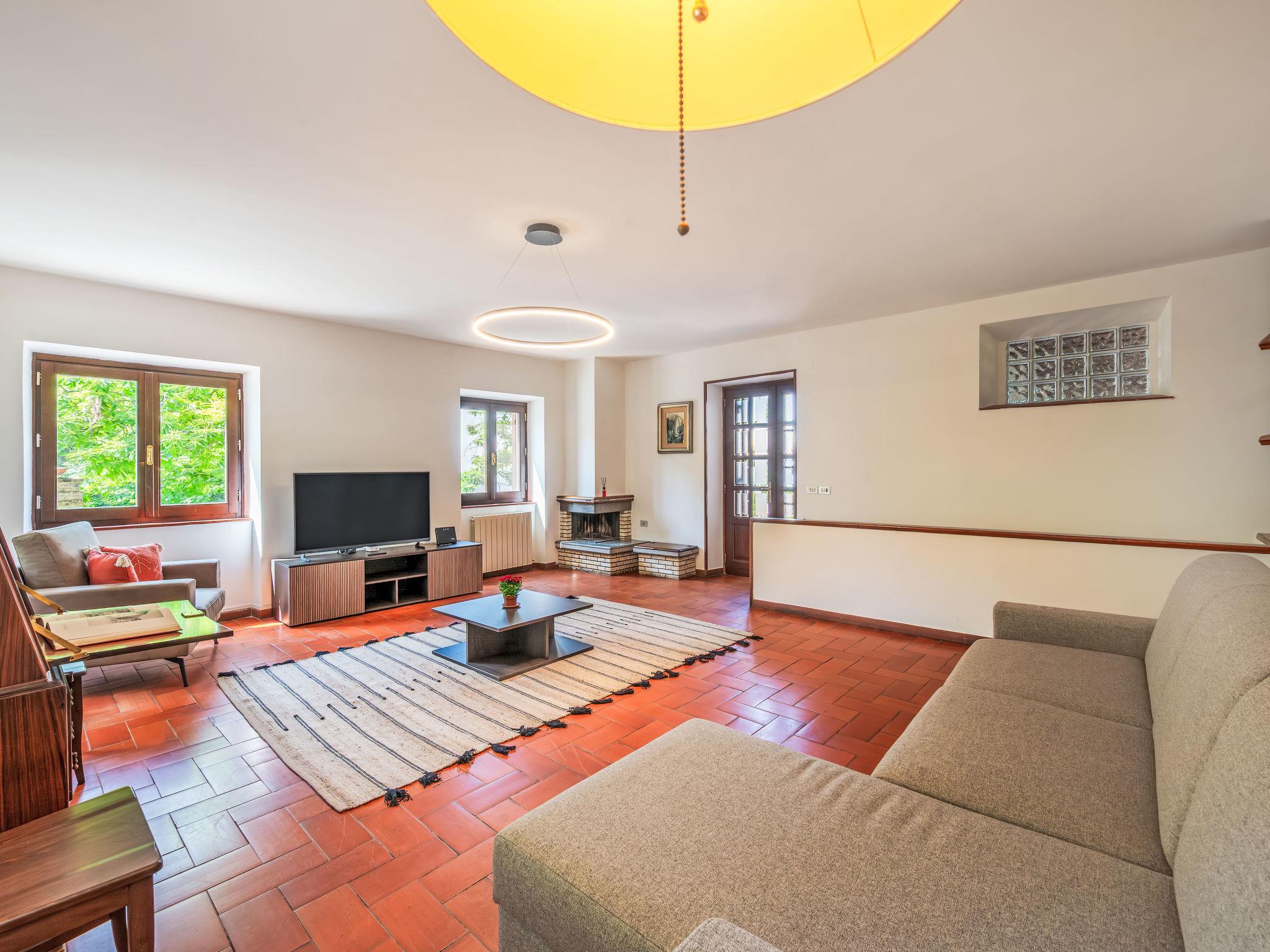 5-room villa 250 m2 on 2 levels. Practical and cosy furnishings: living/dining room with 1 double sofabed and shower/bidet/WC. Exit to the garden. Open kitchen (4 hot plates, oven, dishwasher, microwave, electric coffee machine). Shower/bidet/WC. Upper floor: living room with open-hearth fireplace and TV (flat screen). 1 large double bedroom with shower/bidet/WC and air conditioning. Exit to the garden, to the terrace. 1 double bedroom with air conditioning. 1 room with 2 beds and air conditioning. Shower/bidet/WC. Gas heating (extra), air-conditioning. Heating available only from 22.10. to 07.04. Panoramic view of the lake and the valley. Facilities: washing machine, mosquito net. Internet (WiFi). Maximum 1 pet/ dog allowed. IT054040C2C2034573