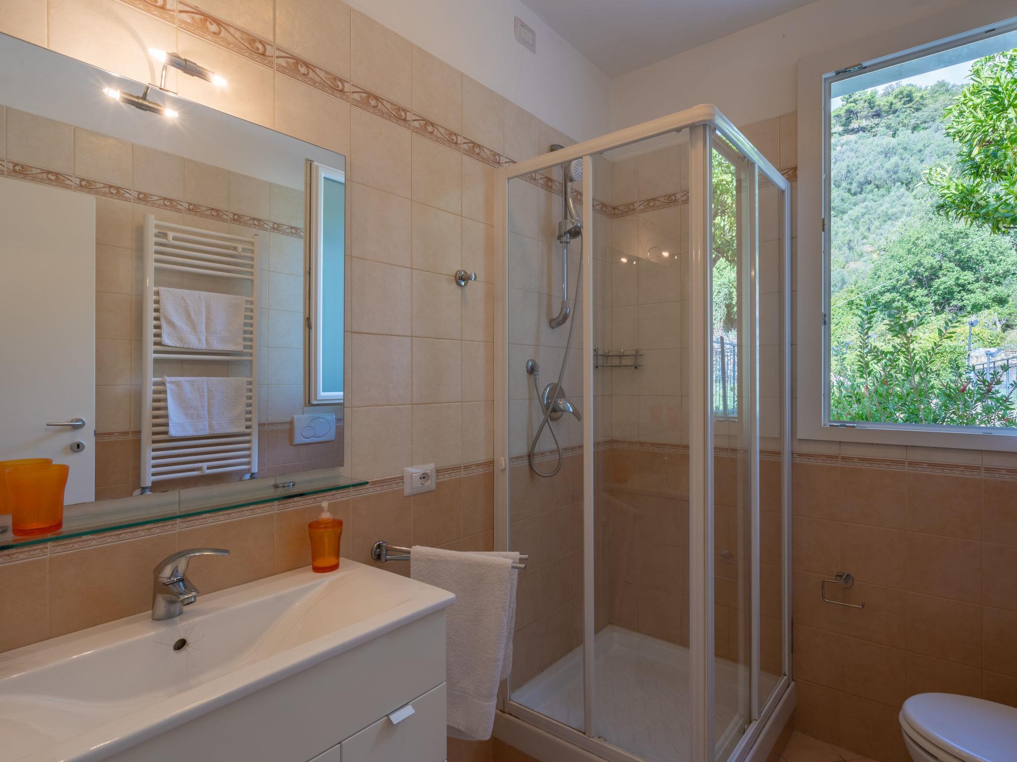 Child friendly, beautiful residence "Agriturismo Ca' di Nonni", 400 m a.s.l., 2 storeys, surrounded by trees and vineyards. 4 apartments in the residence. 100 m from the centre of Pietrabruna, on the outskirts, 10 km from the centre of San Lorenzo al Mare, 16 km from the centre of Imperia, in an elevated position on a slope, 9.5 km from the sea, in the countryside. For shared use: beautiful, well-kept terraced garden, 1'000 m2 with lawn and plants, lawn for sunbathing, swimming pool (10 x 5 m, depth 120 cm, seasonal availability: 01.May. - 01.Oct.). Outdoor shower, table tennis, patio, arbour, garden furniture, barbecue, children's playground (slide, swing), pool maintenance by the owner/gardener. In the complex: lounge with TV, fitness room, table football, storage room for bicycles, sun terrace, washing machine (for shared use), bicycle rental. 20 m long steep, narrow motor access. Stepped path to the house. Public parking 50 m on the road. Shop, grocery 200 m, supermarket 10 km, shopping centre 10 km, restaurant, bar, bakery 300 m, café 200 m, bus stop 150 m, sandy beach "San Lorenzo al Mare" 10 km, shingle beach 10 km, bathing lake "Laghetti Torre Paponi" 5 km. Walking paths from the house 10 m. Nearby attractions: Pista ciclabile lungo mare 10 km, Museo dell´olio Imperia 18 km, Lavendeldestilation in Pietrabruna. Hiking paths: Monte Faudo (1149 m) Mountainbike Trails 5 km, Monte Follia 2 km. The owner does not accept any youth groups. Please note: Loading and unloading of baggage is possible at the holiday house.