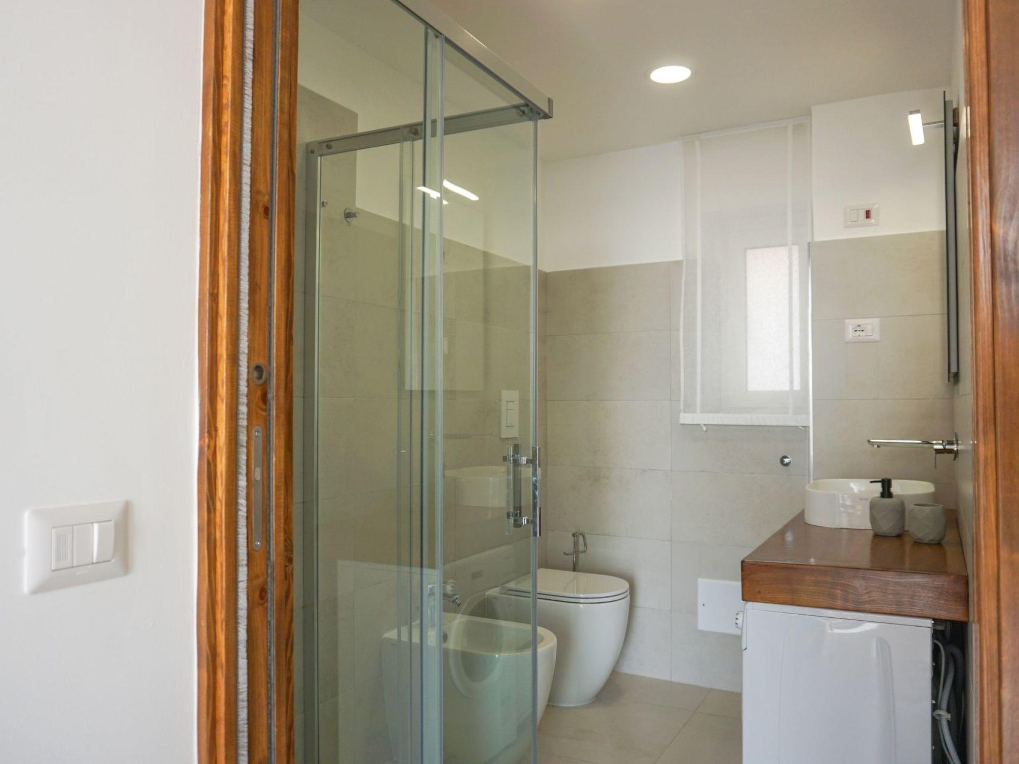 The high ceilings amplify the feeling of spaciousness and openness, contributing to an even more welcoming and airy environment. Located in an enviable position only 20 metres from the coast, the flat is on the first floor of a characteristic historical building, easily accessible by a staircase. Right on the ground floor, the presence of a pizzeria and a bar enlivens the life of the seaside village, acting as true nerve centres of the local experience.