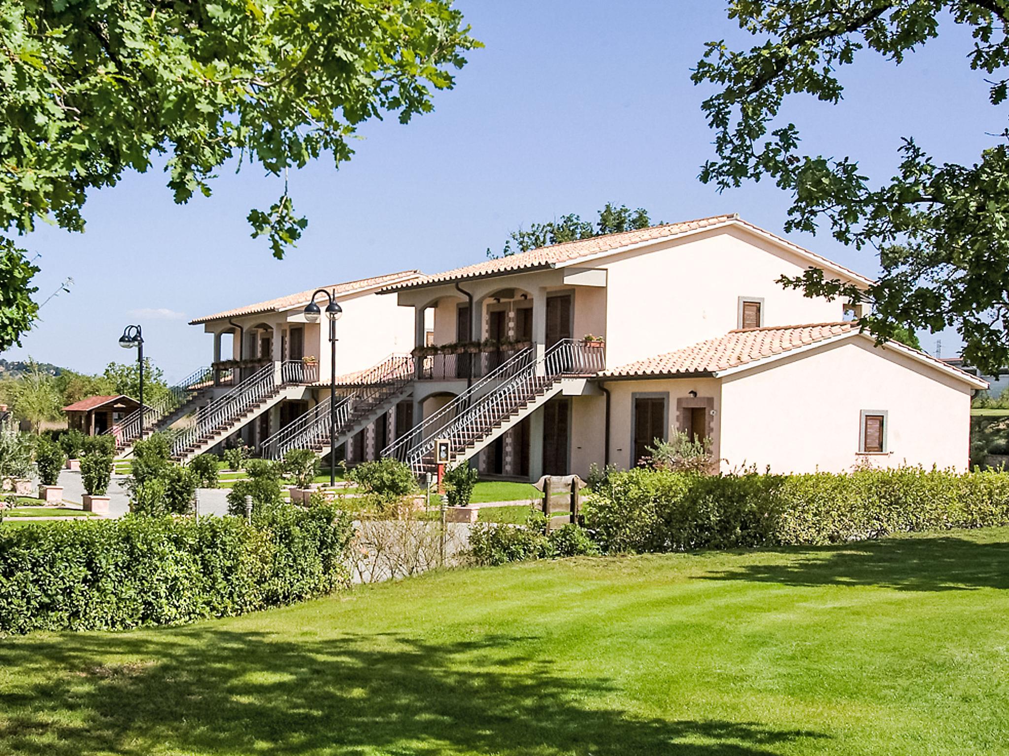 Very beautiful holiday village "Oak". 24 apartments in the residence. In the resort Sorano, 10 km from the centre of Pitigliano, 30 km from the centre of Manciano, in a sunny, elevated position, 60 km from the sea, 25 km from the lake, located by a road. For shared use: park 20'000 m2, beautiful garden to relax, swimming pool kidney-shaped (20 x 8 m, seasonal availability: 01.May. - 30.Sep.). Outdoor shower, table tennis, garden furniture, barbecue, barbecue house, children's playground. In the complex: restaurant, bar, breakfast room with TV, internet access, sauna (extra). Massage (extra). Steam room (all extra), spa area, central heating system, air conditioning, heating available only from 01.Nov. - 15.Apr.. Breakfast possible (extra). Parking on the premises. Shop 1 km, grocery 1 km, restaurant 1 km, sandy beach "Albinia" 59 km, thermal baths 3 km, bathing lake "Bolsena" 25 km. Golf course (18 hole) 35 km, riding stable 15 km. Nearby attractions: Saturnia 34 km, Orvieto 46 km, Argentario 60 km. Please note: suitable for families. The complex has night security. Residence with electric gates. The photograph shows a typical example. In the solarium there is another swimming pool with waterfall (10x5 90cm).Pool towels available: 10,00€ per week per person.