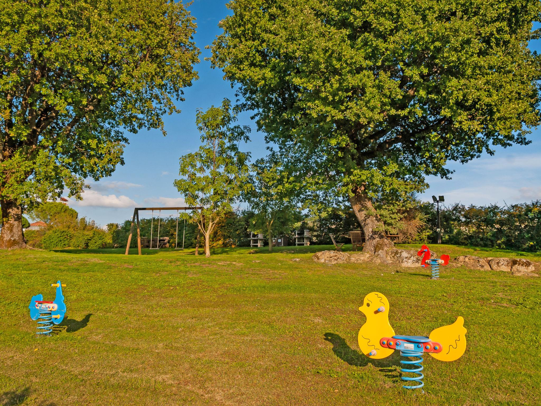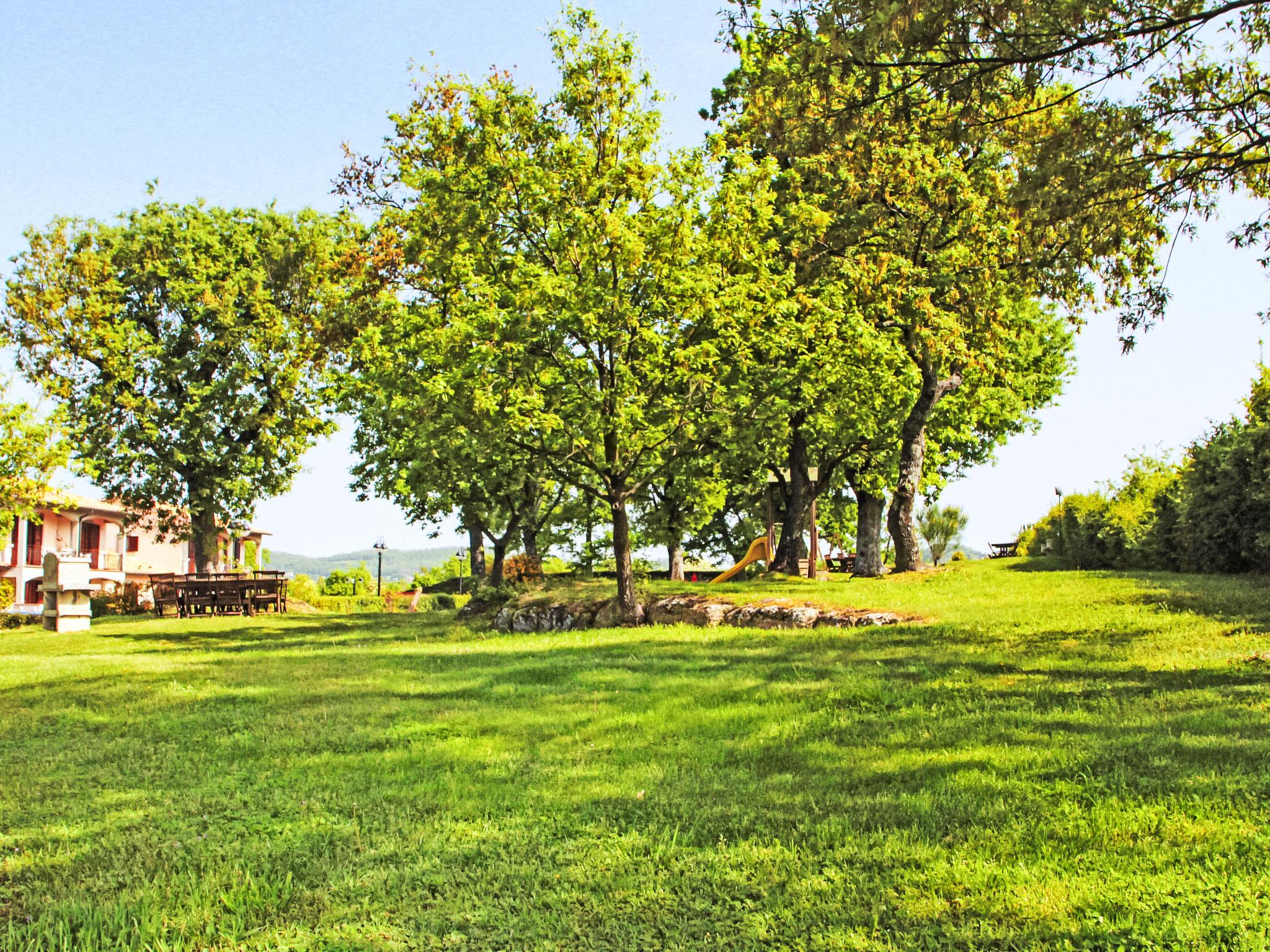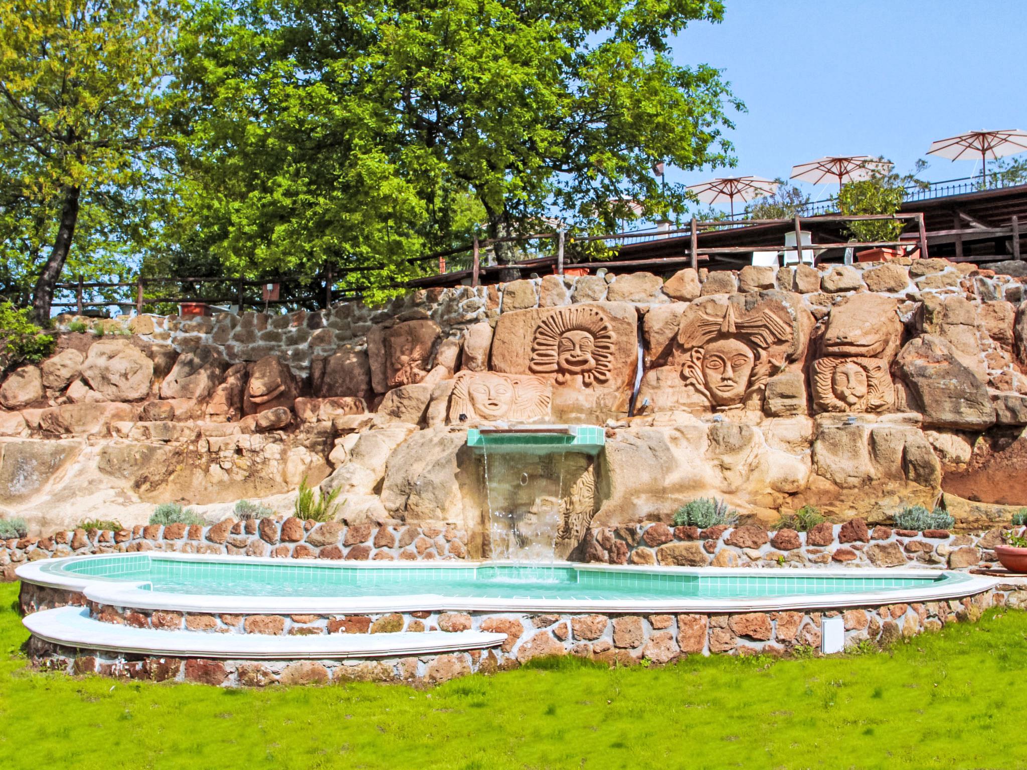 Very beautiful holiday village "Oak". 24 apartments in the residence. In the resort Sorano, 10 km from the centre of Pitigliano, 30 km from the centre of Manciano, in a sunny, elevated position, 60 km from the sea, 25 km from the lake, located by a road. For shared use: park 20'000 m2, beautiful garden to relax, swimming pool kidney-shaped (20 x 8 m, seasonal availability: 01.May. - 30.Sep.). Outdoor shower, table tennis, garden furniture, barbecue, barbecue house, children's playground. In the complex: restaurant, bar, breakfast room with TV, internet access, sauna (extra). Massage (extra). Steam room (all extra), spa area, central heating system, air conditioning, heating available only from 01.Nov. - 15.Apr.. Breakfast possible (extra). Parking on the premises. Shop 1 km, grocery 1 km, restaurant 1 km, sandy beach "Albinia" 59 km, thermal baths 3 km, bathing lake "Bolsena" 25 km. Golf course (18 hole) 35 km, riding stable 15 km. Nearby attractions: Saturnia 34 km, Orvieto 46 km, Argentario 60 km. Please note: suitable for families. The complex has night security. Residence with electric gates. The photograph shows a typical example. In the solarium there is another swimming pool with waterfall (10x5 90cm).Pool towels available: 10,00€ per week per person.