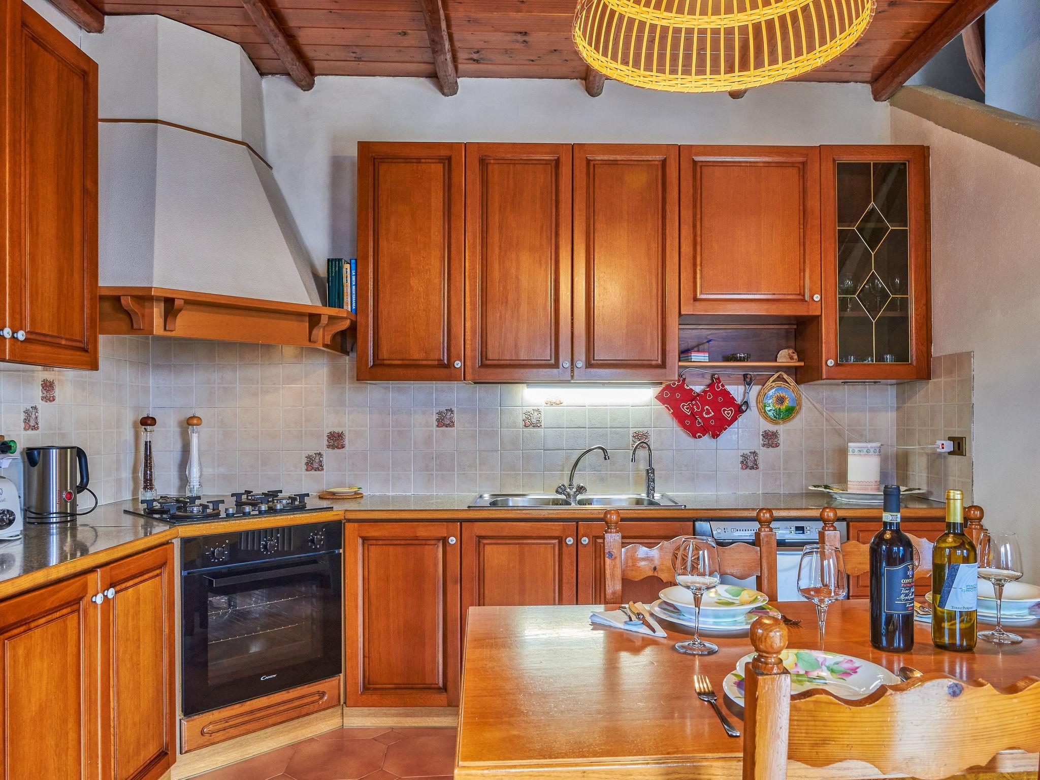 "Casa Rosy", 3-room semi-detached house 95 m2 on 2 levels. Object suitable for 4 adults + 1 child. Spacious, beautiful furnishings: open living room with Scandinavian wood stove and TV (flat screen). Open gallery with sloping ceilings with 1 sofabed (140 cm, length 190 cm). Large, open kitchen (oven, dishwasher, Gas stove, 4 gas rings, toaster, kettle, freezer, electric coffee machine) with dining table and heating stove. Exit to the garden, to the terrace. Upper floor: 1 double bedroom. 1 room with 2 beds. Bath/bidet/WC. Heating. Natural stone floors. Large terrace roofed. Terrace furniture, deck chairs (2). Marvellous panoramic view of the lake, the mountains and the resort. Facilities: washing machine, baby cot for up to 2 year olds, logs (extra). Internet (WiFi, free). Please note: non-smoking house. Access to the house possible up to approx. 600m. The owner will do the luggage transport on the arrival and departure days from here. One additional transfer/ day from the house to the town can be requested for a fee. Instead of an enclosed bedroom, some sleeping areas are located in an open-plan area (gallery, alcove, etc.). IT013189C2MXZGJ5MI