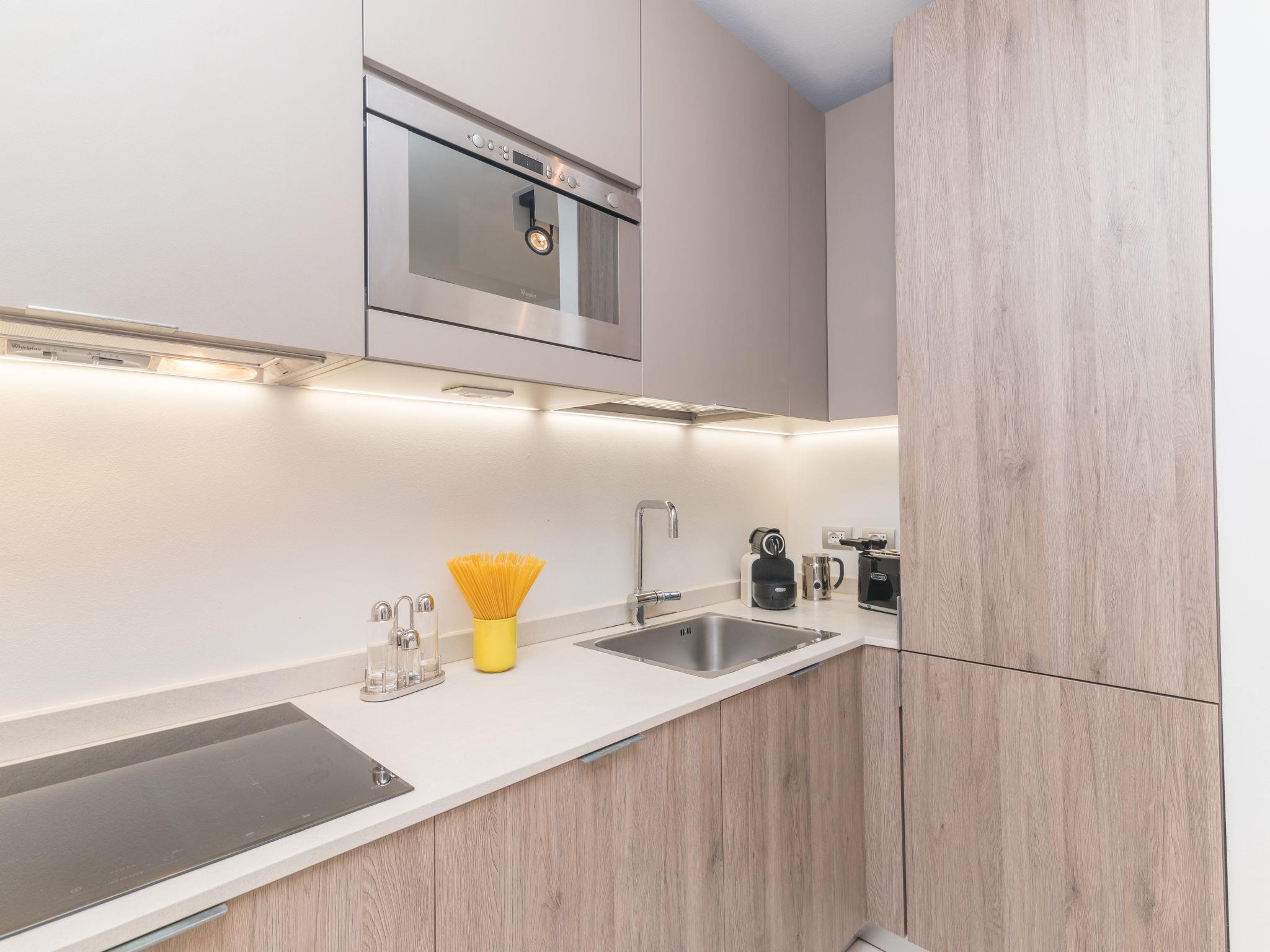 "La Nina", 3-room apartment 55 m2, on the ground floor. Comfortable and cosy furnishings: living/dining room with satellite TV. Exit to the terrace. 1 double bedroom with 1 french bed (140 cm). 1 room with 1 bed 1 bunk beds. Exit to the terrace. Kitchenette (4 induction hot plates, toaster, microwave, electric coffee machine). Shower/bidet/WC, sep. WC. Air-conditioning, forced-air heating. Terrace partly roofed, garden. Terrace furniture, deck chairs (2). View of the sea and the garden. Facilities: washing machine, children's high chair, baby cot (extra), hair dryer. Parking space n B018 at 200 m. IT090047C258NUASDH