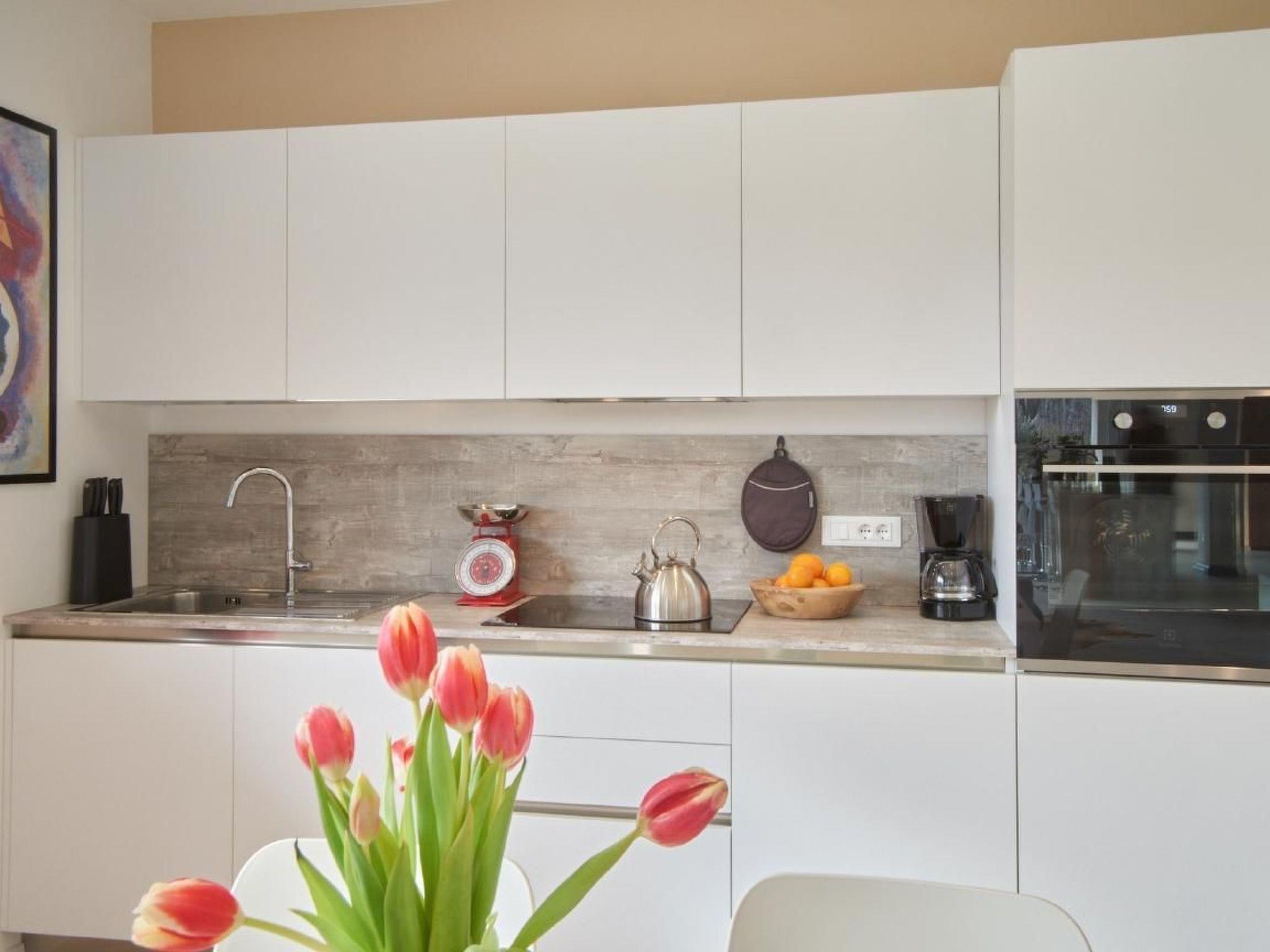 The two flat types "Garden & Wellness Oliveto" on the ground floor and "Penthouse & Wellness Oleario" on the upper floor both have a living room with kitchen, bathroom, main bathroom, two double bedrooms, large covered outdoor areas, which include an outdoor living room with kitchen / bar counter and wellness area with relaxation area. Each unit has two garages, a cellar and an outdoor parking space.