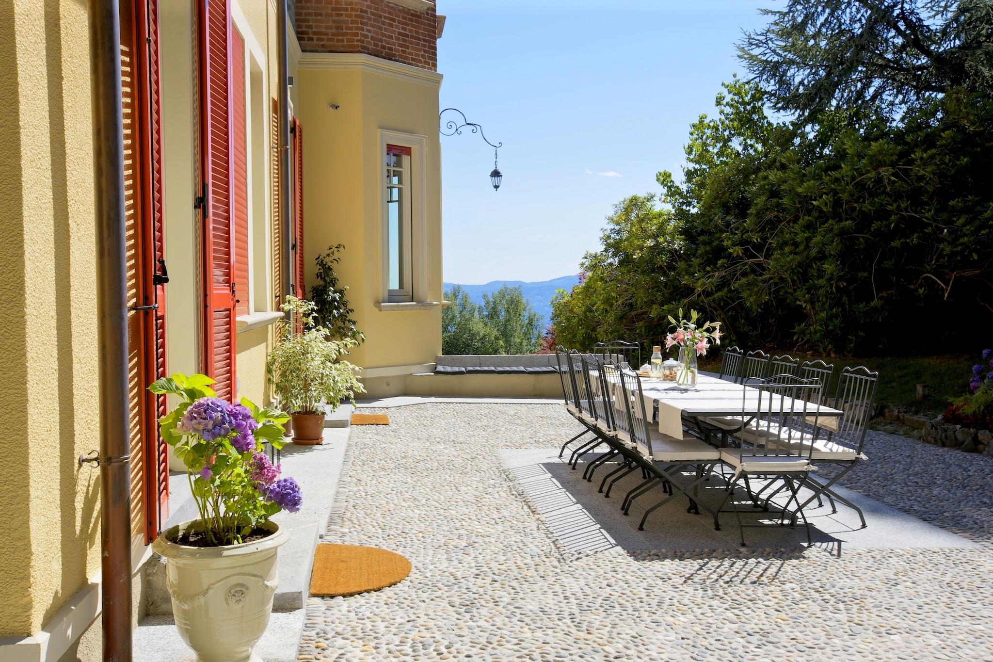 Prestigefyldte og luksuriøse villa bygget i 30'erne og fuldstændig restaureret i 2016. Eksisterende strukturer og materialer som gulve og lofter, pejs og trappe blev restaureret og renoveret med omhu for at opretholde charmen i italiensk stil. Villaen ligger næsten 1000 meter over havniveau i en solrig sydvendt position med en fantastisk udsigt over det fortryllende landskab ved Maggiore-søen. Omgivet af mere end 22.000 m2 ejendom og udstyret med en panoramisk swimmingpool. Villaen er udlagt på flere etager med 3 balkoner og en 12 m2 vinduer med bord, små stole og panoramaudsigt over søen og bjergene. De fleste værelser vender ud mod søen. For sikkerheden og komforten hos gæsterne er villaen udstyret med røgdetektorer og ildslukkere i hver etage. Din beskyttelse er garanteret med hegn, elektronisk port, sikkerhedskameraer og alarmer. Parkering inde i ejendommen. Jeg er tilgængelig på forespørgsel (bedes du anmode om på tidspunktet for booking); Følgende er ikke inkluderet i prisen: Yderligere rengøringsservice, privat kok, mad levering, drikkekurv og velkomstdrink. Særlige arrangementer kan arrangeres efter anmodning.