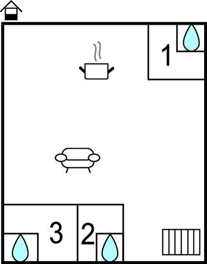 Soveværelse (nr. 1) - 1 Soveplads. (Enkeltseng(e)). 2 Sovepladser. (Dobbeltseng(e)).