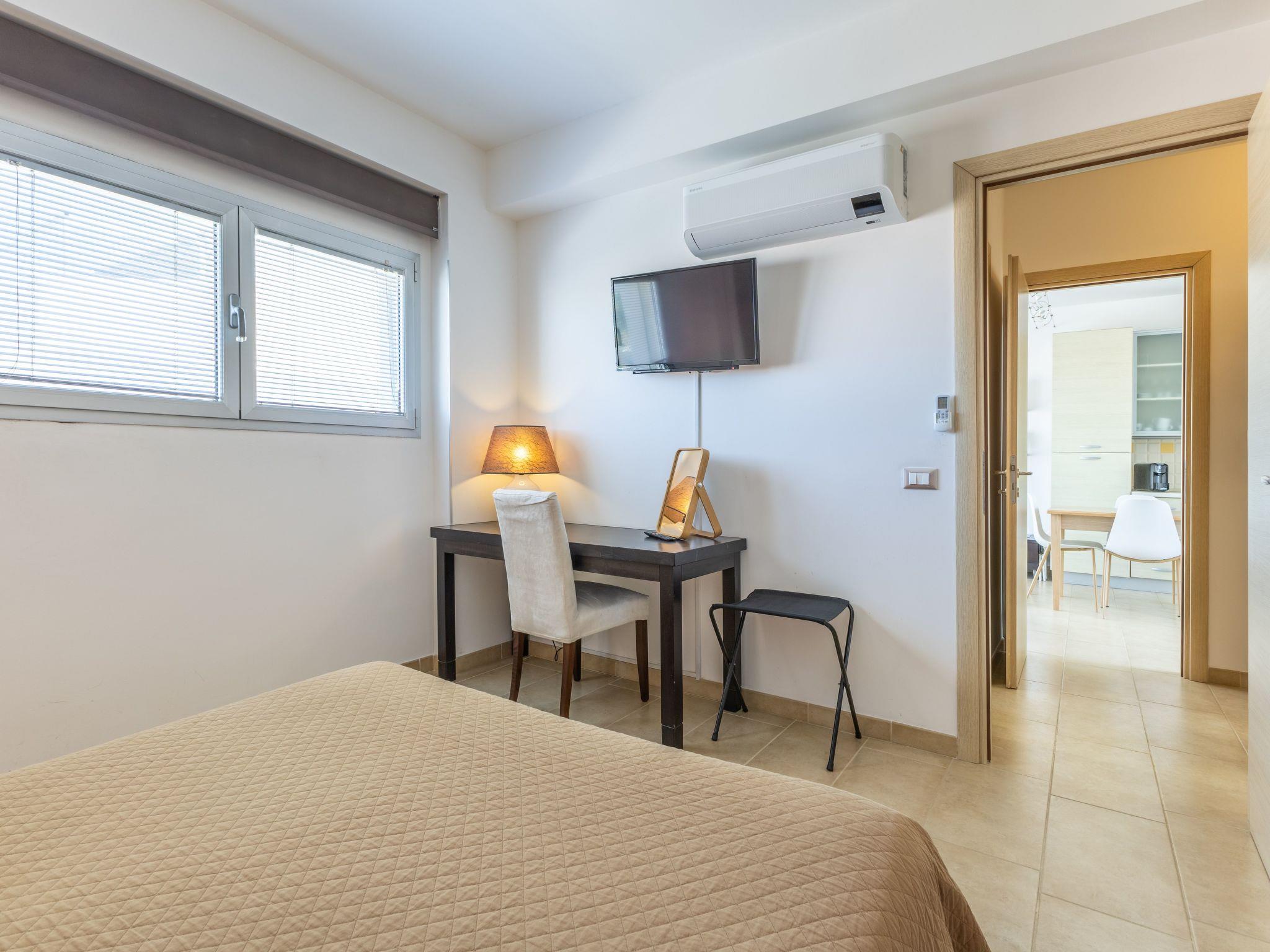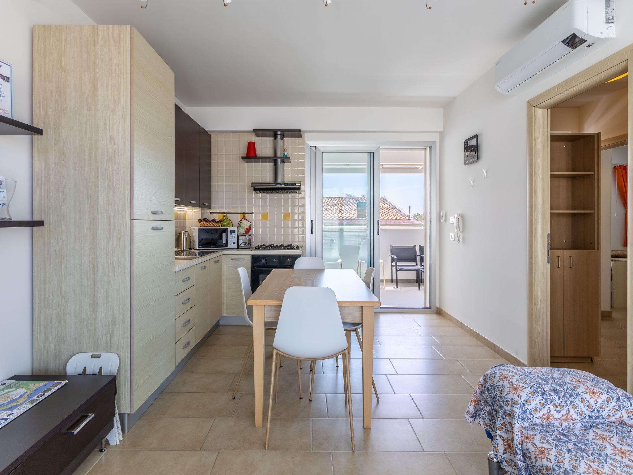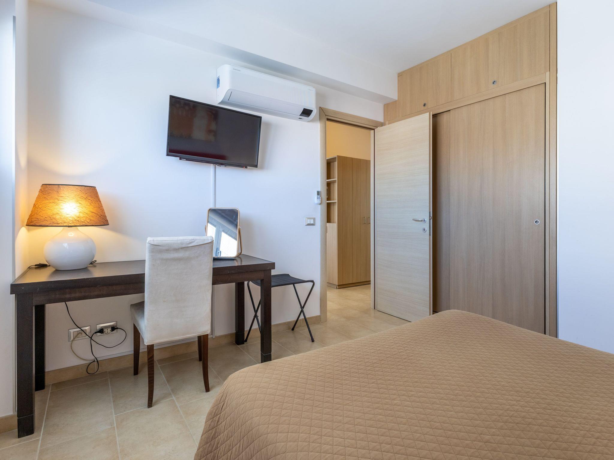 Internally, the flat boasts an inviting kitchen-living room equipped with a comfortable sofa bed for one guest (80x180cm) and a practical kitchenette, ideal for nourishing convivial moments without giving up the comforts of home. Two bedrooms, one with a double bed (160x190cm) and the other with two single beds (80x190cm each) that can be converted into another double bed, offer flexibility and privacy. The flat is also equipped with many modern conveniences such as an LCD TV with SKY HOTEL service operating from 1 May to 31 October, air conditioning in every room, Wi-Fi, a safe, and a fully equipped kitchen with cooker, oven, microwave and refrigerator.
