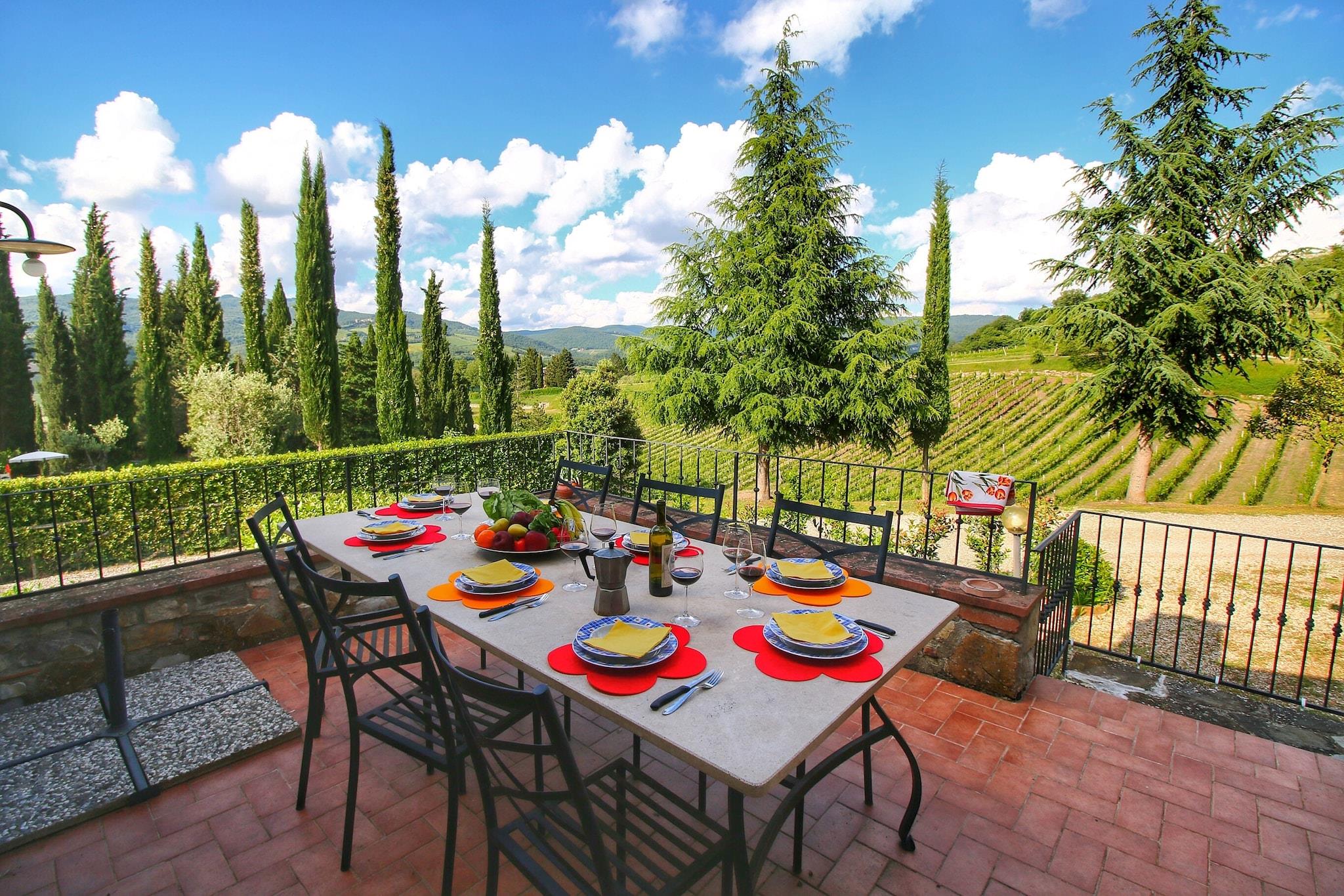 Denne 7-værelses bondegård, som hviler i Radda In Chianti, Toscana, Italien, kan være vært for en familie eller en gruppe på 14. Kun 2 km fra byens centrum har bondegården en swimmingpool udstyret med liggestole efter en gåtur på 250 m. Under dit ophold her kan du planlægge et besøg til Albola Slot og Parco Archeologico di Poggio La Croce. Om søndagen kan du tage til Pieve di Santa Maria Novella. Du kan også planlægge en tur til Chianti Sculpture Park. Shoppingelskere kan besøge den nærliggende bymidte. Spisesteder såvel som almindelige butikker ligger i en afstand af 2 km. Denne dejlige feriebolig har legeredskaber til børn. Der kan lejes cykler. En have og en terrasse på denne ejendom er ideelle til grill. Der er tv på begge etager sammen med WiFi-forbindelse. En barneseng og en høj stol til børn tilbydes også. Gæsterne har også adgang til en økologisk have, hvor de kan plukke grøntsager. Der er en overdækket parkeringsplads, og du kan leje båndhåndklæder på overnatningsstedet. Specielt for gæster er der køkken med spiseplads i udhuset, hvor der kan arrangeres arrangementer efter ønske i samråd med ejeren. Den nærmeste lufthavn ligger kun 55 km væk.