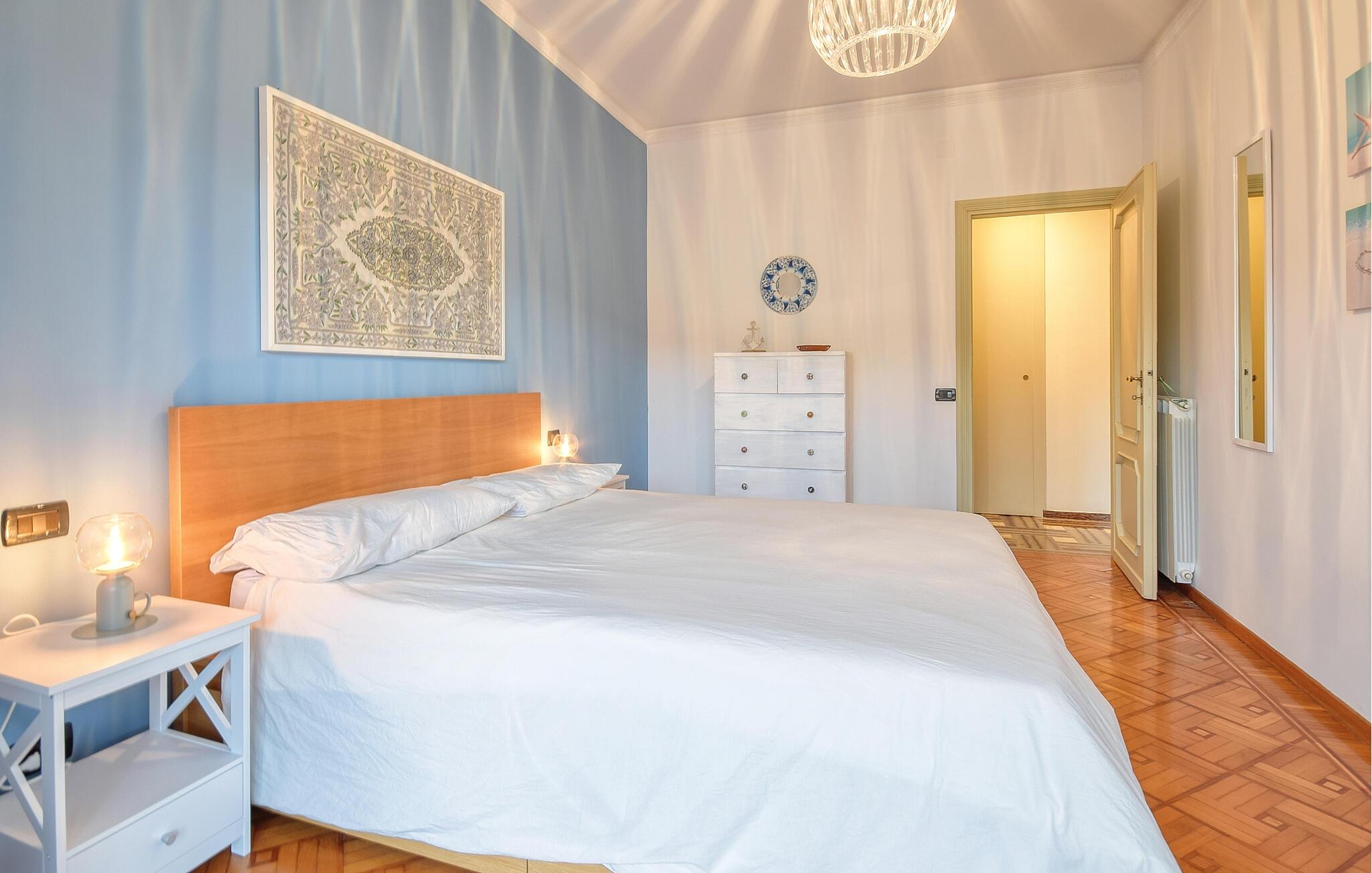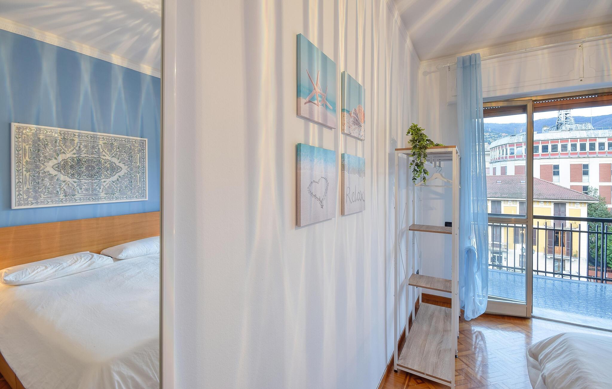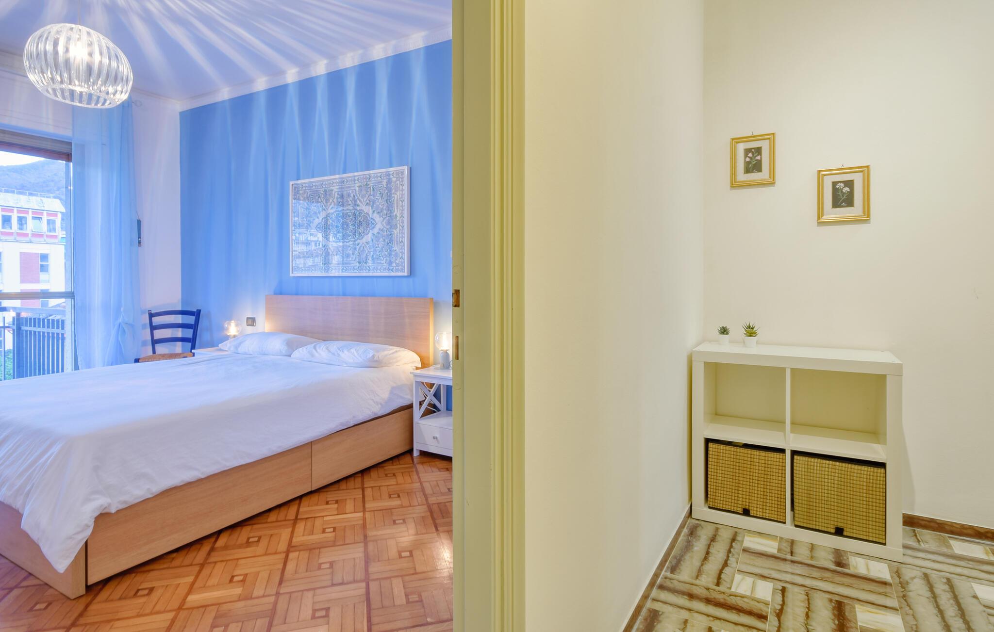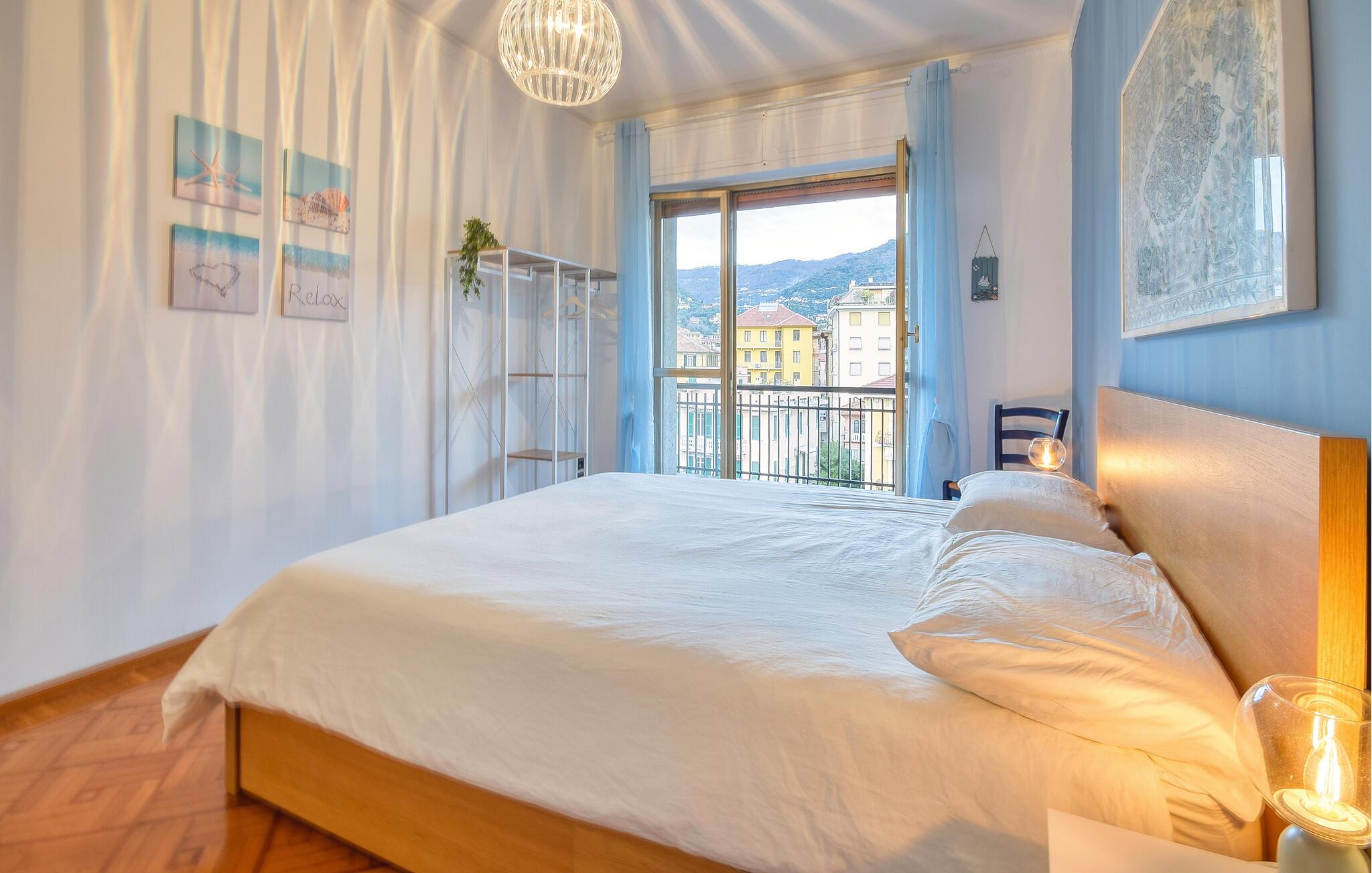 Den liguriske ferielejlighed emmer af stil og charme og er indrettet i byens og havets farver. Her venter jer en behagelig atmosfære, hvor I kan se frem til mange hyggelige stunder med jeres venner eller familie. I kan komme helt ned i tempo her med en betagende kulisse, da I alle vil vågne op med udsigten til den smukke Rapallo. Begge soveværelser har nemlig udgang til altanen, hvorfra I kan beskue byens summende liv.