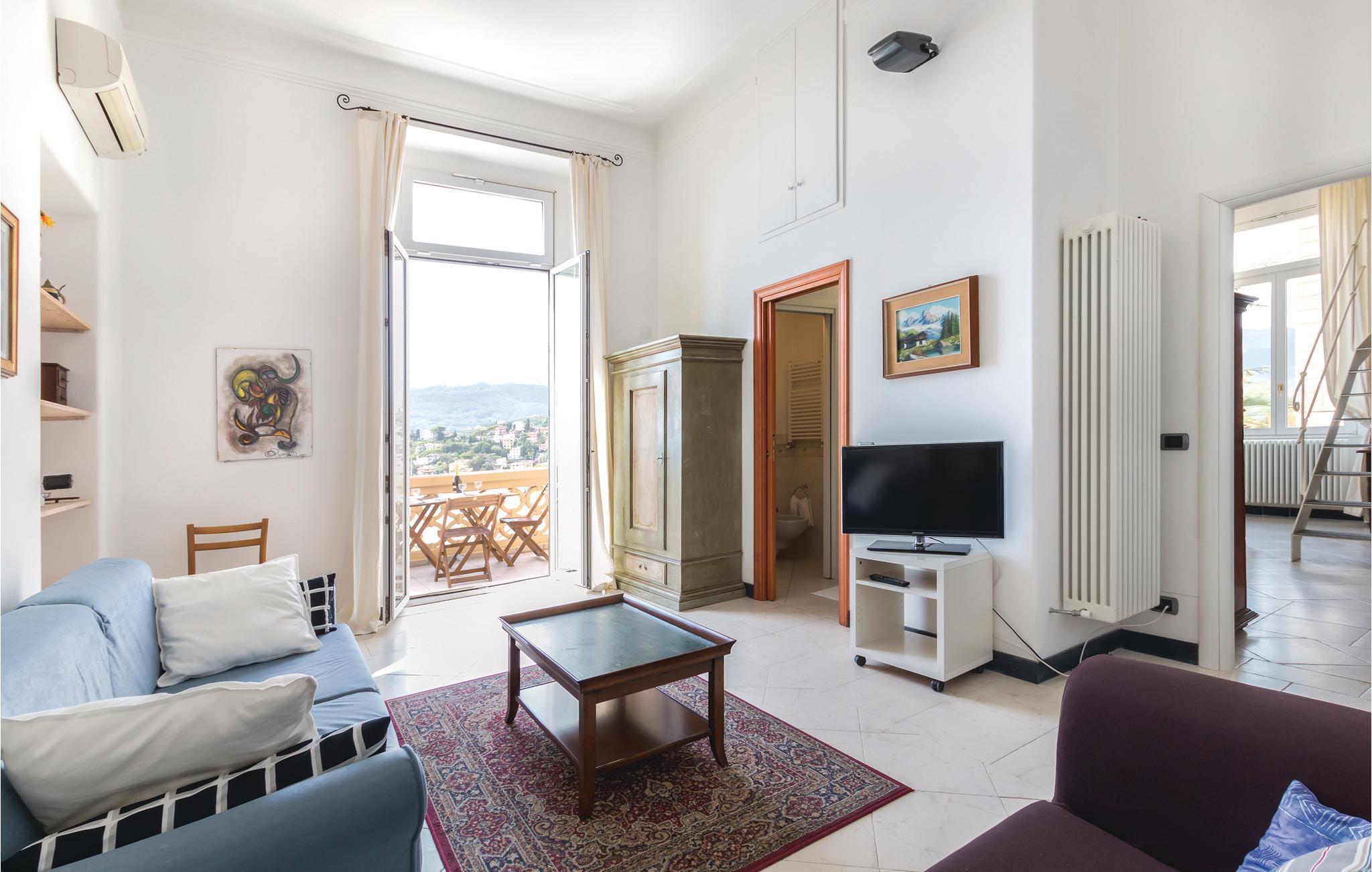 Elegant ferielejlighed hvis gæster har adgang til fælles pool og have med havemøbler. Den ligger i en historisk villa ca. 10 minutters gang fra de nærmeste strand i den skønne by Rapallo ved Tigulliobuten og kun få minutter i bil fra Santa Margherita Ligure og det berømte Portofino. I bor i et perfekt udgangspunkt til uforglemmelige oplevelser. Fx til Genua med sit historiske center og Europas største akvarium, 30 km væk. Her er utallige vandrestier og desuden en nærliggende meget berømt golf- og tennisbane. Lejligheden ligger på første sal (elevator) og strækker sig over to etager (hems med to enkeltsenge, max 1,75 højde). Tekøkken - køleskab og to kogeplader. Cinque Terres fortryllende landskaber og småbyer nås enten i bil, med tog eller færge (havn ca. 700 m væk). I samme hus som ILL260-264-265-266-267-300-398-793 og lejligheden hvor ejer bor. Kun ankomst mellem 16.00 og 18.00.