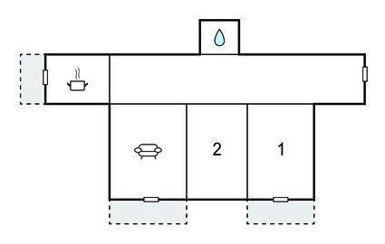 Opholdsstue 25m2 - 2 Sovepladser. (Sofa, madras eller lignende).
