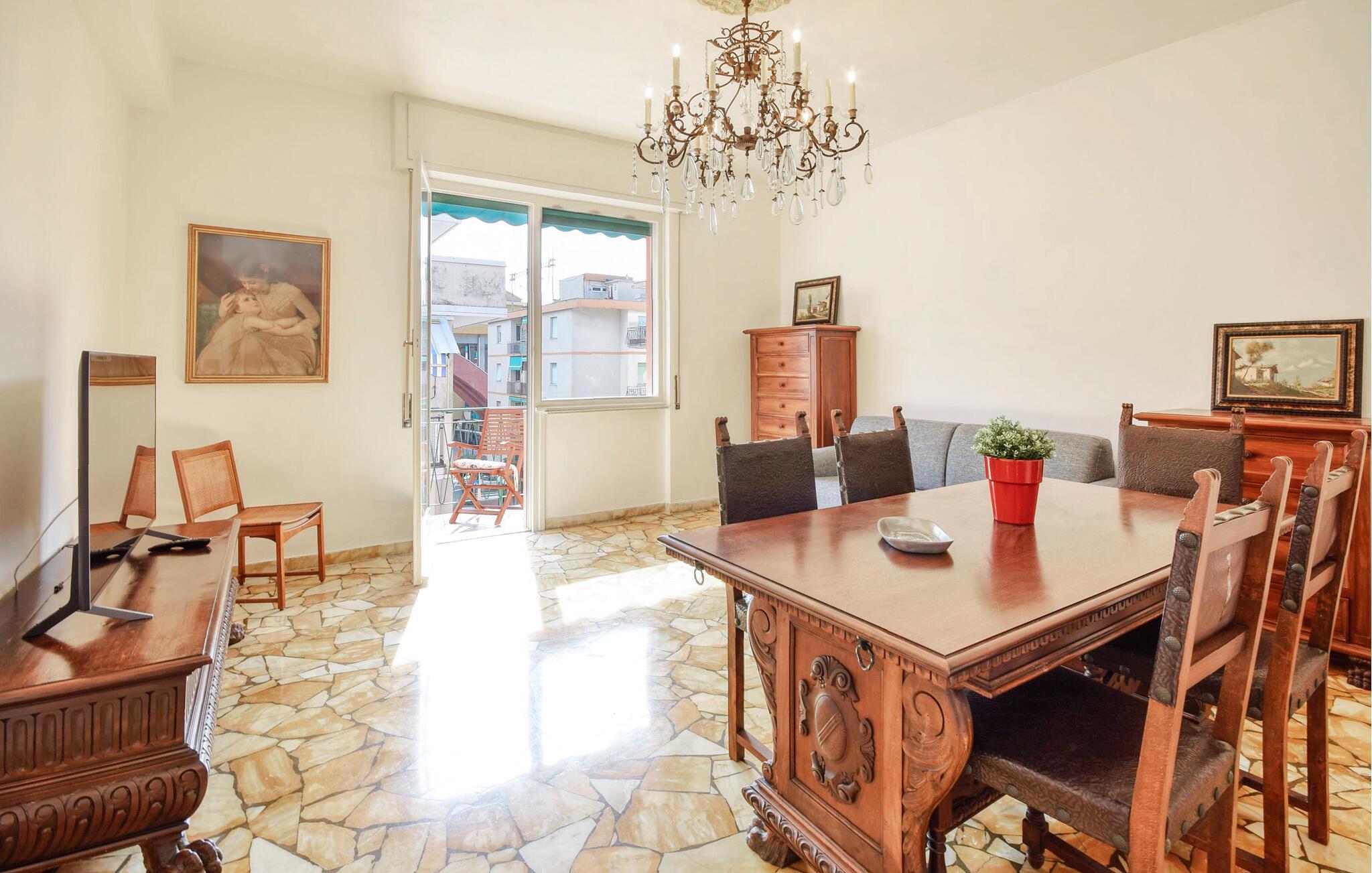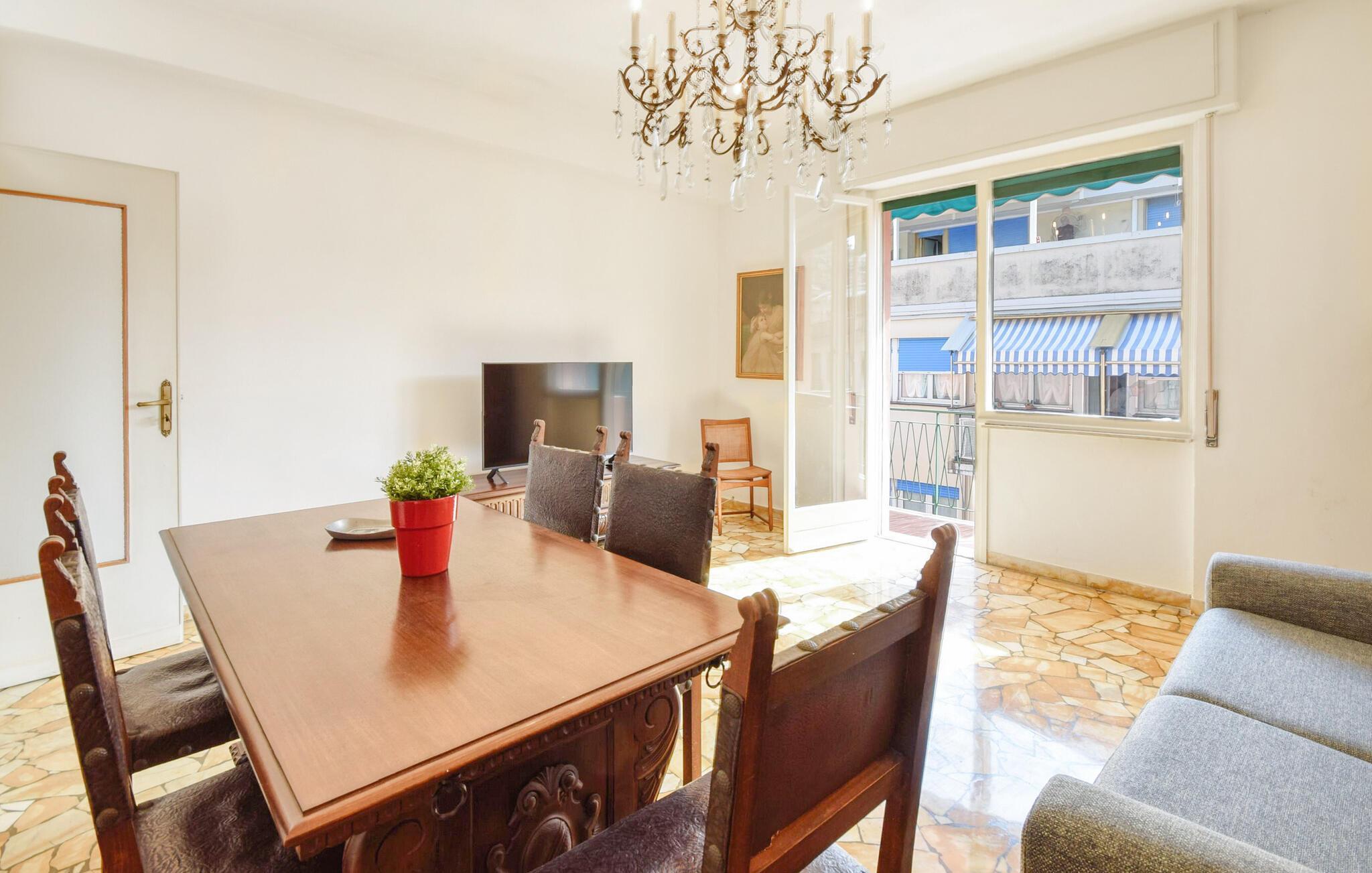 Bare en kort gåtur fra sandstranden og i gåafstand fra alle byens faciliteter byder denne rummelige ferielejlighed jer velkommen med en lys atmosfære og klassiske møbler. Fremstil lækre pastaretter i det vintage-køkken, og planlæg jeres aktiviteter over afslappede måltider. Efter en begivenhedsrig dag kan I slappe af på sofaen og streame en film.