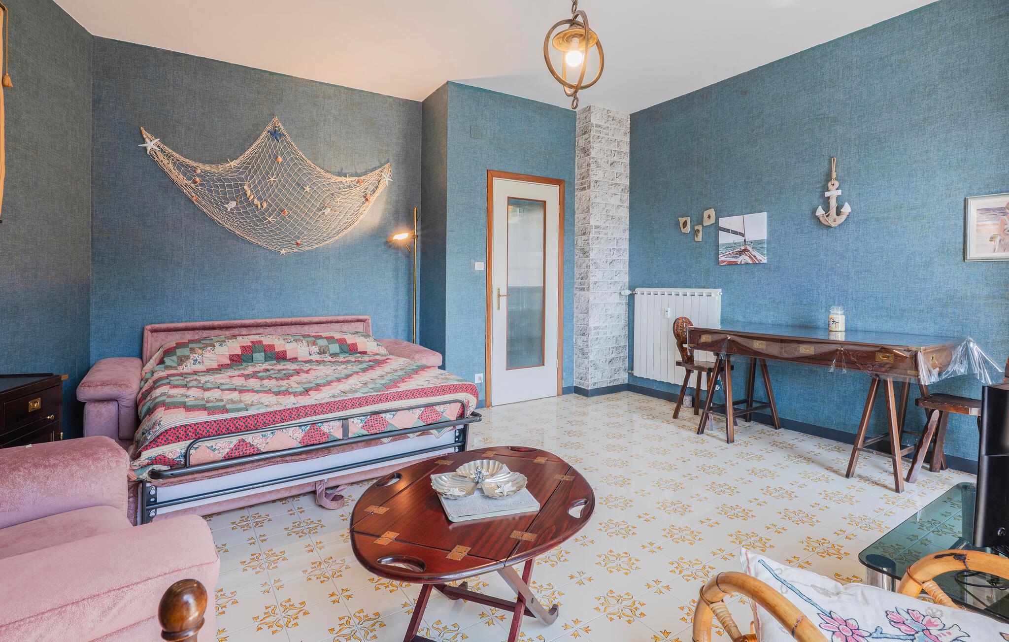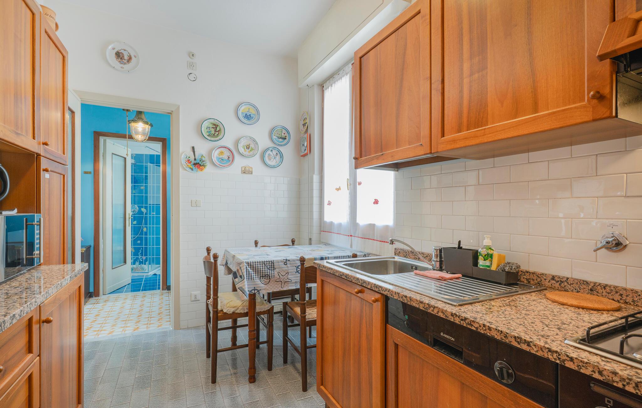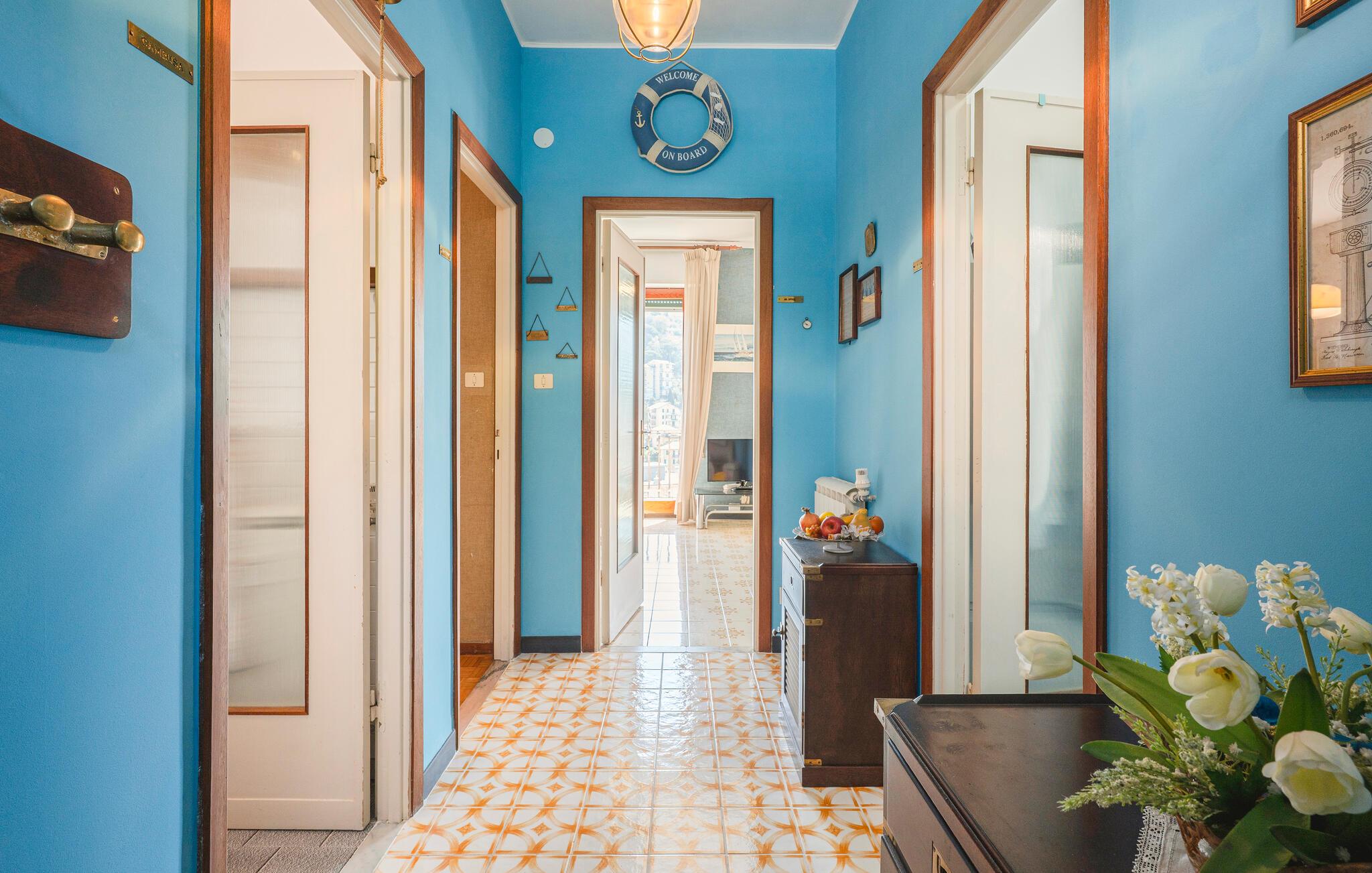 Denne lyse og rummelige ferielejlighed byder jer velkommen med en fantastisk beliggenhed mellem hav og bjerge. Nyd den skønne udsigt over Recco helt ud til havet gennem gulv til loft-vinduerne, perfekt til at starte dagen roligt eller til at opleve solnedgangen om aftenen. Tilbered lækre retter med friske råvarer fra markedet, planlæg jeres udflugter ved afslappede måltider, og læn jer tilbage på sofaen om aftenen, hvor I kan streame jeres yndlingsserie.