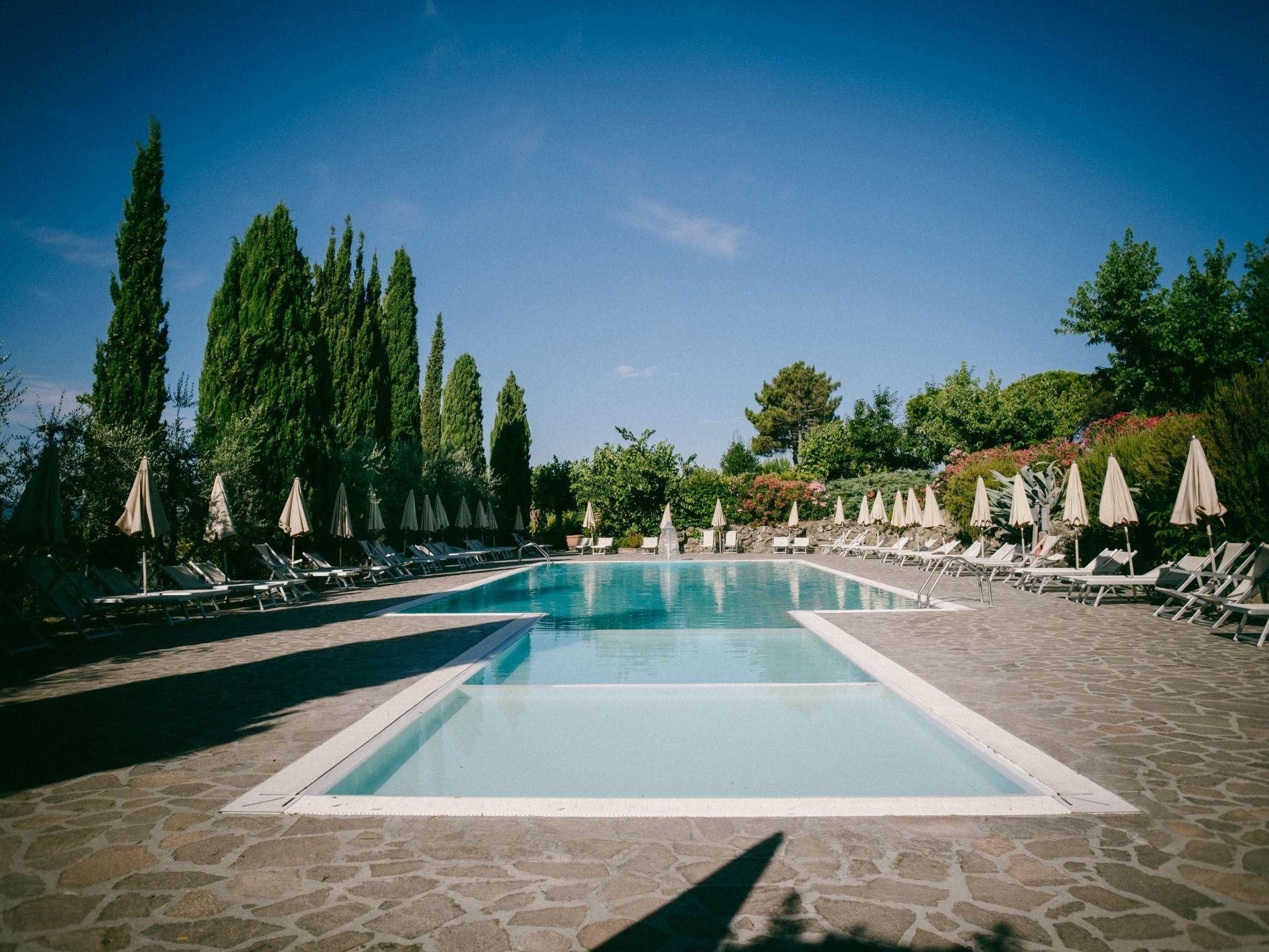 The property consists of 43 comfortable flats and offers numerous amenities and entertainment options for guests. These include a large garden, a swimming pool (approx. 20 x 8 m, open from April to October), a children's pool, a barbecue, a riding school, a tennis court, a children's playground, a table tennis table, a billiard table, a laundry room, bicycles, wine and oil tasting'oliva e un ristorante.