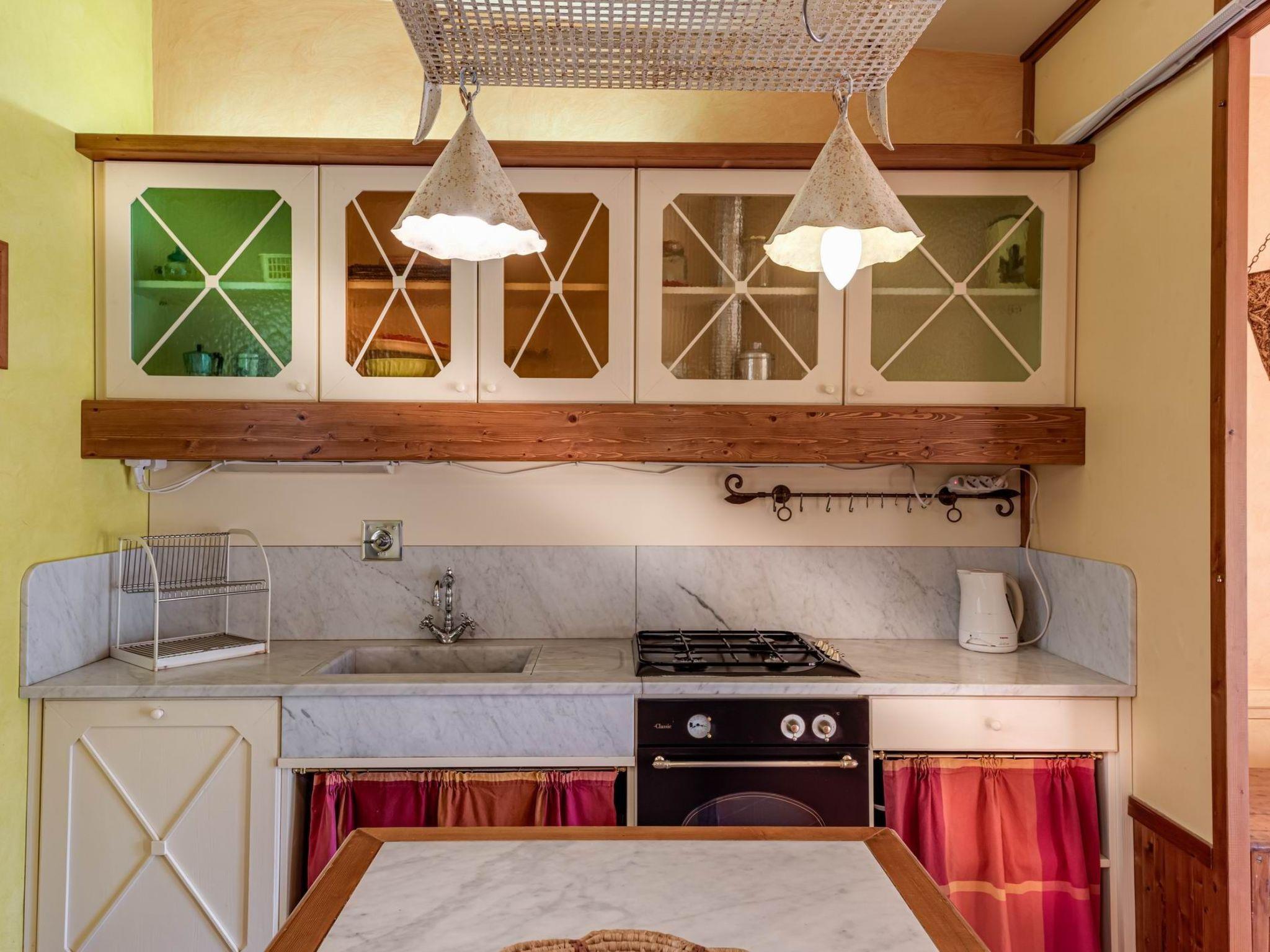 Next to the pool is the dependance, a small flat with living room, kitchenette, dining area, a double bedroom, a twin bedroom and a bathroom with shower.