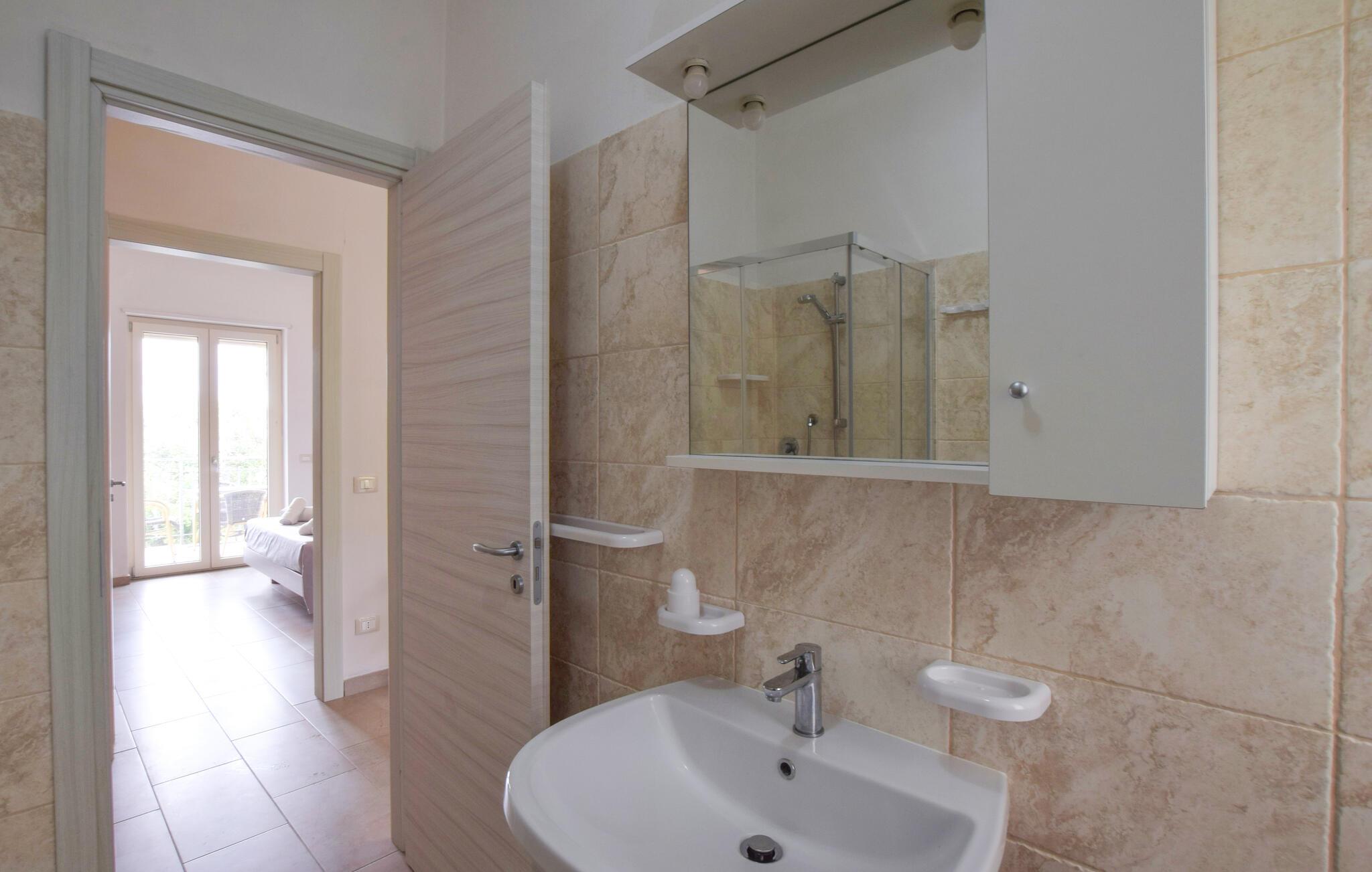 Solskinsdage venter jer som par eller en lille familie i denne lyse og praktisk indrettede ferielejlighed. Planlæg jeres aktiviteter med lækre pastaretter ved det indbydende spisebord, forkæl jer selv med en afslappende siesta, mens en behagelig brise blæser gennem værelserne, og glæd jer til afslappende spilleaftener eller stille læsetimer.