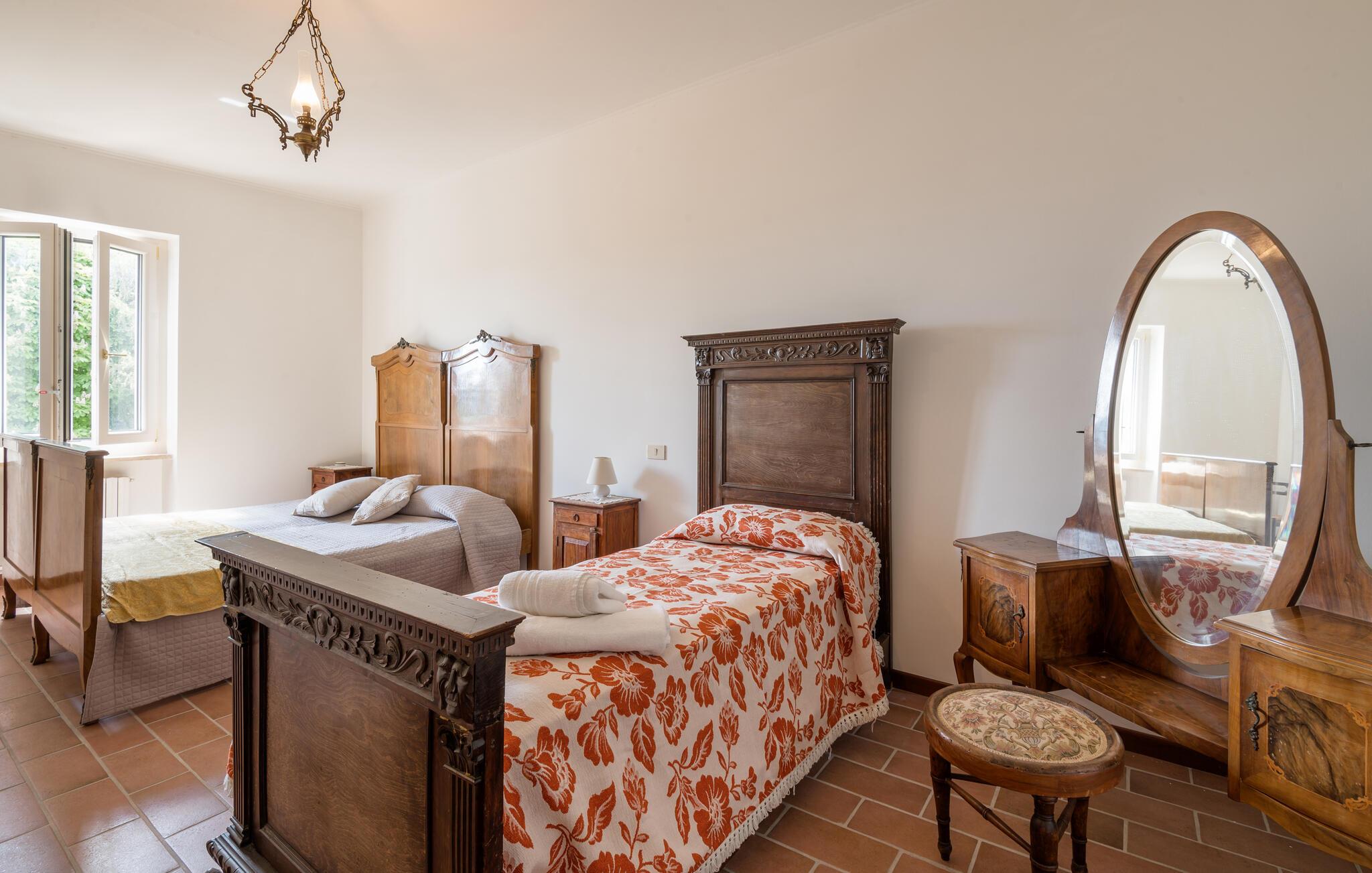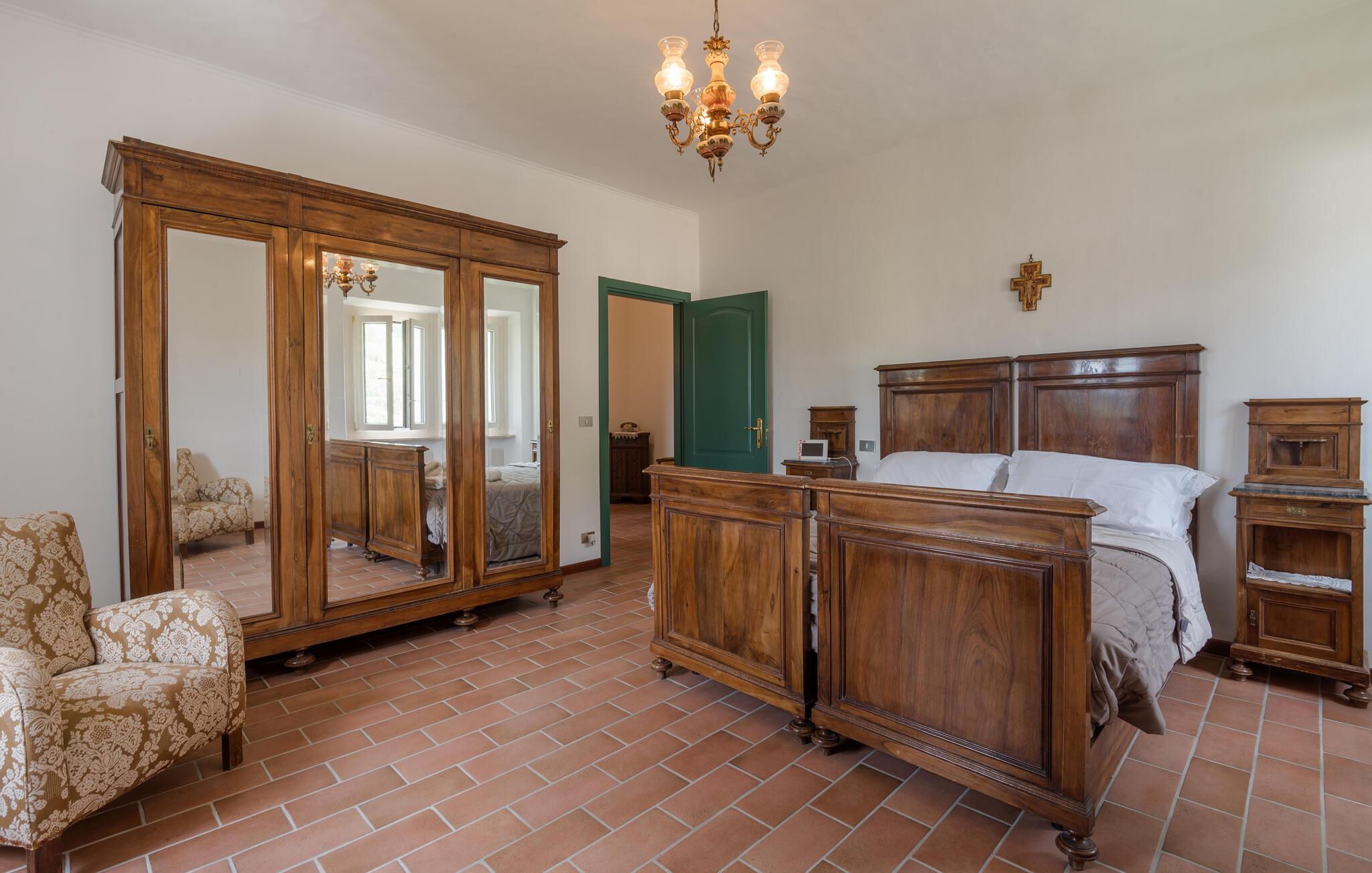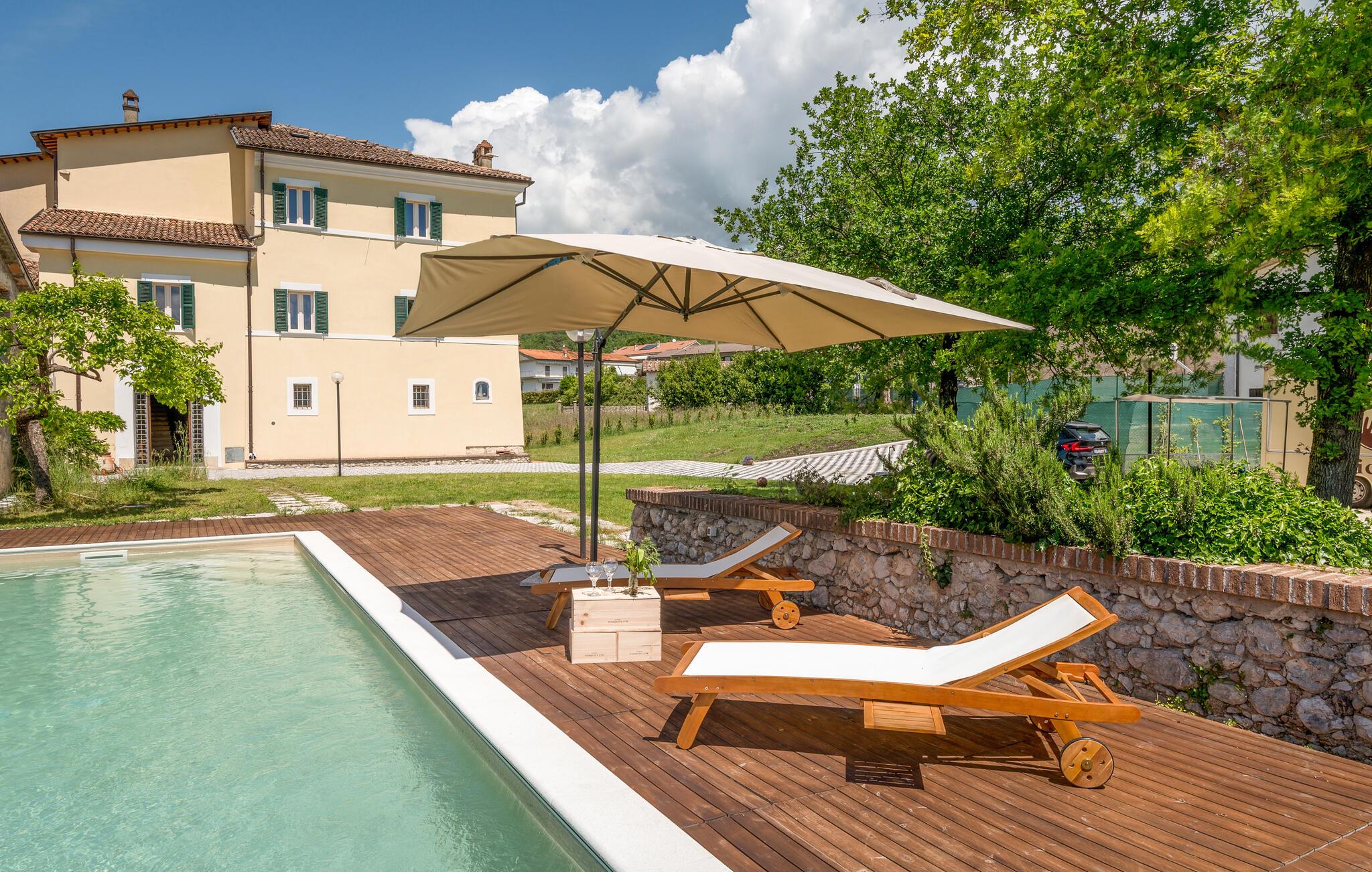 Her er I placeret i de smukke bakker i det centrale Italien, som giver jer et ideelt udgangspunkt til at opleve regionen. I bor fredeligt og roligt, væk fra de travle turistskarer på kysten, og I kan tage afsted i roligt tempo for at lære det "rigtige" Italien at kende. Udsigten fejer herfra til de omkringliggende, stille bakker, hvor I kan opleve skove, landbrug og typiske småbyer på udflugter. Sørg for at besøge Rieti, omkring 7 km væk, og den naturskønne region omkring Riserva Naturale Monte Navegna e Monte Cervia med søer, vandrestier og udsigtspunkter.