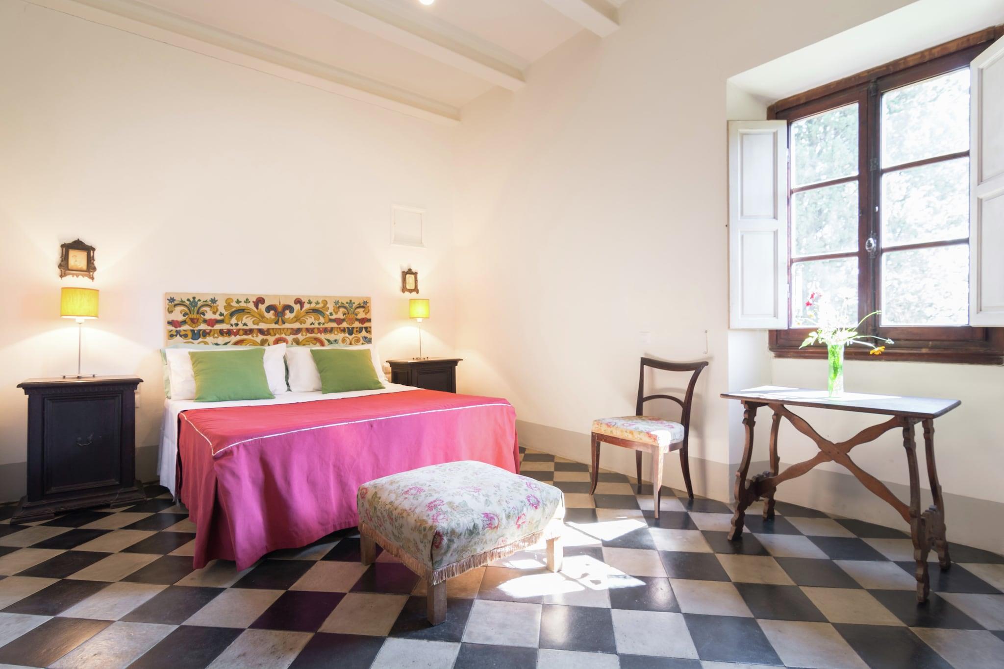Hvis du ønsker at tilbringe lidt tid i Toscana på den bedst mulige måde og opleve følelsen af at høre i dette smukke sted, er ingen andre gæster rundt, historiske Villa (tidlige 1700-tallet) stedet at være. Huset ligger højt på en bakke i den landlige Arno-dalen, og selvom det kun er 24 km fra Firenzes historiske centrum, har det udsigt over det omkringliggende toscanske landskab. Villaen er indrettet i tre etager og rummer op til 14 personer charme og komfort. De velholdte haver med udsigt over de rullende toscanske bakker tilbyder en oase af fred og ro. Der er en spiseplads og solterrasse, stor swimmingpool, hængekøjer til dem, der foretrækker skyggen, en fortryllende frugthave og grøntsagshave. dem der kan lide at shoppe, vil de gerne finde den berømte high-fashion luksus outlet "The Mall" på kun 3 km fra huset! Ideelt miljø til en cykelferie! På stedet cykeludlejning / assistance muligt.