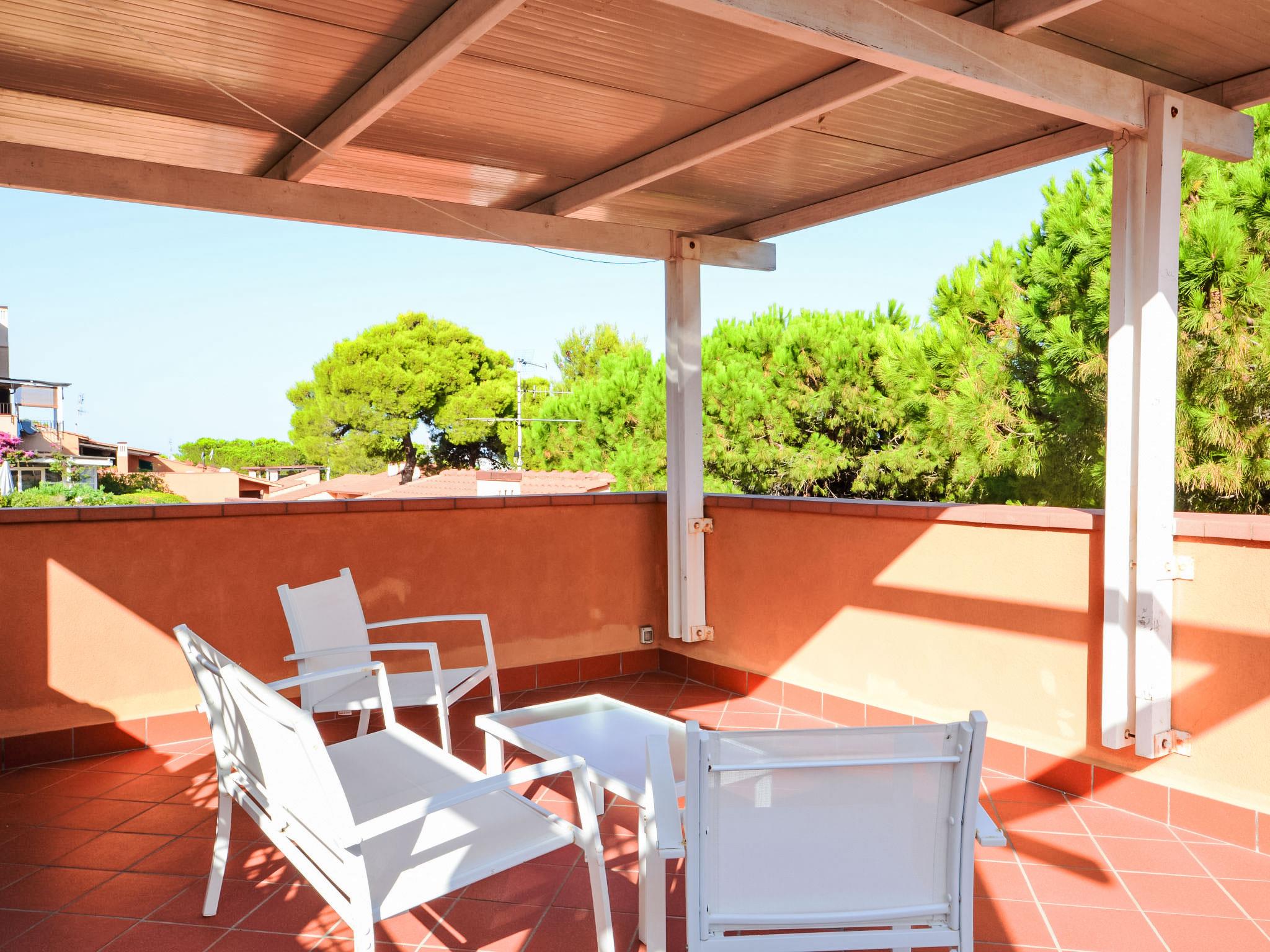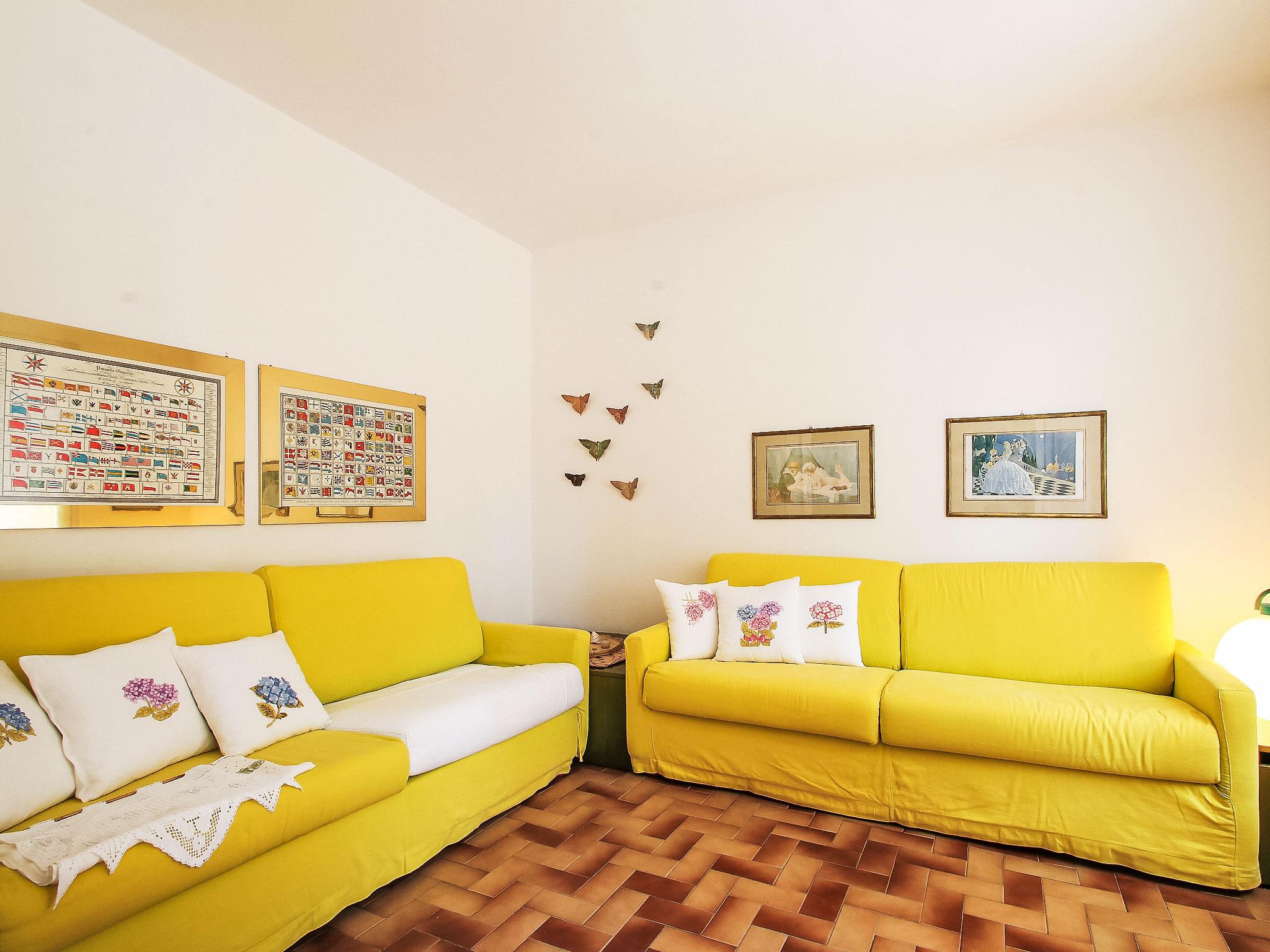"Al Pino 60", 2-room apartment 45 m2, on the upper ground floor. Simple furnishings: living room with 1 double sofabed, dining table, TV and air conditioning. Exit to the balcony, to the terrace. 1 room with 2 beds and 1 pull-out bed. Kitchenette (4 hot plates, dishwasher). Shower/bidet/WC. Small balcony, large terrace. Terrace furniture, deck chairs, sitting area. Partial view of the sea. Facilities: washing machine. Internet (WiFi, free). Parking (1 car). Please note: private entrance. IT049021C29E98HUME
