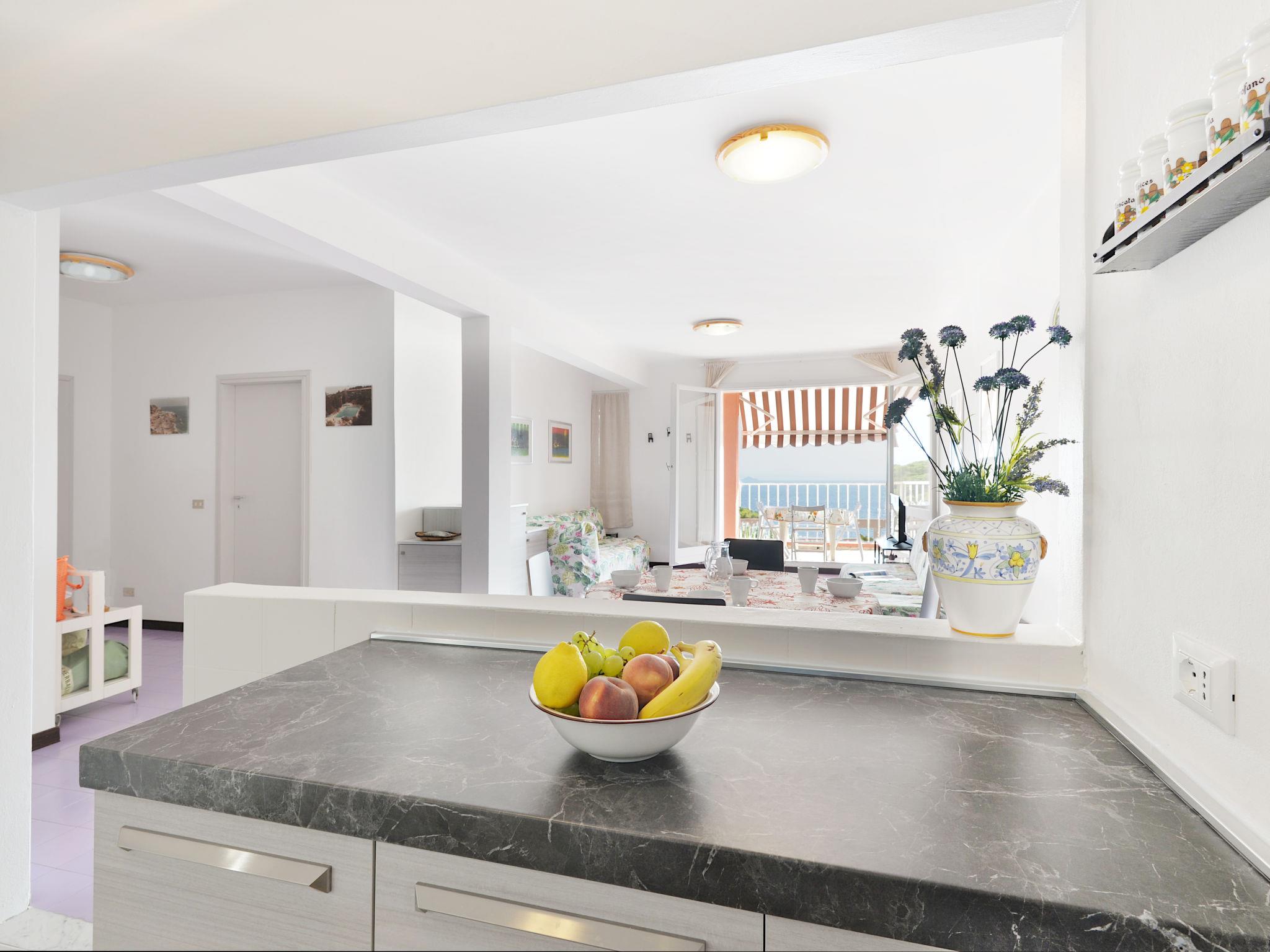 "Mimose 2", 4-room apartment 100 m2 on 1st floor. Spacious and bright, comfortable furnishings: living room with dining table and TV. Exit to the terrace. 1 double bedroom with fan. Exit to the balcony. 1 room with 1 bed, 1 pull-out bed and fan. Exit to the balcony. 1 room with 2 beds and fan. Exit to the terrace. Open kitchen (mini-oven, dishwasher, 4 induction hot plates, kettle). Bathroom, shower/bidet/WC. No heating option. Balcony, terrace roofed. Terrace furniture. Marvellous view of the sea. Facilities: washing machine, baby cot for up to 2 year olds, hair dryer. Parking at 70 m. Please note: non-smoking house. No mandatory extra charges to be paid on-site. IT049021C2H6WAVJZG