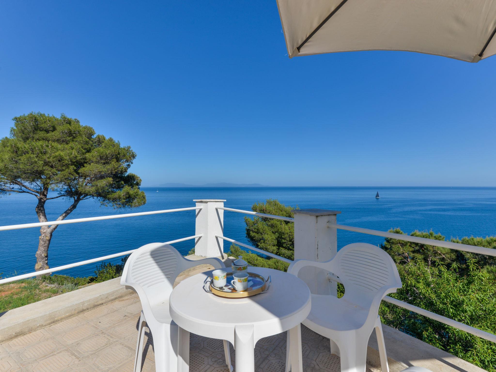 2-room semi-detached house 30 m2. Object suitable for 3 adults + 1 child. Simple and practical furnishings: living/sleeping room with 1 double sofabed (140 cm), dining table, satellite TV and air conditioning. Exit to the terrace. 1 room with 1 french bed (140 cm). Kitchenette (oven, 4 gas rings). Shower/bidet/WC. Electric heating. Large terrace 100 m2. Terrace furniture, barbecue, deck chairs. Marvellous panoramic view of the sea and Giglio. Facilities: washing machine. Please note: not suitable for small children. Non-smokers only. Maximum 2 pets/ dogs allowed. No mandatory extra charges to be paid on-site. IT049021C2KSZSB63K
