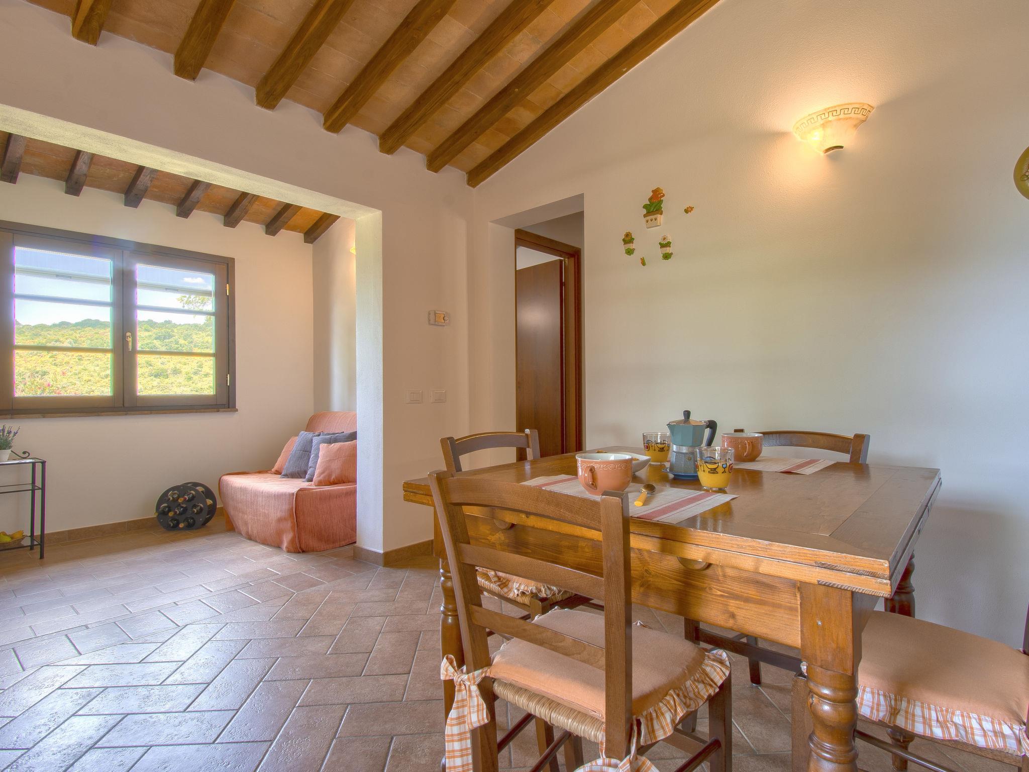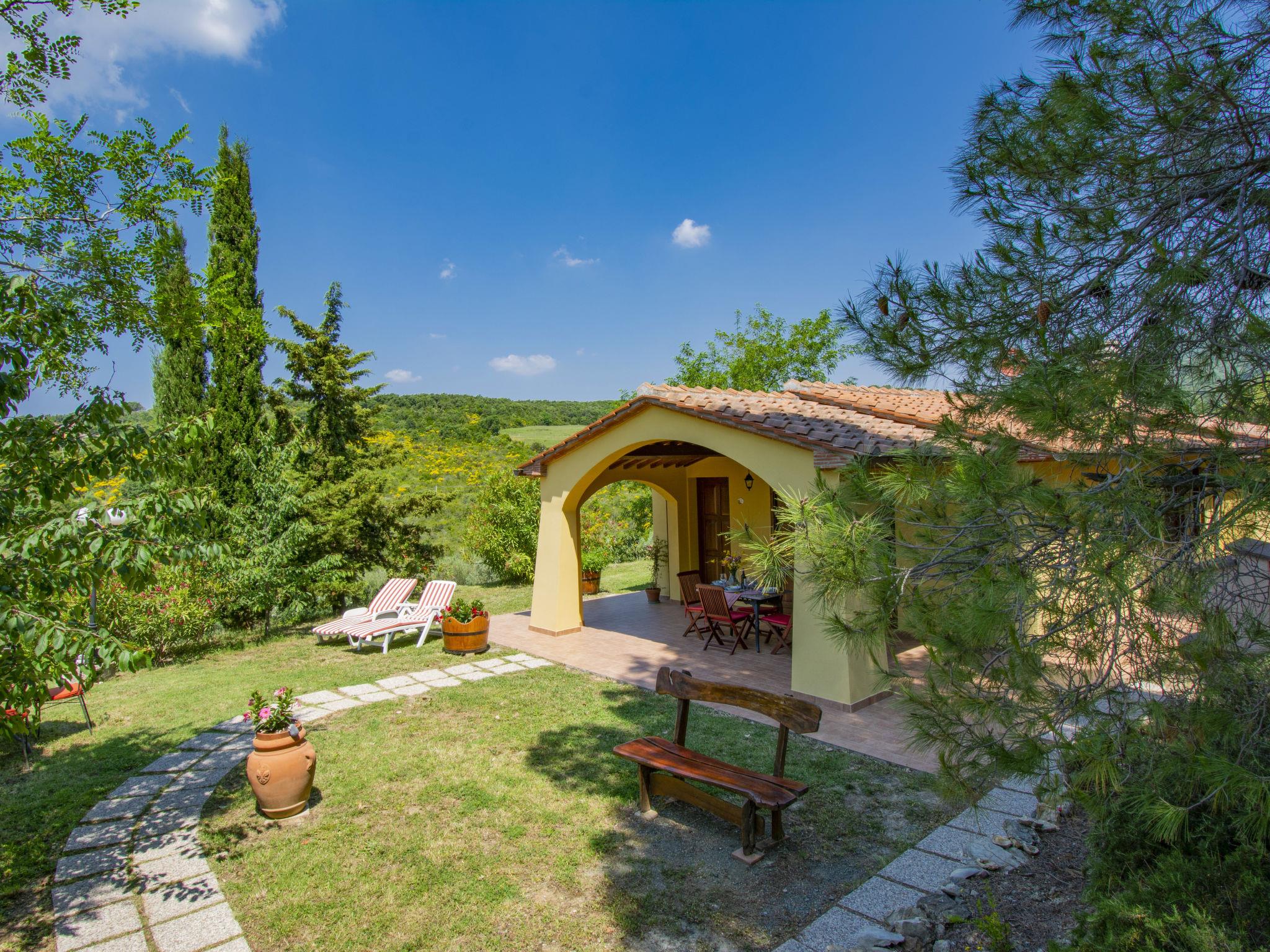 Beautiful house "Elisa", detached, built in 2008, surrounded by trees, meadows and fields. In the district of Sorbugnano 4.2 km from the centre of Riparbella, 12 km from the centre of Cecina, in a secluded, quiet, sunny position on a slope, 14 km from the sea, in the countryside. Private: property 1'000 m2 (fenced), wildlife garden and trees, meadow. Terrace, garden furniture, barbecue. 1.5 km long motor access (1.5 km via unmade road). Parking (for 2 cars) on the premises. Shop 4.2 km, supermarket 12 km, bus stop 3 km, railway station "Cecina" 12 km, sandy beach 14 km.