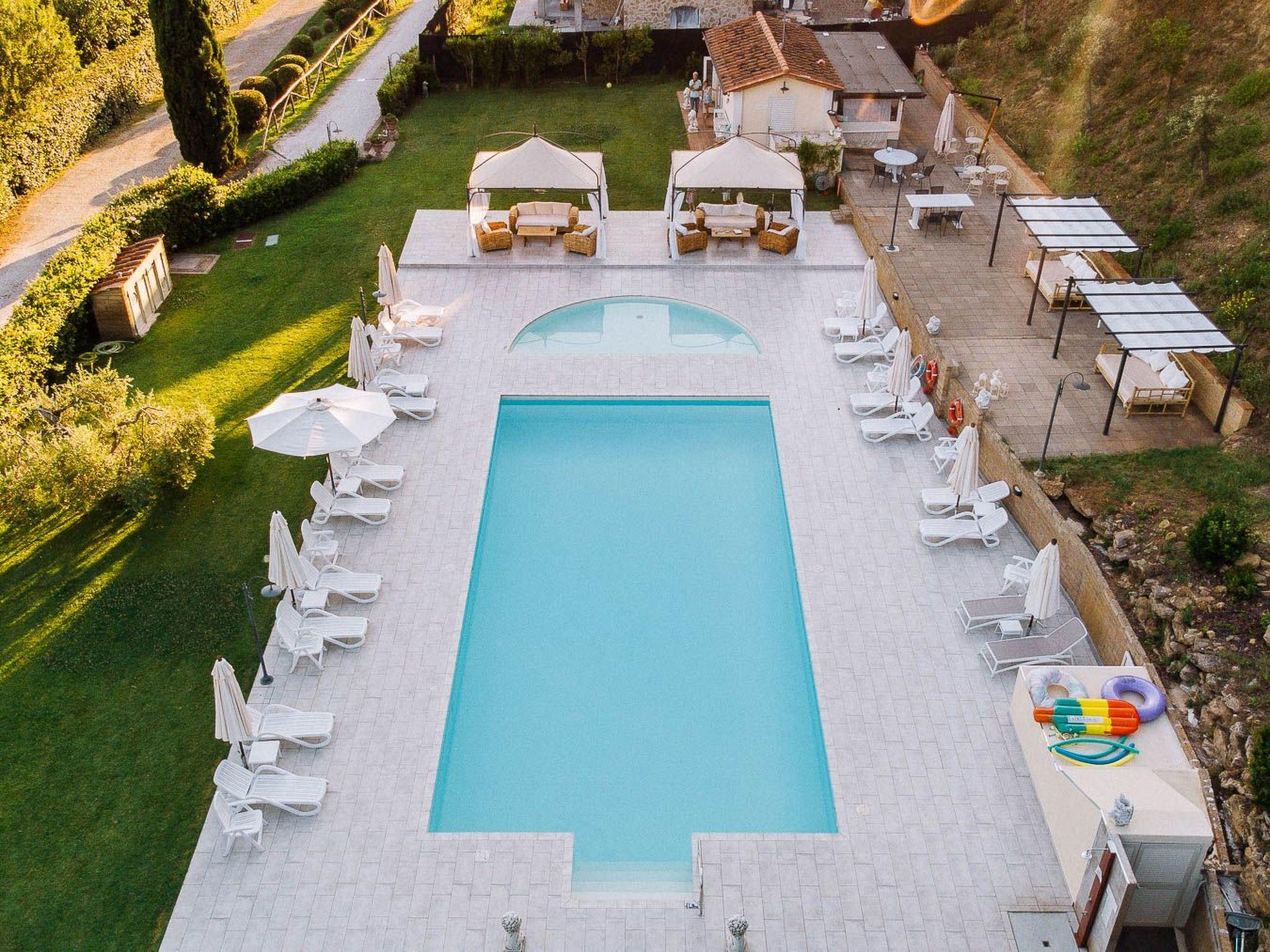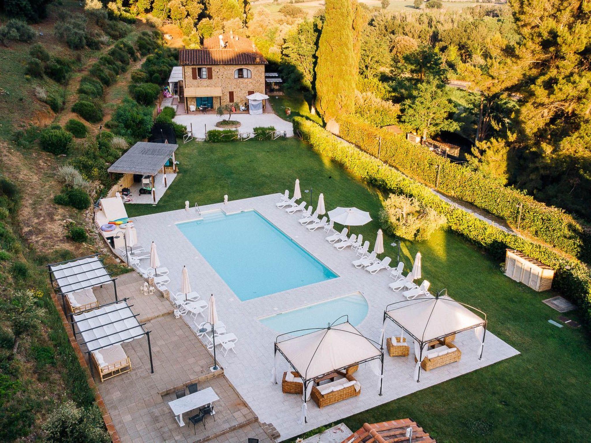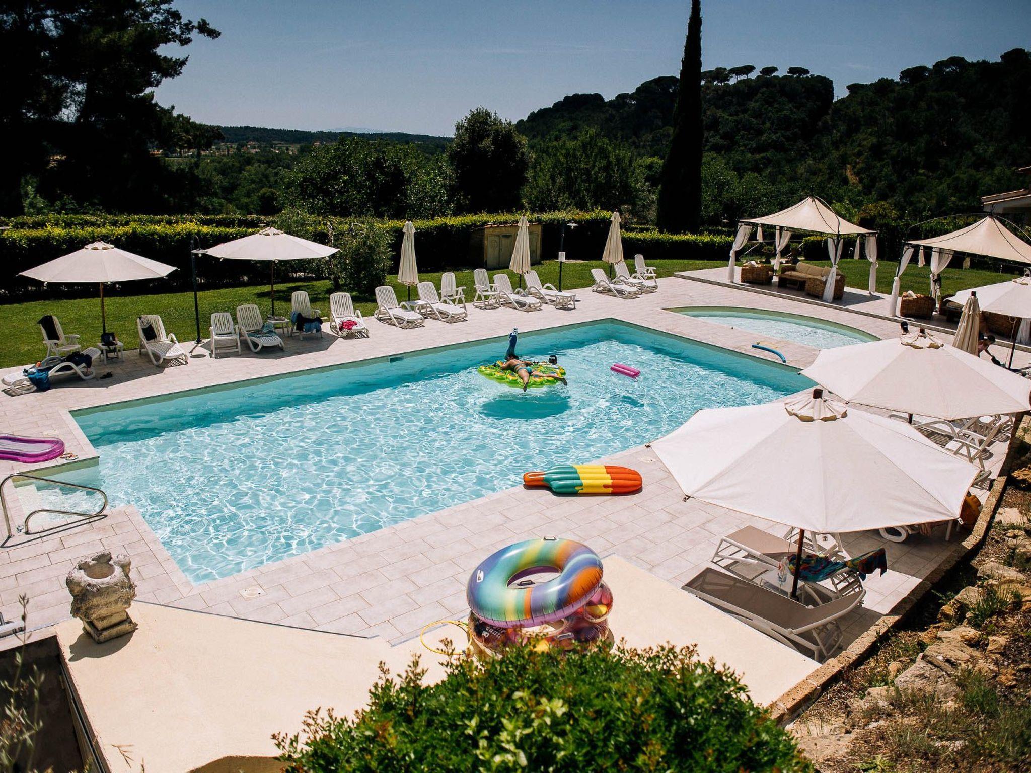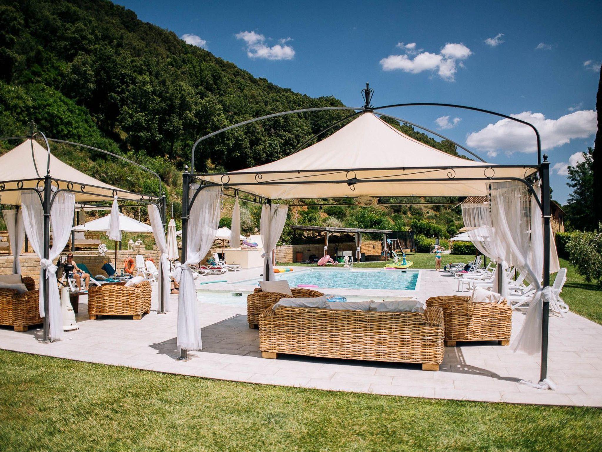gazebos, tables, outdoor chairs, barbecue, various games, swimming pool for adults 7x14 m deep 1.50 m children's pool