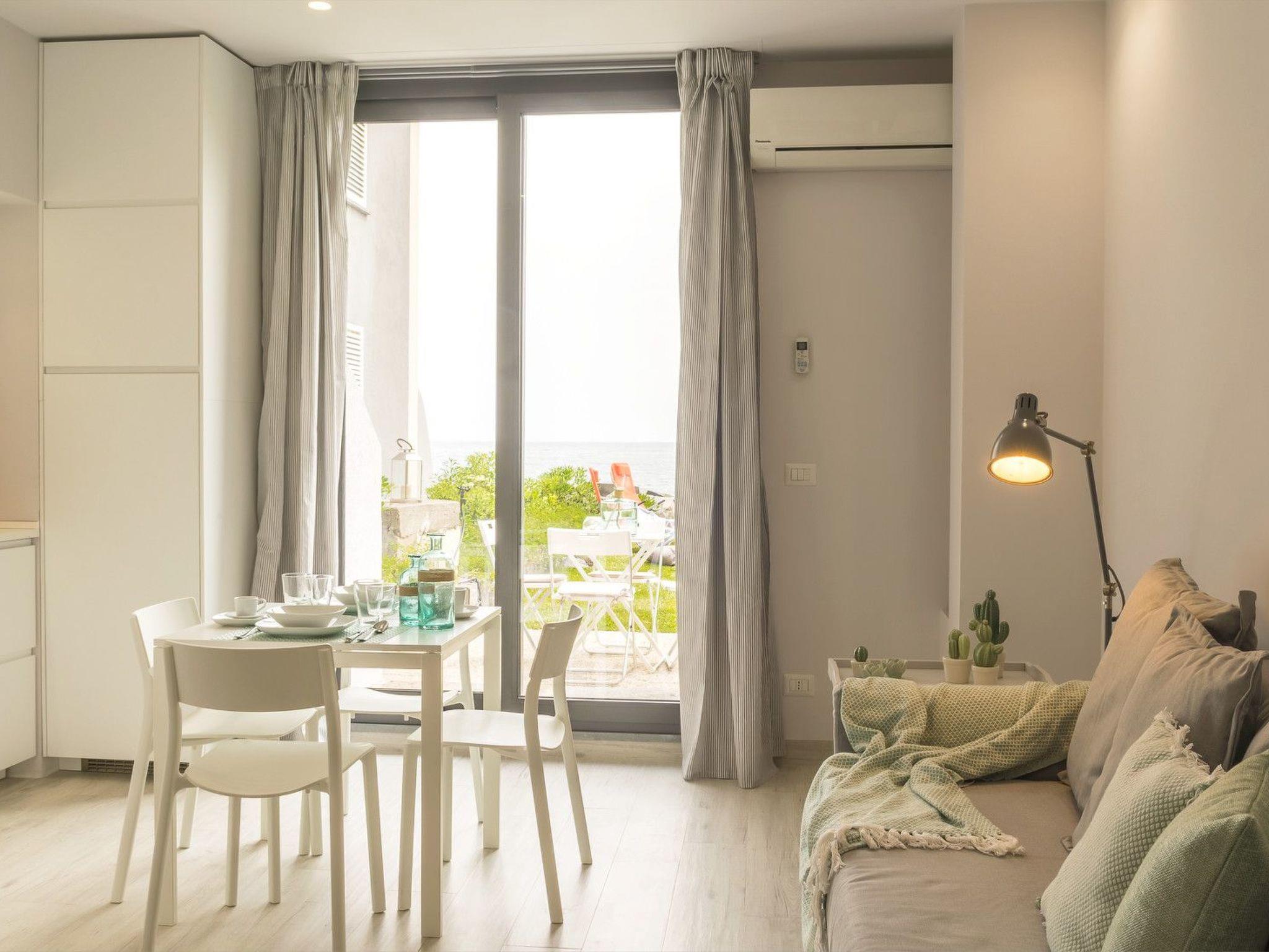 Les Suites is a flat that overlooks the wonderful sea of Riposto, an ancient seaside resort and home to the Etna Tourist Port. It is a wonderful two-room apartment that has recently been renovated with a modern, bright design. It consists of a double bedroom, sea-view living room with kitchen, dining area and a very comfortable double sofa bed, a large bathroom and a small terrace with an adjoining garden from which there is direct access to the sea.