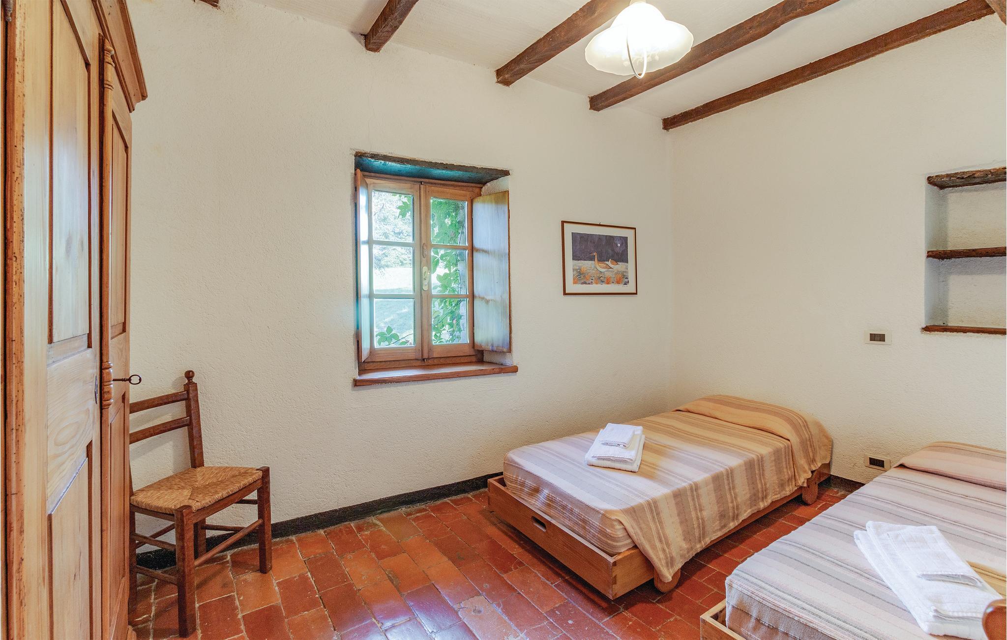 Et yderst attraktivt kompleks med tre traditionelle landhuse beliggende i Ghirardi Regional Nature Reserve og WWF Oasis. Komplekset udlejes samlet, men hvert af de tre huse er selvstændigt, hvilket betyder, at det har eget badeværelse og køkken (hvilket giver en vis grad af privatliv). Plads til 12 personer. Stor overdækket terrasse med indbygget grill. Brændeovn. Opvaskemaskine og vaskemaskine. Tre overdækkede parkeringspladser. Ghirardi Nature Reserve ligger i en højde af 600-700 meter, beliggende i Appenninerne mellem regionerne Toscana, Ligurien og Emilia-Romagna. Skønheden i dette 600 hektar store reservat med dets bakker, skove og marker er betagende. Ghirardis fred og ro indbyder til vandreture. Dagsture til de omkringliggende bjerge, den liguriske kyst og adskillige byer er også let tilgængelige. Naturreservatet kan nås i bil via en 3-5 km lang grusvej, der er reserveret til gæster og lukket for offentligheden. Kontaktpersonerne kan efter anmodning tilberede kulinariske specialiteter eller levere lokale økologiske produkter (brød, pizza, kager, æg, grøntsager, frugt, vin, olie, marmelade osv.). Se også ITL102-103 (2 km væk).