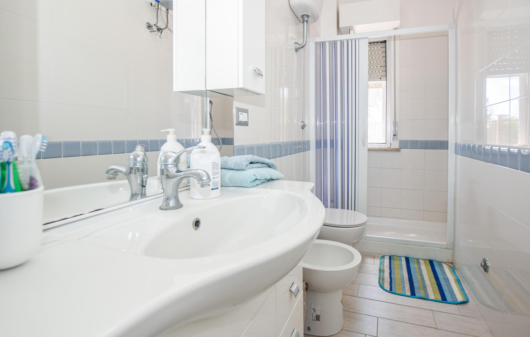 Den charmerende kystregion, hvor jeres feriehus ligger, er kendt for betagende strande og historiske steder, så her får I den optimale kulisse til en uforglemmelig ferie. Begynd dagene roligt med en afslappet morgenmad på den overdækkede terrasse. Senere kan I tage en tur langs den maleriske kystlinje, som begynder tæt på jeres feriehus. Strandene i Riva dei Tarquini bliver jeres faste sted til solbadning, svømmeture og snorkling. Det krystalklare vand lægger op til at udforske undervandsverdenen og få sig en frisk dukkert på varme sommerdage.