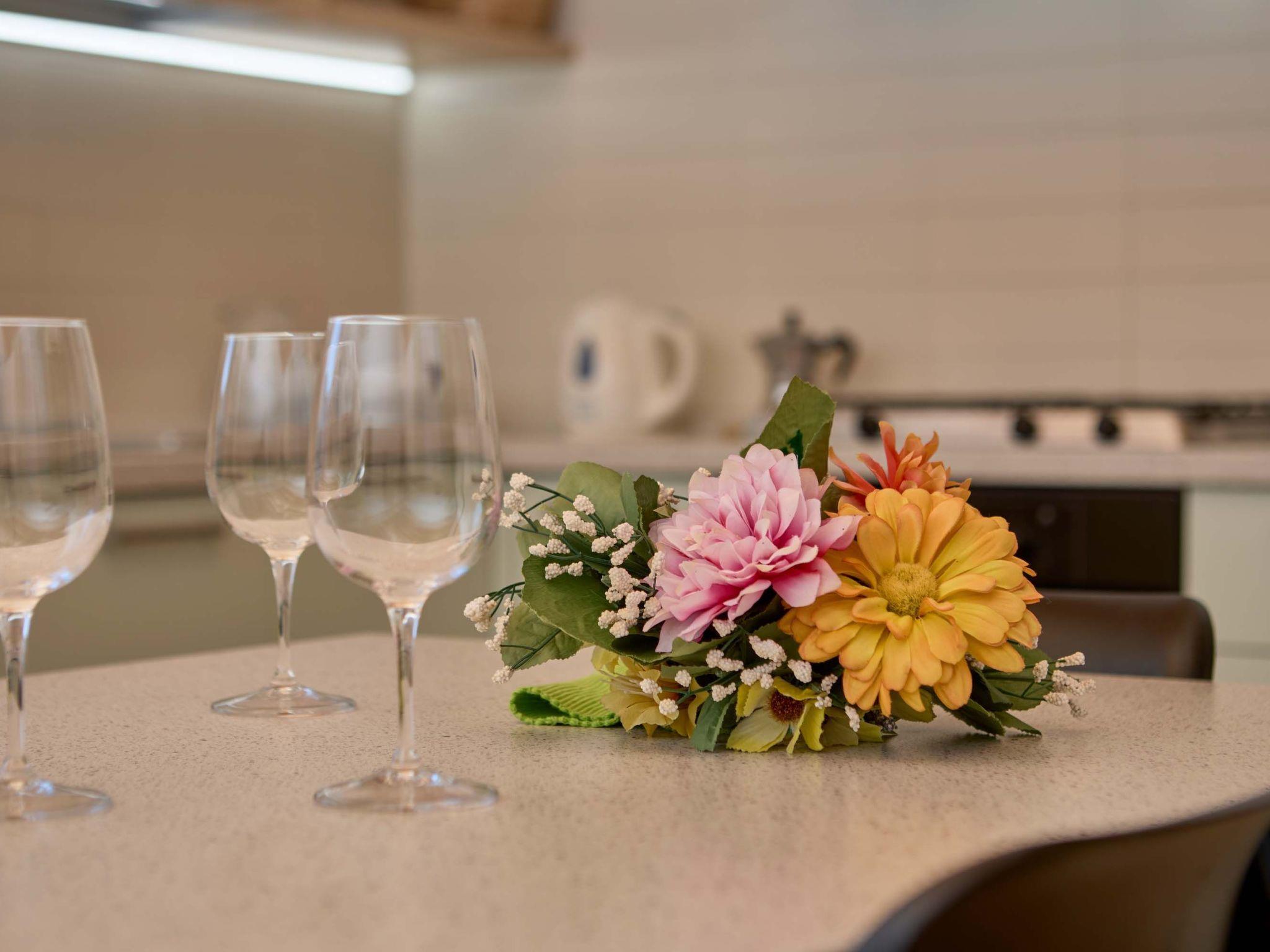 We offer six exclusive flats and one detached villa, all modern, spacious and beautifully furnished to guarantee you maximum comfort and quality. Each accommodation has fast Wi-Fi, Smart-TV, fully equipped kitchen (fridge, freezer, oven, dishwasher) and chip card access. Air conditioning is available on request for a cosy and relaxing stay, ideal for couples, families or friends.