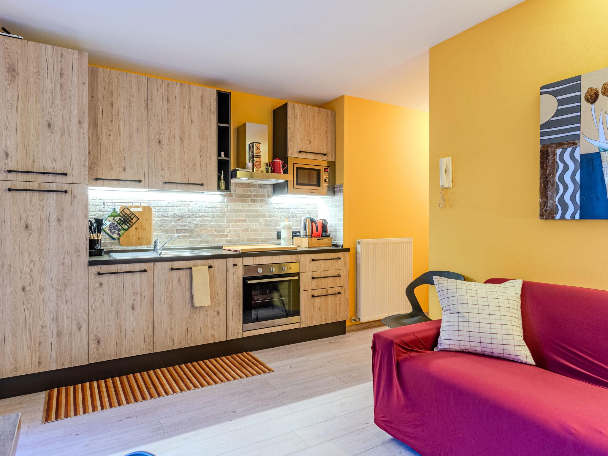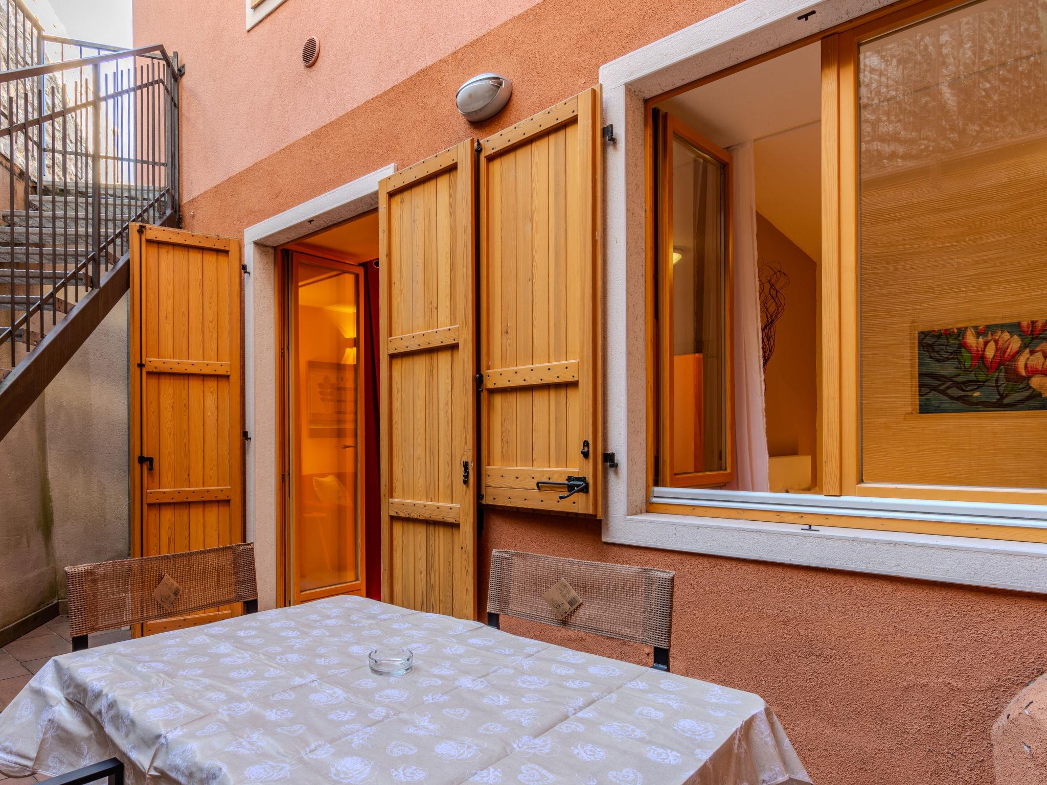 "Welcome 2 Riva", 2-room apartment 50 m2, on the ground floor, south facing position. Partly renovated in 2026, modern and cosy furnishings: 1 double bedroom with TV. 1 double bedroom. Kitchen-/living room in the entrance (dishwasher, 4 induction hot plates, kettle, microwave, grill, electric coffee machine) with 1 sofabed, dining table and TV. Exit to the patio. Shower/bidet/WC. Heating, air-conditioning, forced-air heating. Small patio. Terrace furniture, sitting area. Partial view of the mountains and the river. Facilities: washing machine, children's high chair, baby cot, hair dryer. Internet (WiFi, free). Parking space n 3 (fenced). Please note: maximum 1 pet/ dog allowed. Private entrance. IT022153C2SDLNH2IV
