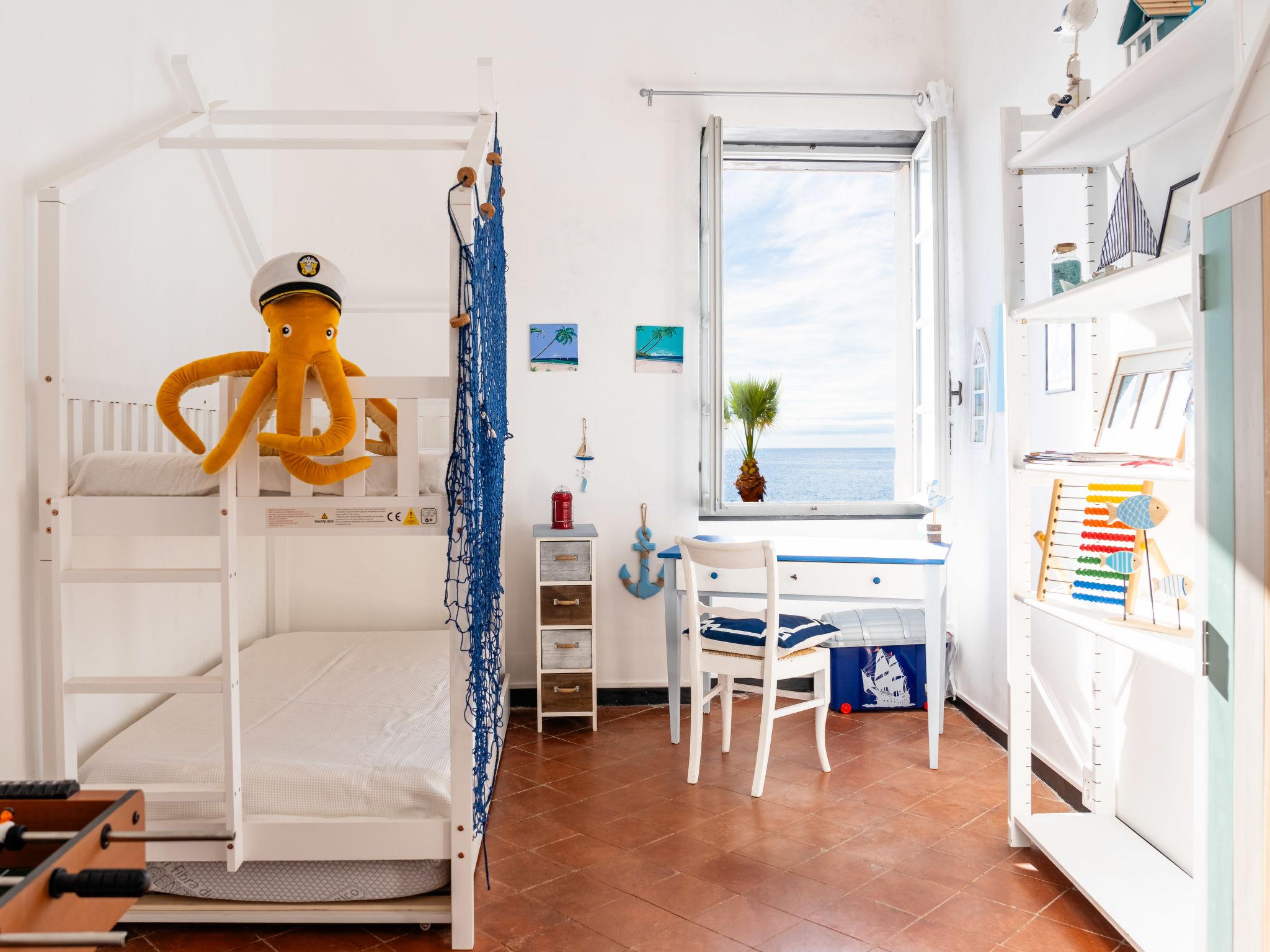 "La Loggia sul mare", 4-room terraced house 180 m2 on 2nd floor. Tasteful furnishings: living/dining room with dining table and TV. 2 double bedrooms. 1 children's room with 1 x 2 bunk beds (80 cm, length 170 cm), 1 pull-out bed (1 pers. 2 x 80 cm, length 170 cm). Kitchenette (mini-oven, Gas stove, 5 gas rings, toaster, kettle, microwave, electric coffee machine). 2 showers/bidet/WC. Gas heating. Heating available only from 01.11. to 15.04. Small balcony, large terrace. Terrace furniture, deck chairs. Very beautiful panoramic view of the sea. Facilities: washing machine, hair dryer. Internet (WiFi, free). Please note: smoke alarm, fire extinguisher. IT008050C23BQQINSY