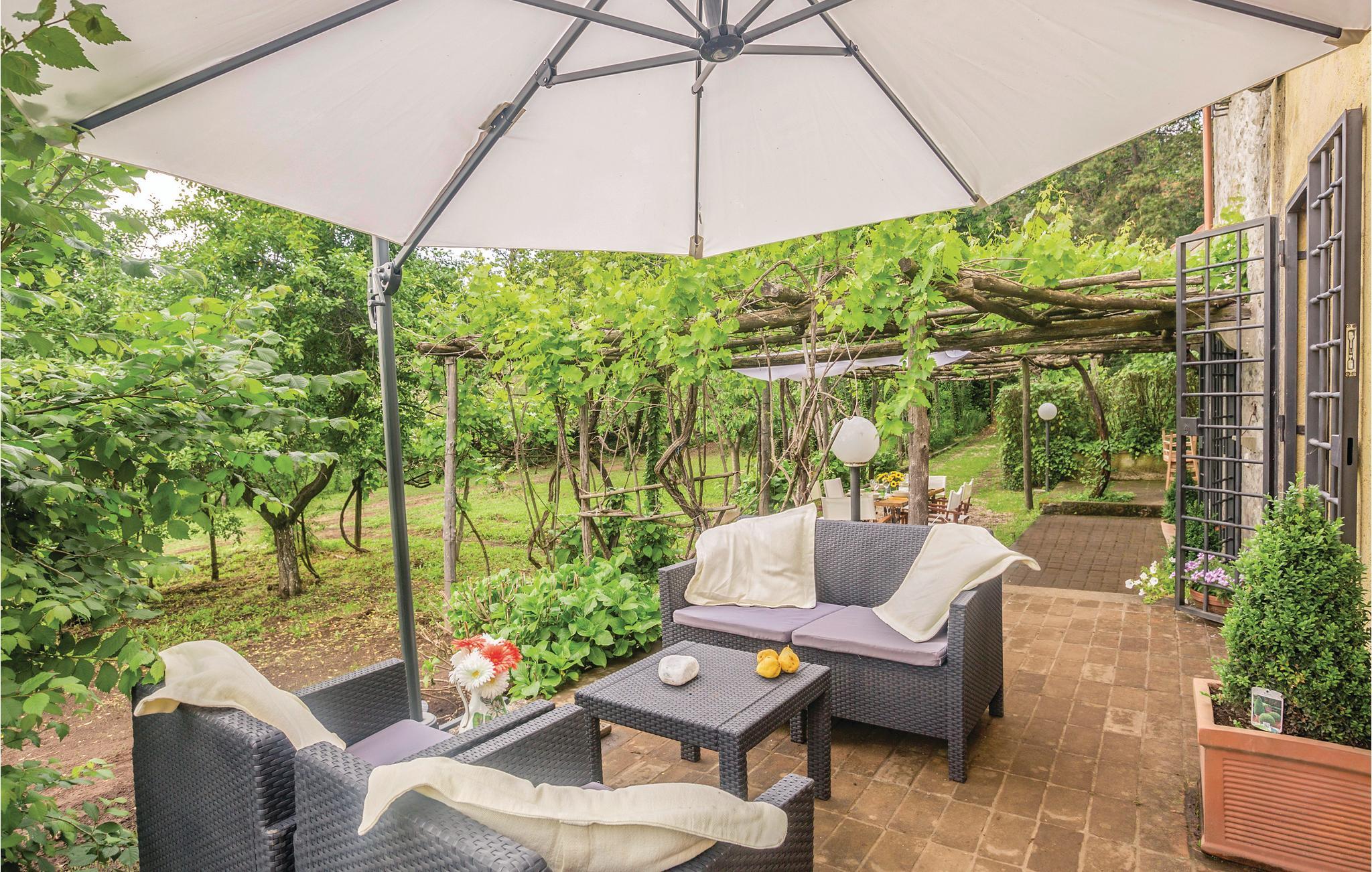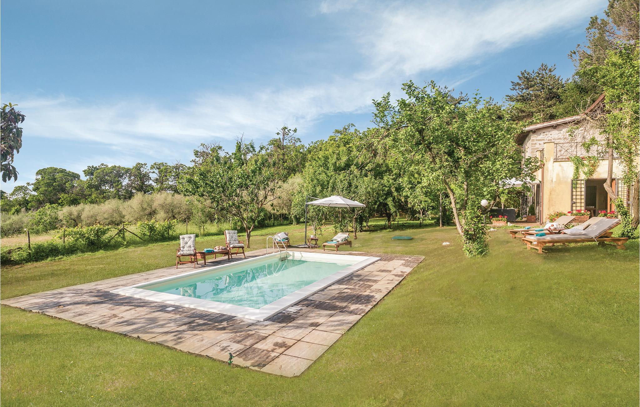 Karakteristisk landhus med privat pool ikke langt fra Rocca di Papa (2,2 km) i hjertet af Castelli Romani. Den helt indhegnede have og dybe skov der omgiver huset, garanteret en høj grad af privatsfære. Der er to området med havemøbler i haven hvor I kan nyde dagens måltider og slappe af, ved poolen er der solstole og parasol, grill og legeplads. Huset er i to etager, er indrettet med god smag, har klimaanlæg overalt og en skøn terrasse på første sal med havemøbler (lille sofa og stol) og panoramaudsigt. Huset ligger rigtig centralt for alle der gerne vil se alle de steder der har gjort Castelli Romani verdensberømt: Frascati 6,5 km, Grottaferrata 3,8 km, Marino 5,3 km, Albano 8,1 km, Rocca di Papa 2,2 km, Castel Gandolfo 7,4 km og Genzano di Roma 8,4 km er blot få eksempler. Der er ca. 8 km til Albanosøen, 12,2 km til Nemisøen og 38 km til de skønne sandstrande ved havet. Der er 28 km til Rom, kør til banegården i Frascati eller Albano parker, og tag så toget videre til Rom. Acque Abule di Bagni di Tivoli (kurbadn) ligger på Via Tiburtina 35,5 km.