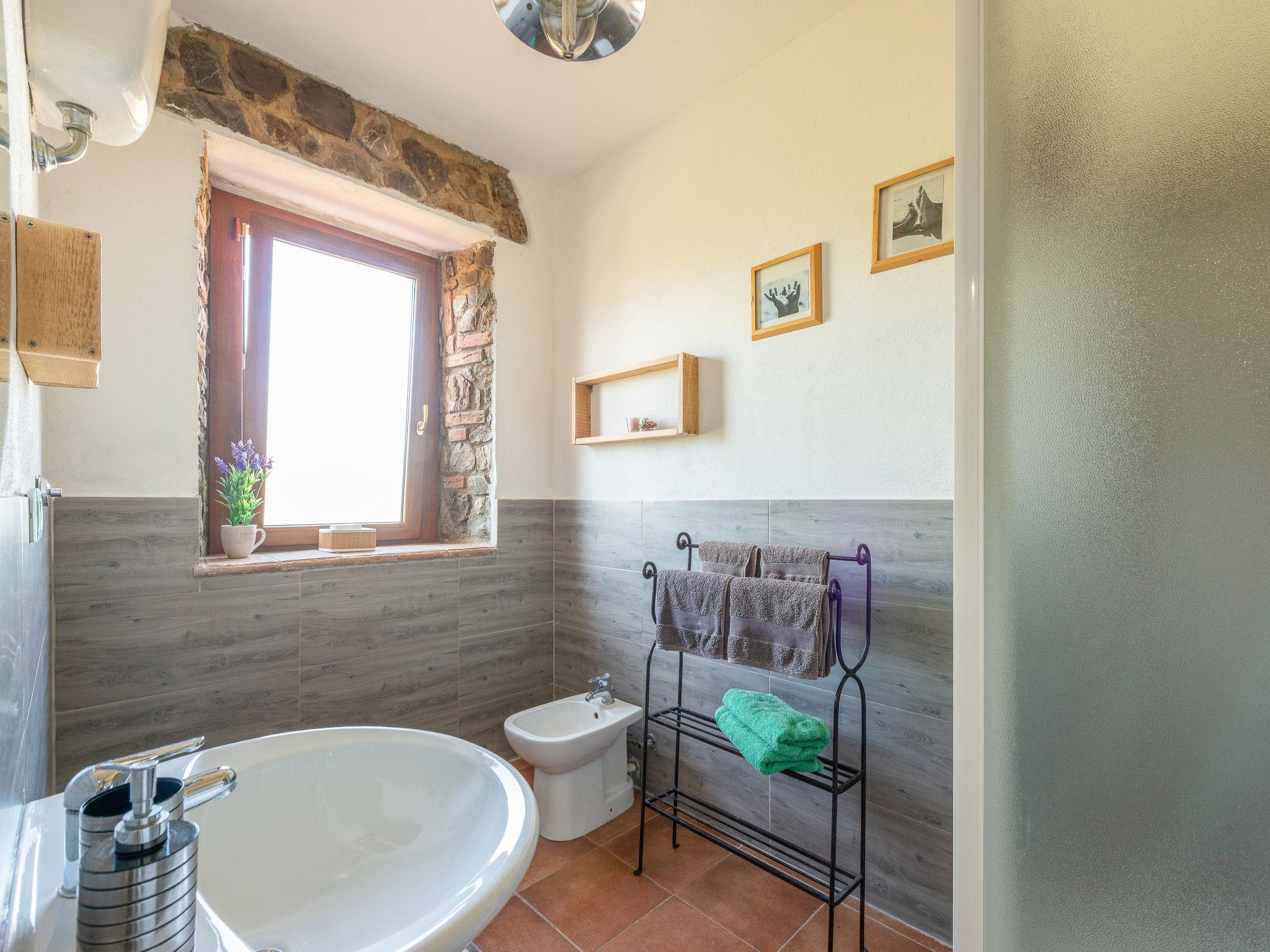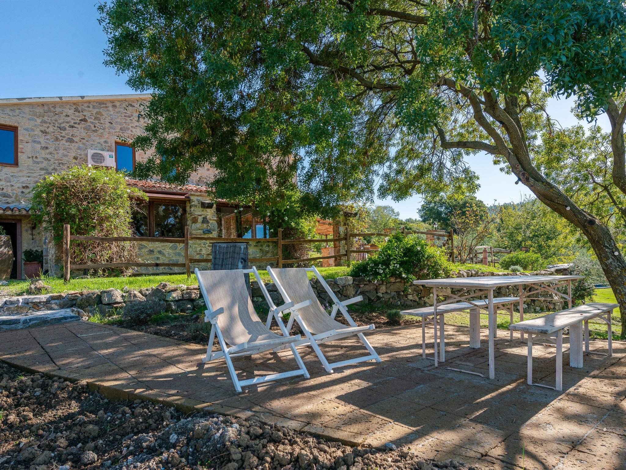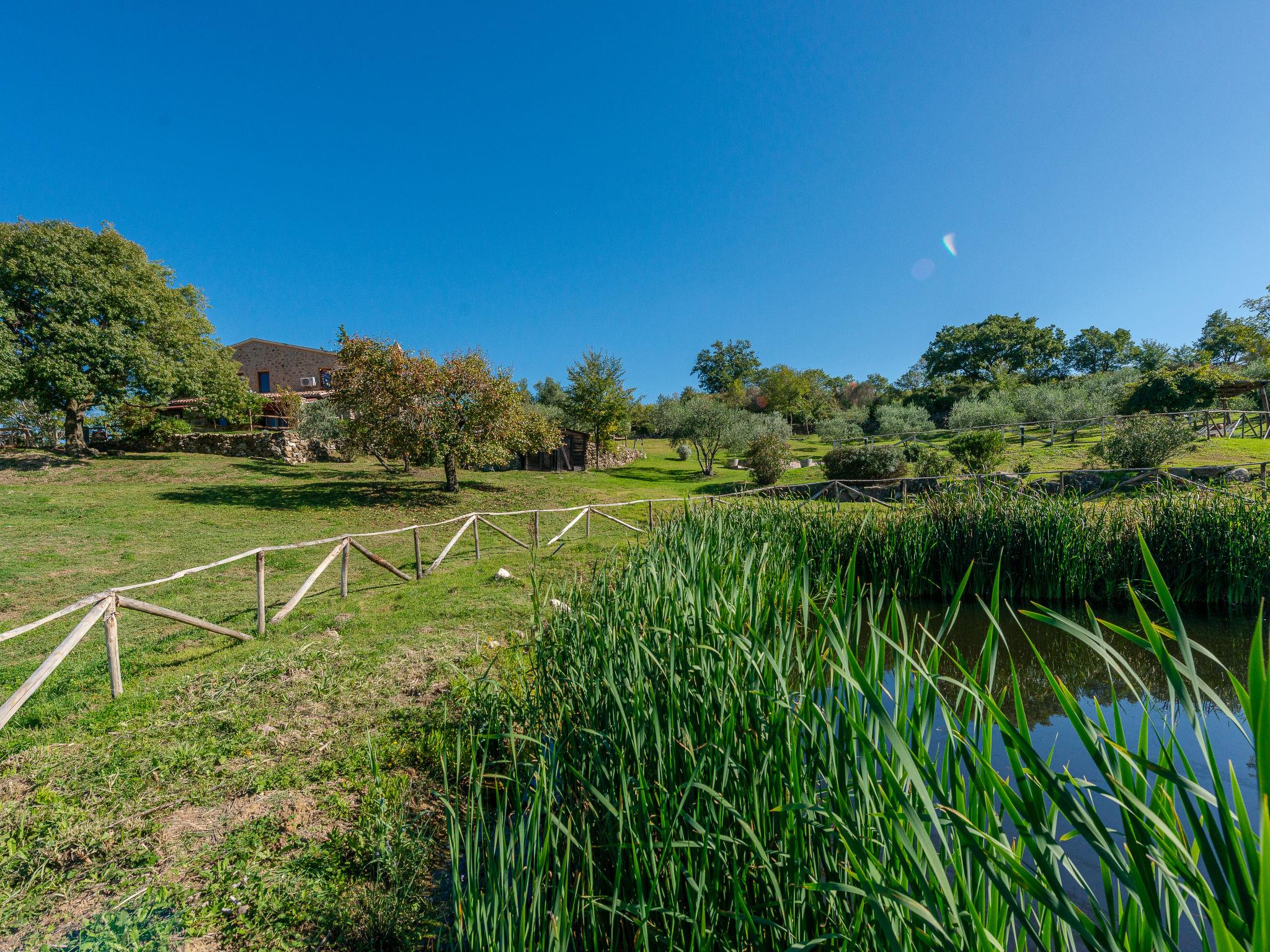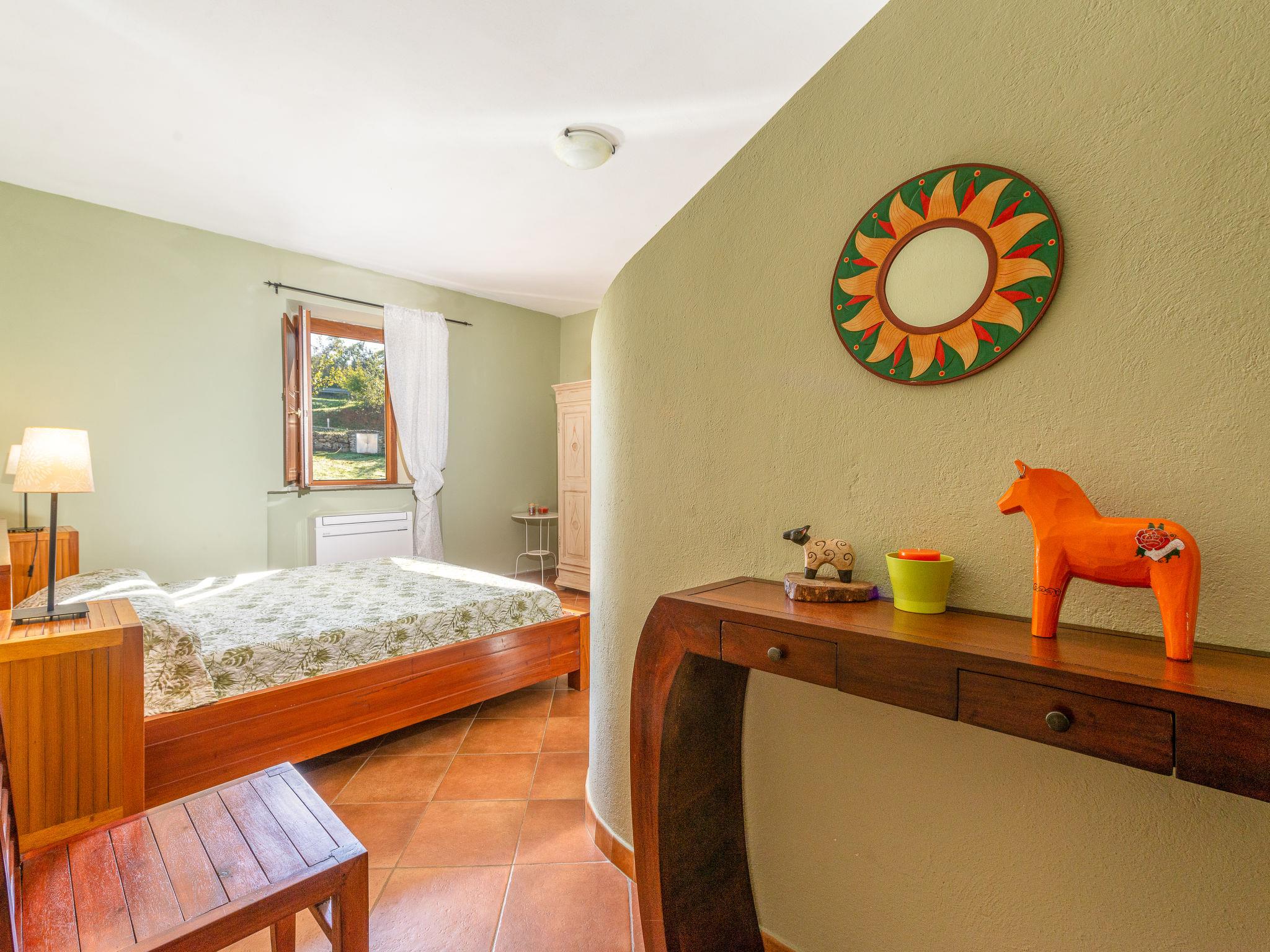 Very beautiful, cosy house "Meridiana", 2 storeys, detached, surrounded by meadows and vineyards. 4 km from the centre of Cana, 16 km from the centre of Roccalbegna, in a sunny position on top of a hill, 44 km from the sea, in the countryside. Private: property 2'000 m2, beautiful, well-kept terraced garden (not fenced) with lawn and trees, natural pond, swimming pool (14 x 7 m, depth 80 - 210 cm, seasonal availability: 15.Apr. - 15.Oct. pool opening hours: 07:00-22:00). Outdoor shower, pergola, pool maintenance by the owner/gardener. In the house: washing machine. Room cleaning on request (extra). Parking on the premises. Grocery 5 km, supermarket 25 km, shopping centre 32 km, restaurant 5 km, bar 5 km, bakery 5 km, bus stop 1.2 km, sandy beach "Marina di Grosseto" 44 km, thermal baths "Saturnia" 34 km. Nearby attractions: Grosseto 29 km, Campagnatico 23 km, Scansano 26 km, Monte Amiata 40 km, Pitigliano 47 km. Hiking paths: Riserva Naturale Pescinello 18 km, Riserva Naturale Bosco dei Rocconi 15 km, Parco Naturale della Maremma 43 km. Please note: car recommended. Object suitable for 8 adults + 2 children. Local sale of farm products.