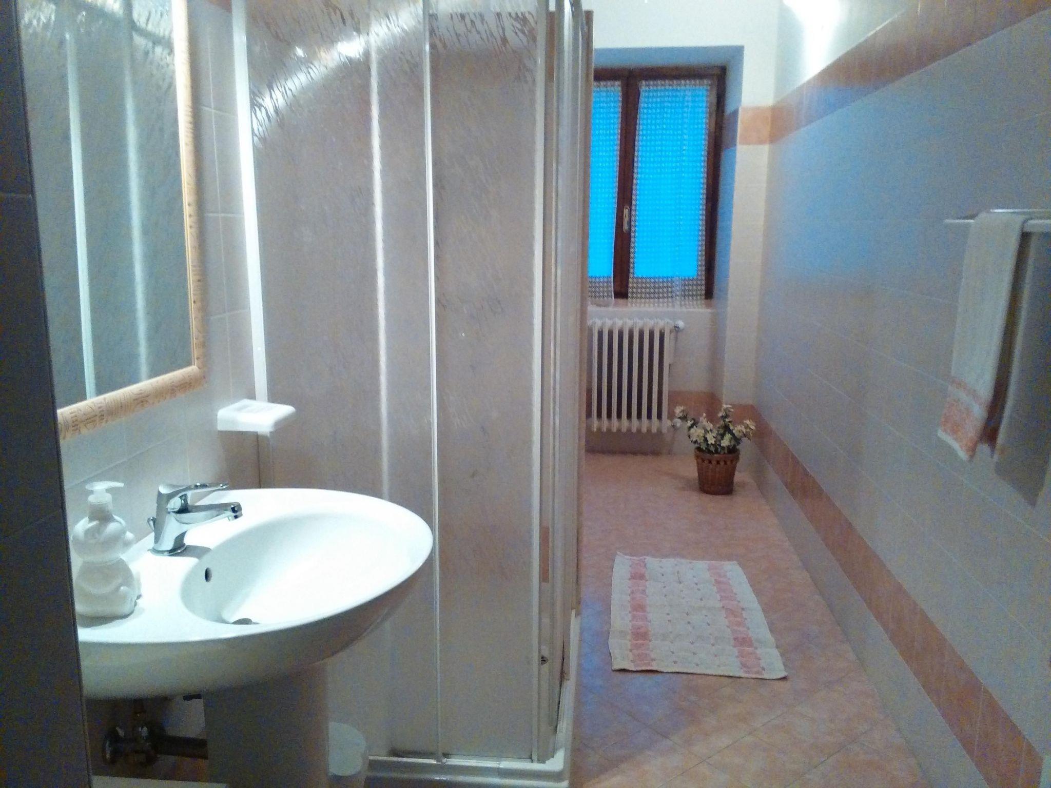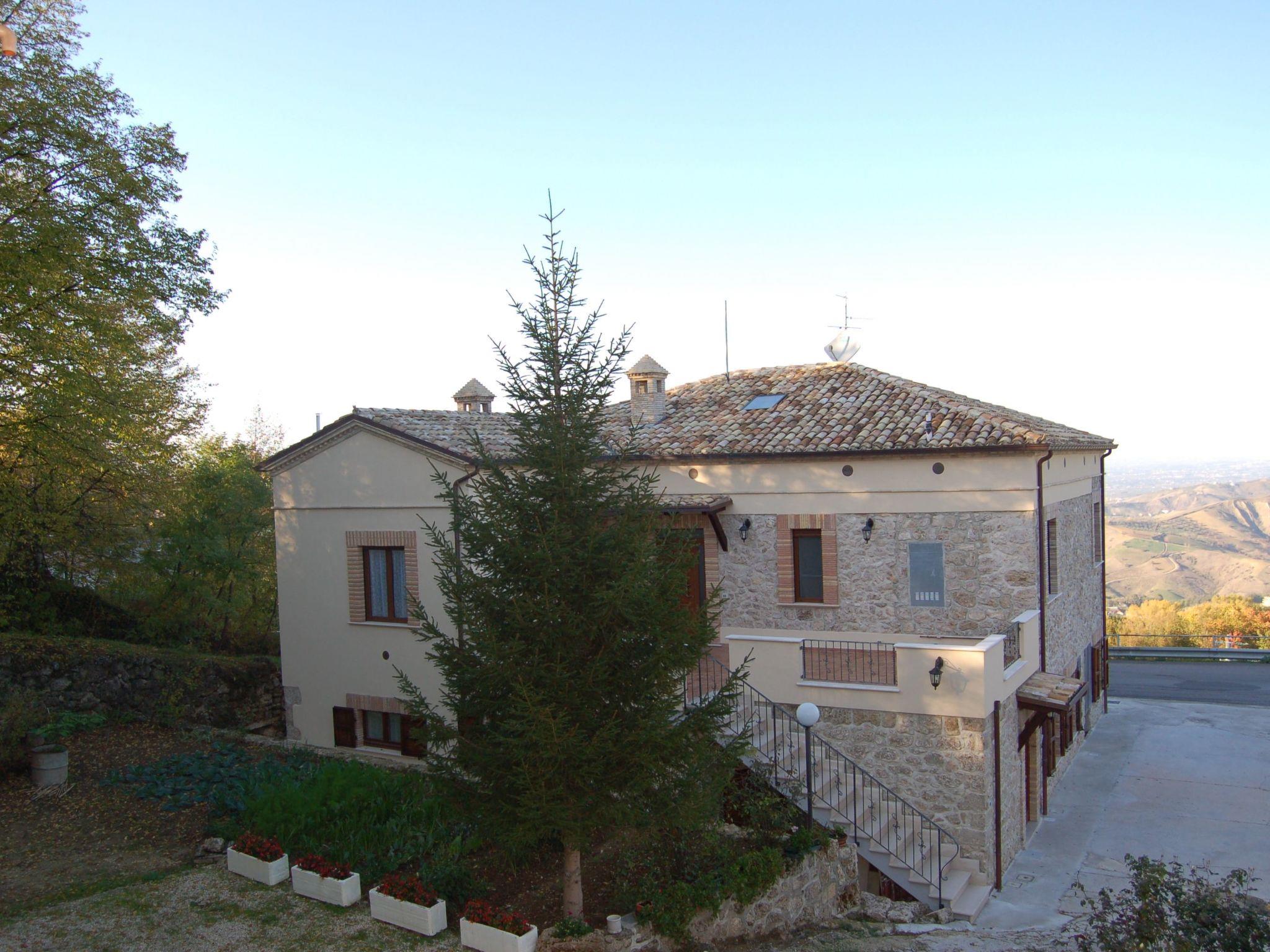 The approx. 75 m² flat is located on the ground floor. It consists of a double room and a triple room with a double bed and a single bed (size of double beds 160x190 cm, single beds 80x190 cm) with the possibility of adding further single beds up to a maximum occupancy of nine or ten people. The eat-in kitchen is equipped with a rustic fireplace, a large dining table, a gas cooker, an oven and a refrigerator with freezer. The large bathroom has a shower and bidet and a hairdryer. The flat is equipped with a washing machine and heating.1 to 25 people can be accommodated in 3 interconnected or completely separate and independent flats.croissants, homemade cakes, fresh fruit, etc. await you for breakfast every morning. You can also ask for meals based on Abruzzo specialities to be delivered to your flat.