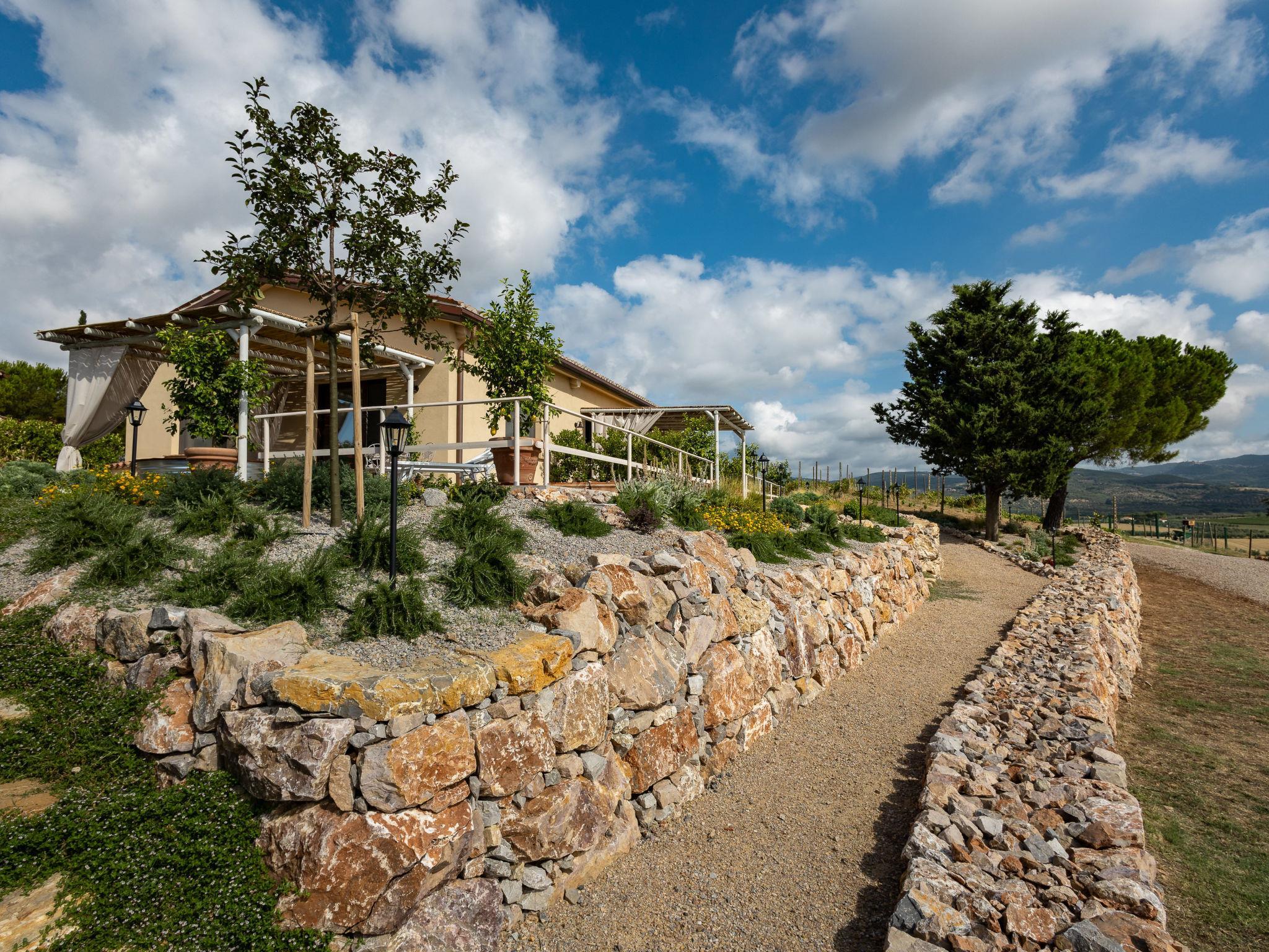 Agriturismo "Poggio Piero", renovated in 2025, surrounded by meadows and fields. 4 houses in the resort. 4 km from the centre of Ribolla, 5 km from the centre of Montemassi, in a quiet, sunny position on top of a hill, 30 km from the sea, 30 km from the beach, in the countryside. For shared use: park (fenced). Private: swimming pool (above ground) round (1,5 m diameter, depth 60 cm, seasonal availability: 01.May. - 15.Oct.). Garden furniture, pool maintenance by the owner/gardener. Breakfast possible on request (extra). Parking on the premises. Grocery 4 km, supermarket 4 km, restaurant 4 km, bar 4 km, bus stop 1.5 km. Please note: car recommended. The owner lives on the same property.