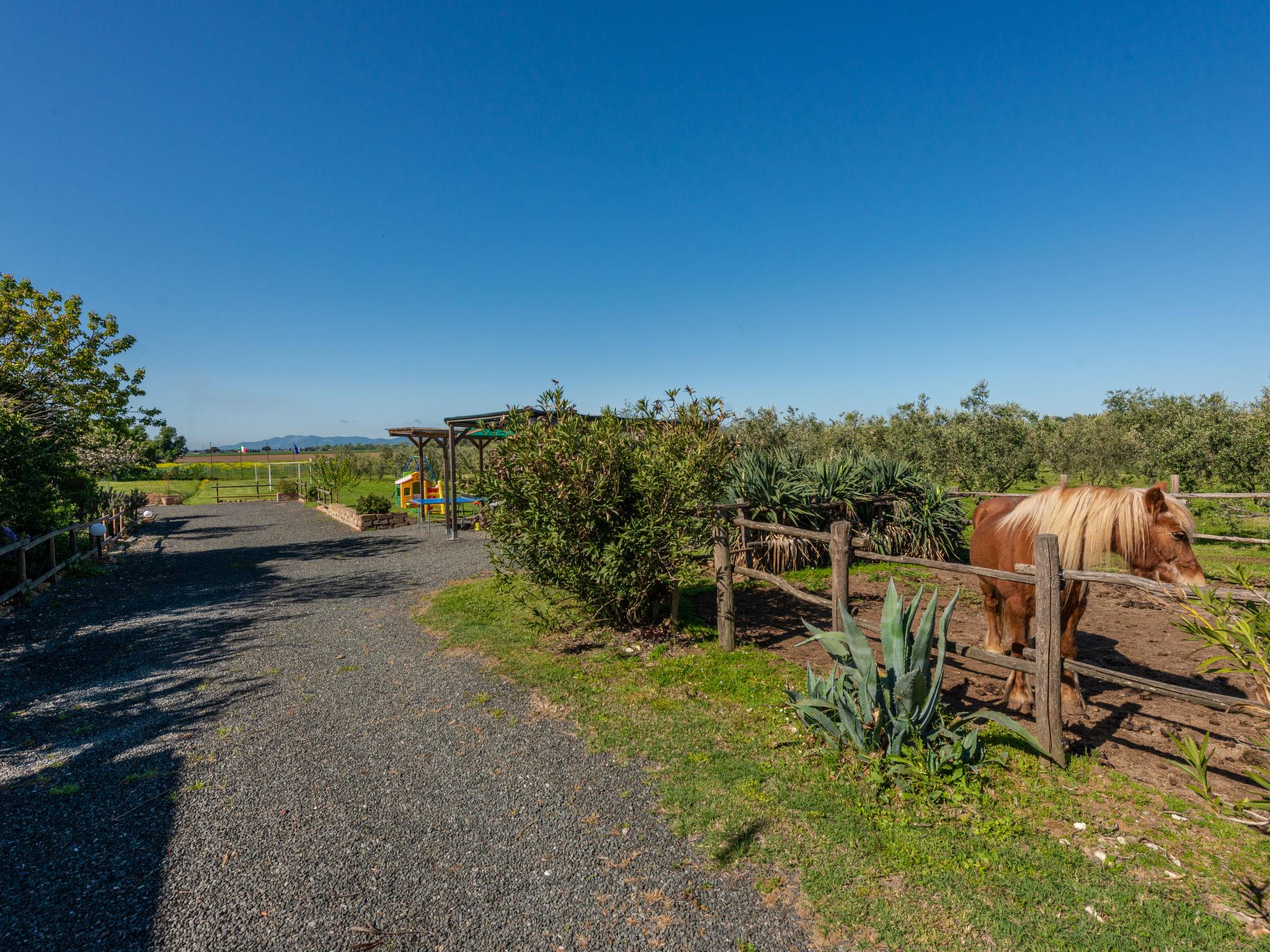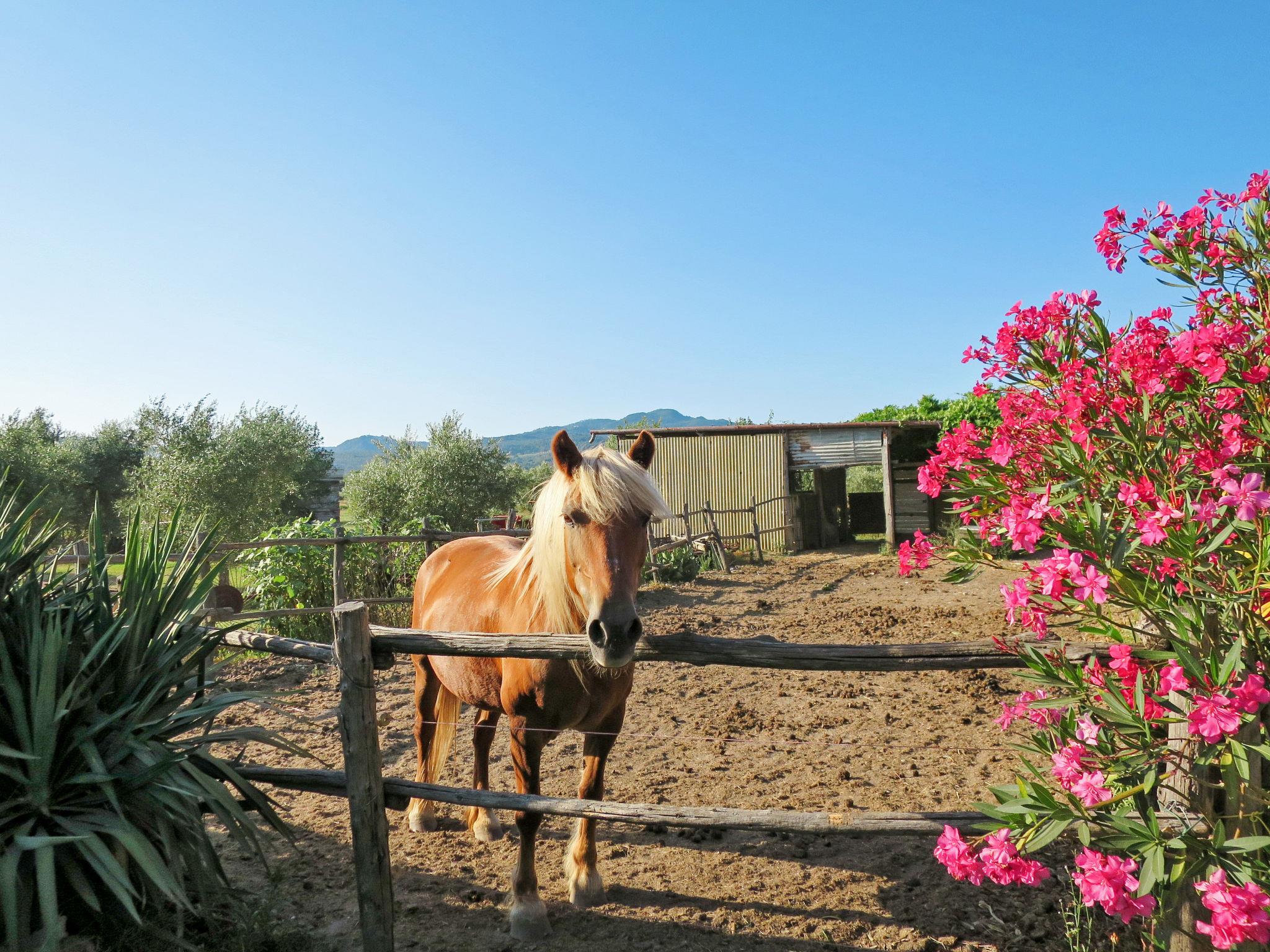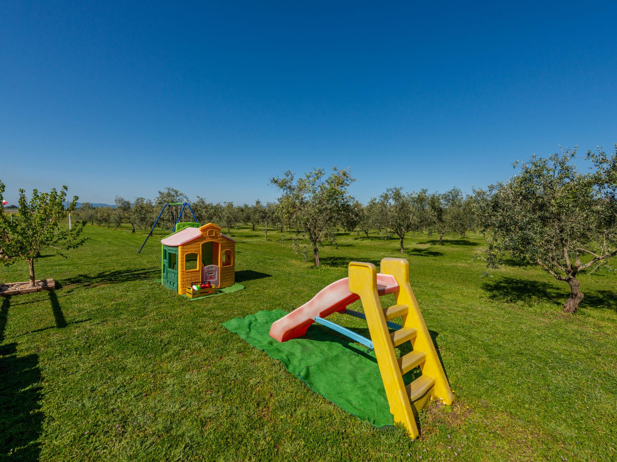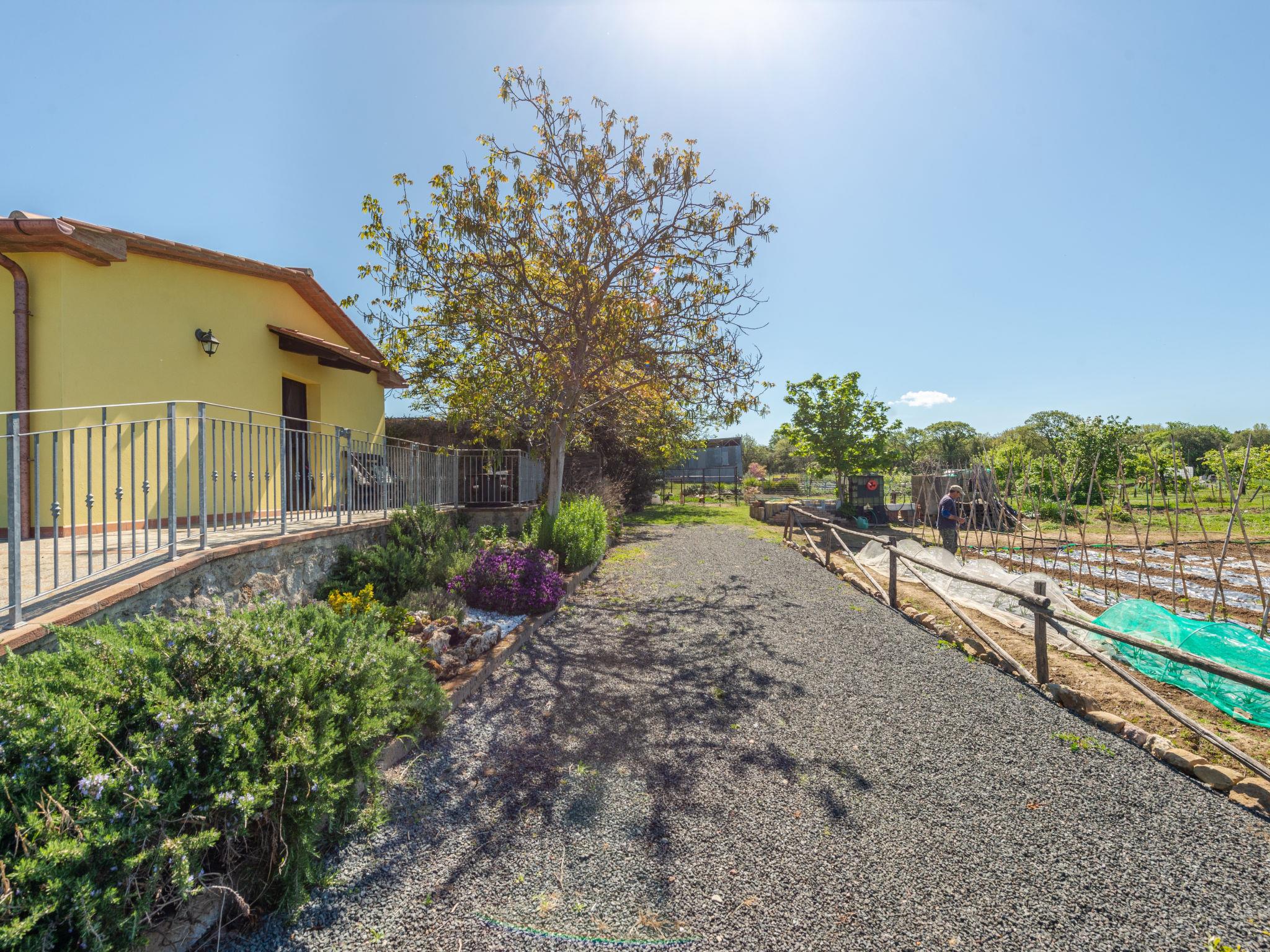 Beautiful country house "Bellosguardo", surrounded by trees and fields. 9 km from the centre of Roccastrada, 5 km from the centre of Montemassi, 35 km from the centre of Follonica, 35 km from the sea. For shared use: property 10 ha, orchard, swimming pool fenced (5 x 3 m, depth 120 cm, seasonal availability: 15.May. - 30.Sep.). Private: table tennis, volleyball court (swing). In the house: table football, heating available only from 12.Oct. - 26.Apr.. Parking on the premises. Shop 5 km, bus stop 500 m, railway station "Montepescali" 15 km, sandy beach 35 km. Golf course (18 hole) 26 km. Nearby attractions: Grosseto 28 km. Hiking paths: Mountain-bike 4 km. On the estate animal husbandry. Local sale of farm products. Please note: the owner lives on the same property. The owner has a dog.