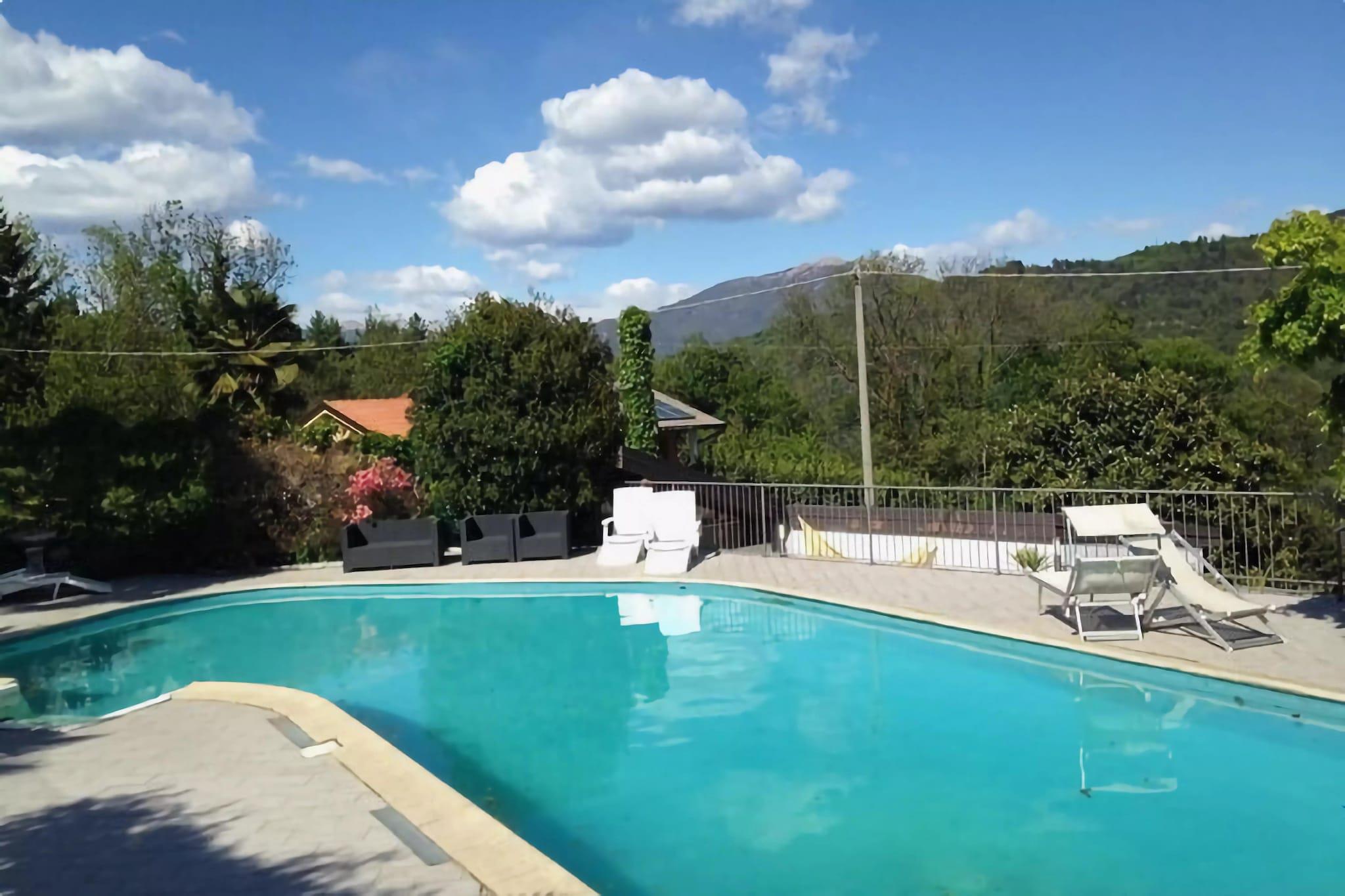 Nyd dit ophold i dette smukke feriehus omgivet af natur. Der er en privat terrasse, hvorfra du kan se den fascinerende udsigt over bjergene. Mens du slapper af i haven, kan børnene nyde gyngerne. Dette sted er bedst egnet til en familieferie. Feriehuset kan være et godt udgangspunkt for dem, der kan lide at gå og udforske området til fods. Køb de daglige ting i supermarkedet, et stykke væk. Der er mange restauranter i nærheden, som er værd at udforske. Der er mange interessante turistattraktioner, som er værd at besøge. Start din dag med en afslappende dukkert i swimmingpoolen (delt med andre gæster og åben fra maj til september). Efter en svømmetur kan du nyde en drink fra baren, mens der tilberedes lækre grillretter i haven. Parkeringsmuligheden er også tilgængelig her. Slap af ved pejsen og læs din yndlingsbog i stuen.