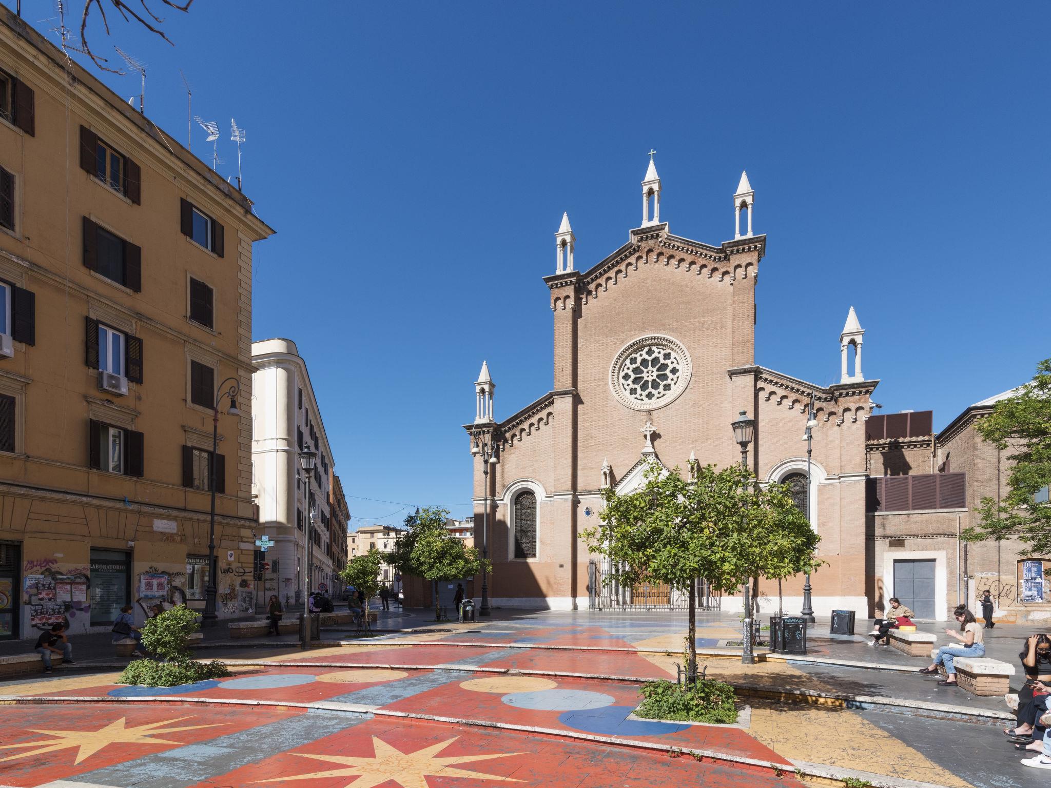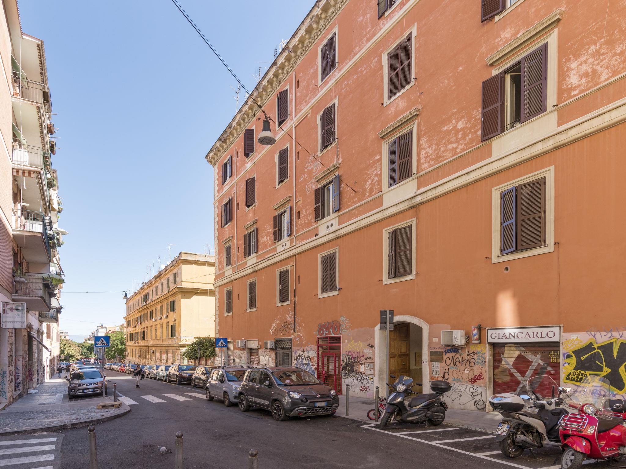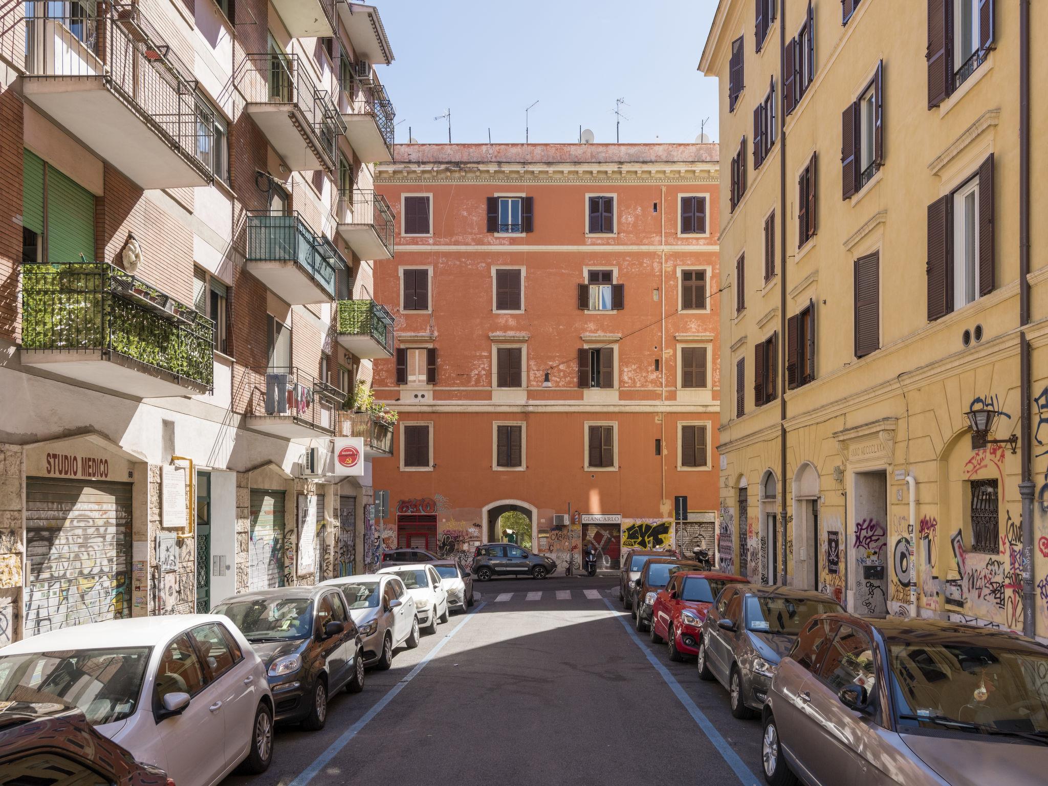 Old apartment block. San Lorenzo, in a central, busy, sunny position, traffic calmed area, 20 km from the sea. (22 steps). Public parking 5 m. Shop 100 m, grocery, bar, bakery 200 m, tram 600 m, bus stop 500 m, railway station "Termini" 1 km, underground station "Termini" 1 km, sandy beach "Fregene/Maccarese" 20 km. Nearby attractions: Piazza Vittorio 3 km, San Giovanni 4 km, Colosseo Fori Romani 5 km. Please note: no lift. Airfield 10 km from the property.
