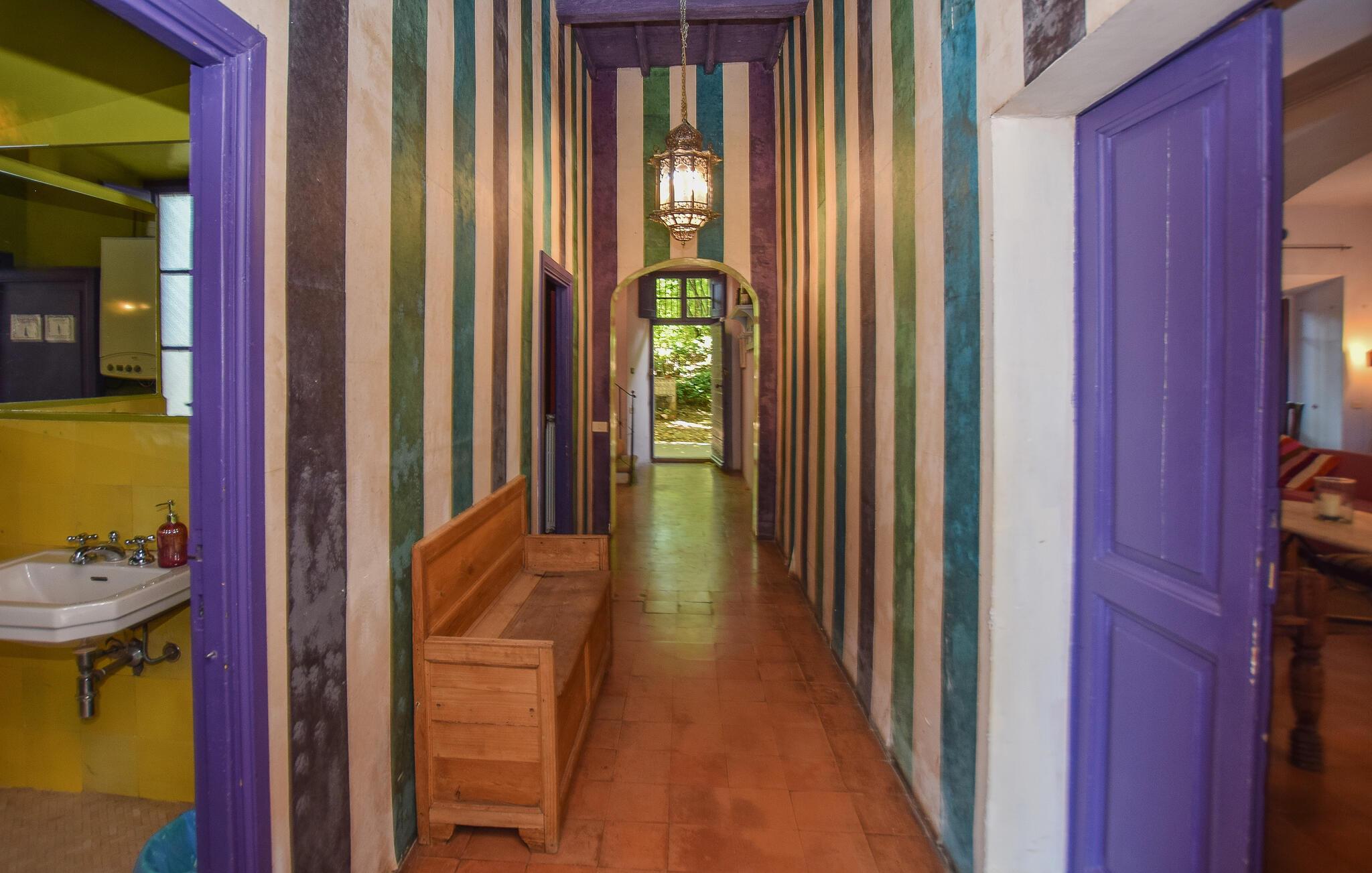 Nyd en behagelig pause med historisk charme i dette rummelige feriehus med pool.