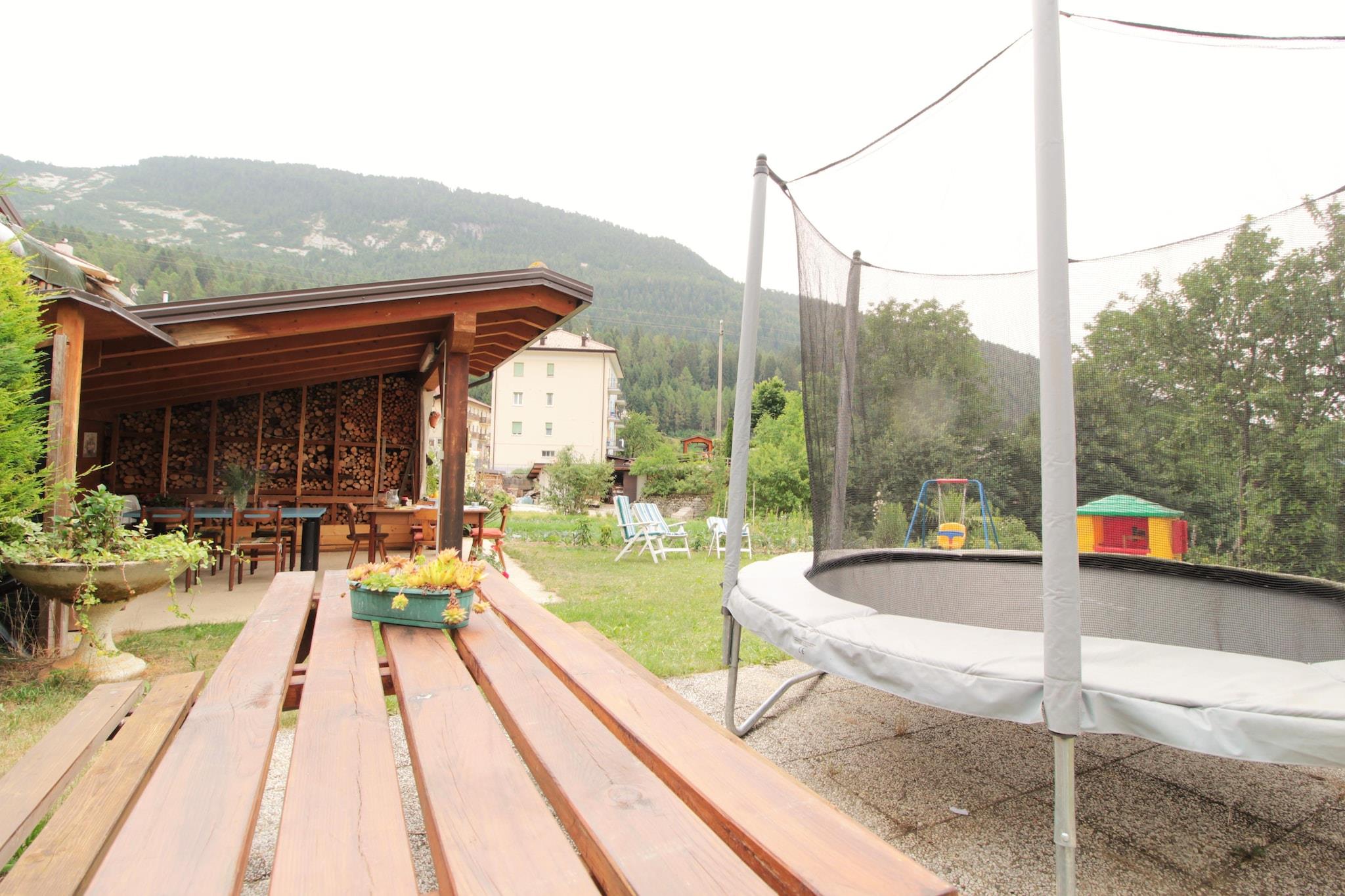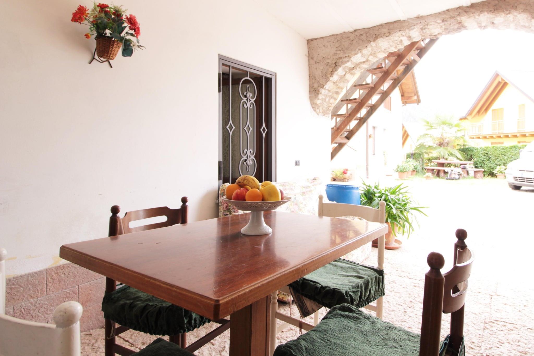 Et smukt hus beliggende i centrum af den lille landsby og er for dem, der ønsker at tilbringe deres ferie med at trække den rene bjergluft væk fra trafikken. Huset har en have, hvor du kan grille, spise under taget, nyde brisen om aftenen eller solbade om dagen i absolut ro, mens børnene hopper på trampolinen eller leger. Boligen ligger kun 18 km fra Torbole og Riva del Garda og tæt på Gardasøen. Efterlader du bilen ved Loppio-søen (11 km fra huset) kan du tage Torbole Mori-cykelstien og på 7 km kan du gå direkte til Gardasøen. For dem, der elsker sjov og kunst, ligger i nærheden de pragtfulde byer Trento, Ro-vereto, Riva del Garda, som tilbyder turistattraktioner for enhver smag. Der er også mulighed for cykling og mountainbiking, trekking, klatring. Huset er fordelt på to etager, forbundet med hinanden af en trætrappe. Den ligger i ejerens jord, som bor i huset overfor, og der er parkeringsplads ved ejendommen og indhegnet parkeringsplads til rådighed.