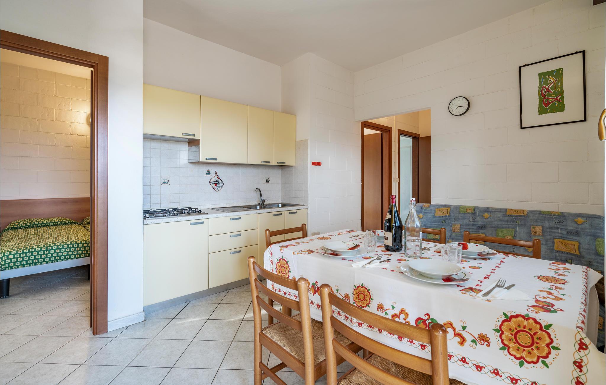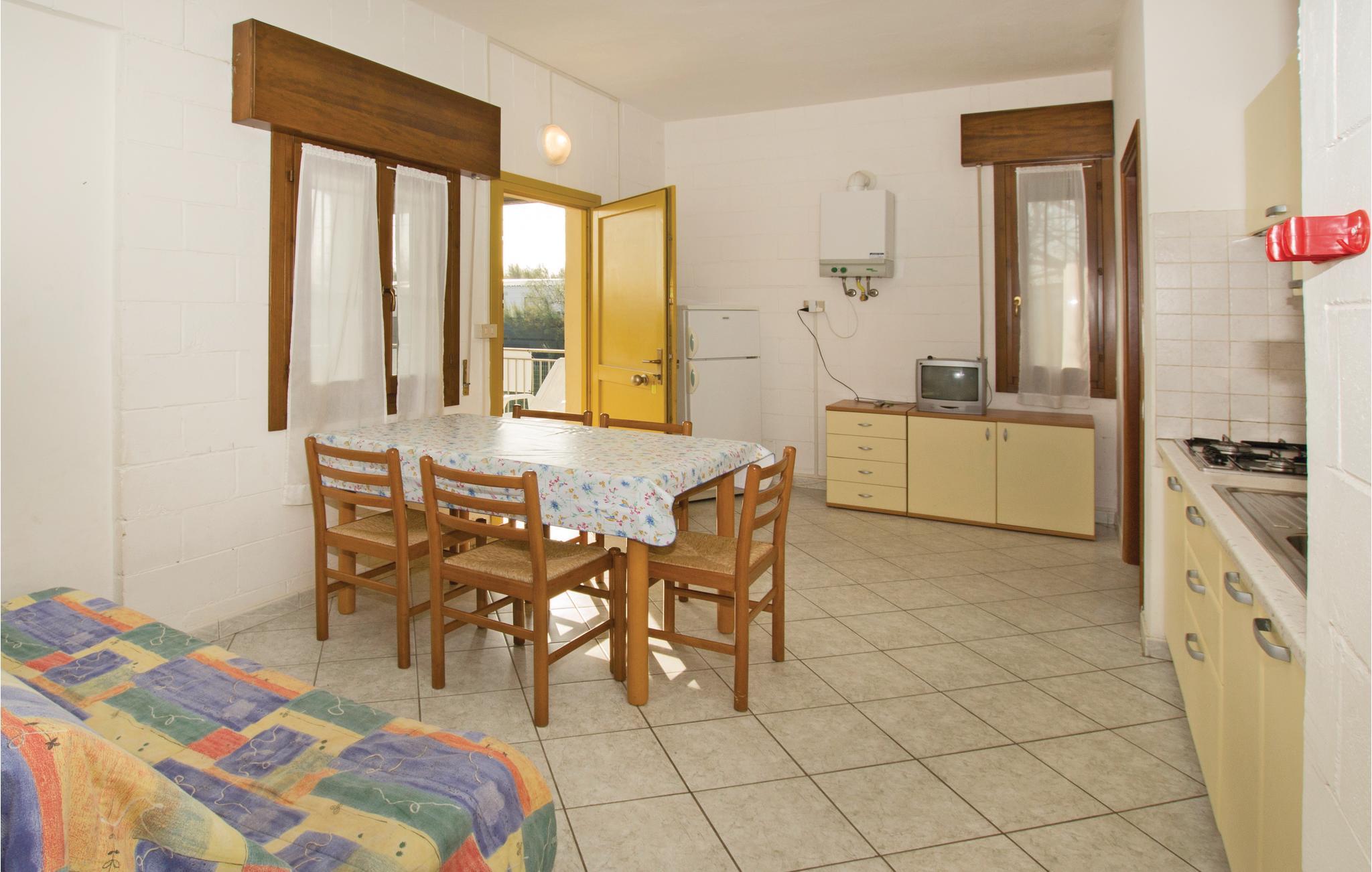 Denne ferielejlighed i Rosolina Mare tilbyder en kompakt og praktisk bolig, kun et stenkast fra havet. Området er ideelt til en afslappende ferie med nem adgang til natur, strande og kulturelle seværdigheder. Udnyt den korte afstand til Adriaterhavskysten, og oplev den maleriske halvø, der er præget af laguner og duftende pinjeskove. Indenfor finder I en funktionelt indrettet lejlighed på første sal. Opholdsområdet har et spisebord, en lille køkkenniche og en siddeplads.