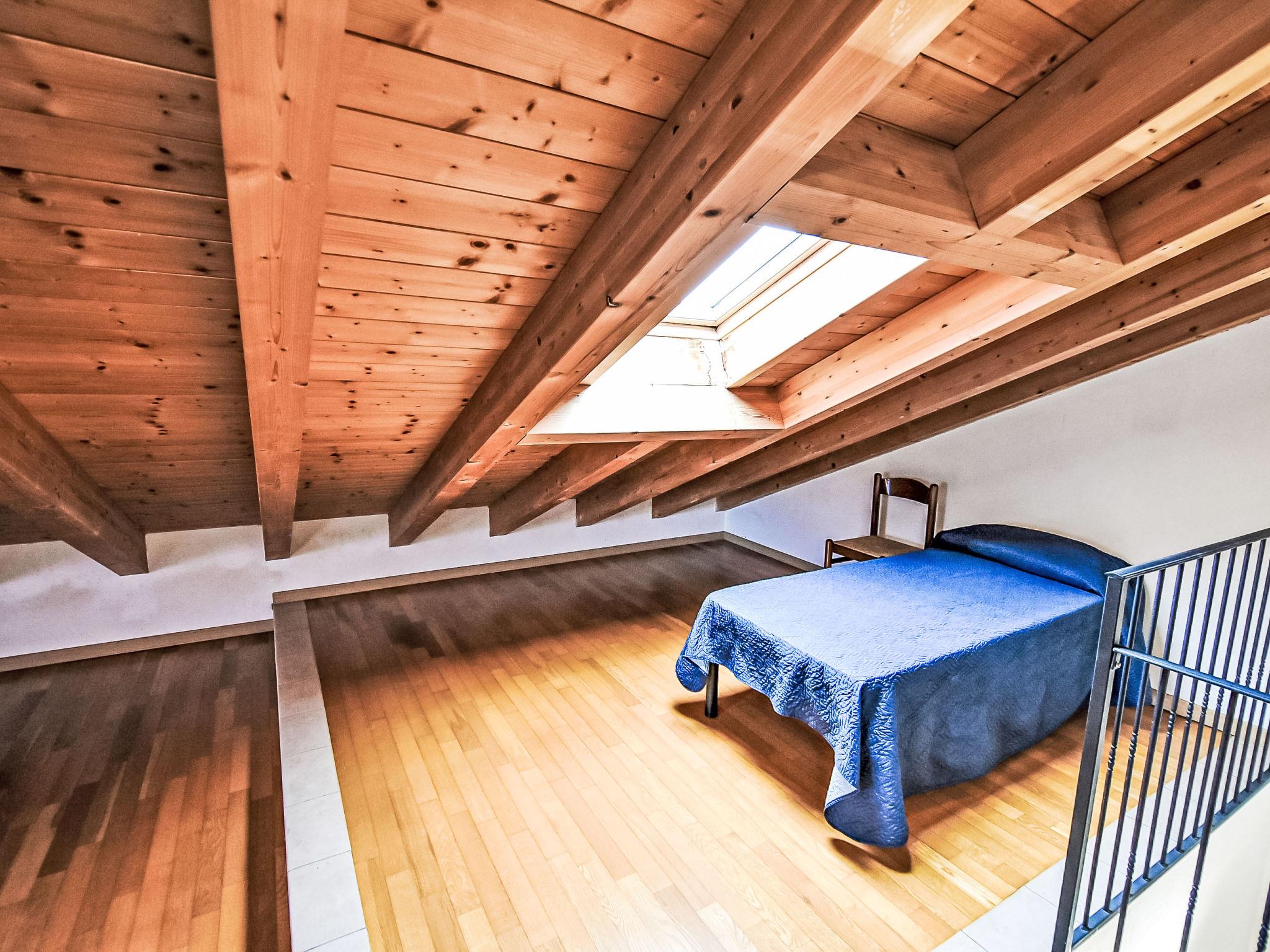4-room apartment 90 m2 on 3 levels, on the upper ground floor. Practical and comfortable furnishings: living/dining room with TV. Exit to the terrace. Small kitchen (mini-oven, 4 gas rings, microwave, freezer). Shower/bidet/WC. Upper floor: 1 double bedroom. Exit to the balcony. 1 room with 2 beds. Exit to the terrace. 2nd upper floor: 1 open large room with sloping ceilings with 1 bed and 1 double bed. Parquet floors. 2 balconies, 2 terraces. Terrace furniture, deck chairs. Facilities: children's high chair, baby cot (extra). Internet (WiFi, free). Parking. Please note: maximum 1 pet/ dog allowed. Private entrance. IT029040B4RBDKWE5R